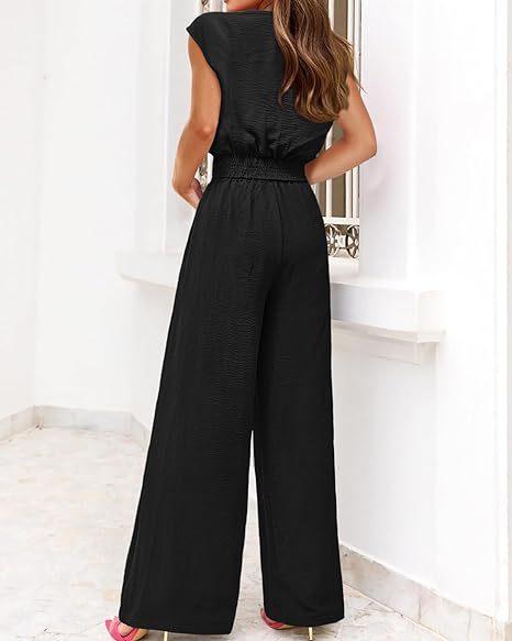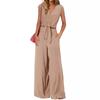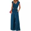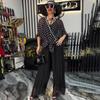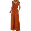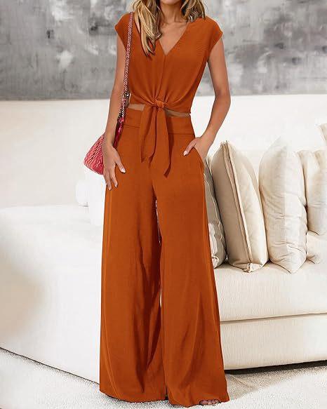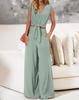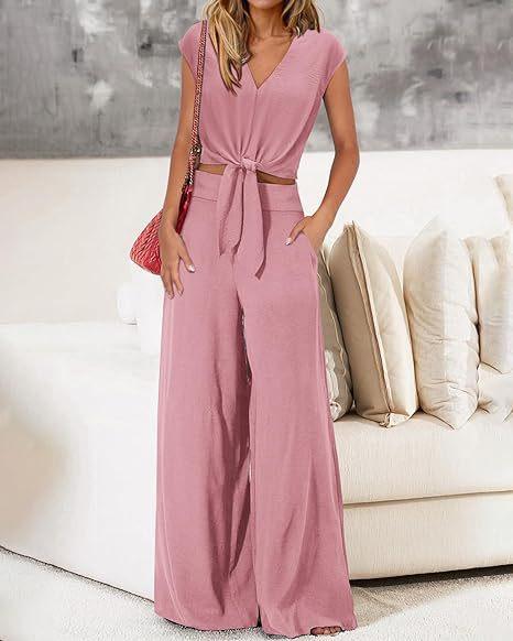 Comercio Transfronterizo Moda Europea y Americana Mujer Verano Traje de 2 piezas Manga Cobertura Cuello en V Cinturón Top Corto Pantalón Pierna Ancha Mujer
