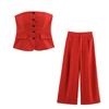Conjunto de 2 piezas de moda europea y americana para mujer, verano 2024, top corto de manga casquillo con cuello en V y cordón ajustable, conjunto de pantalones de pierna ancha