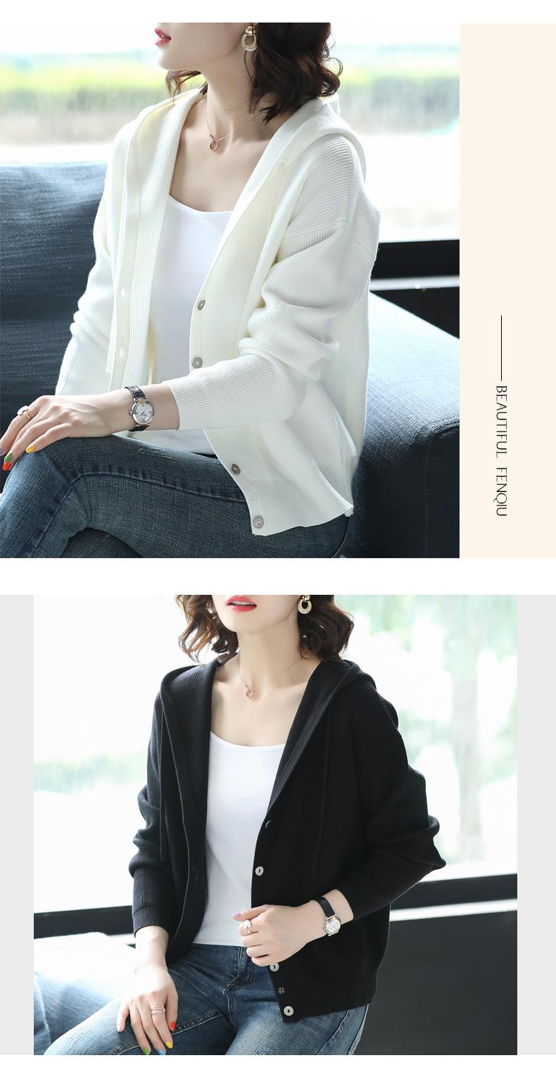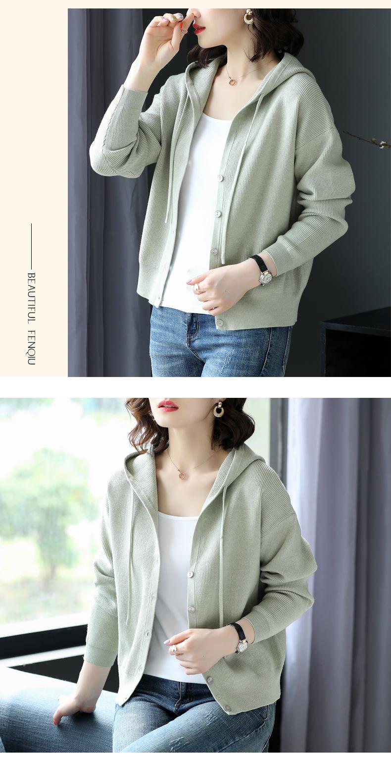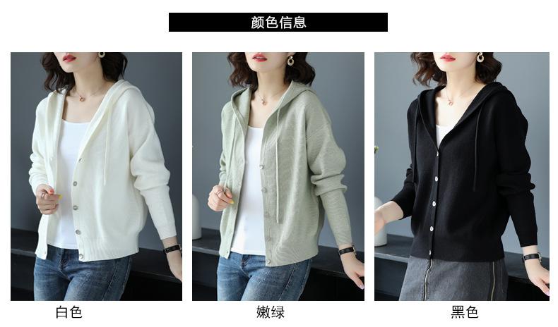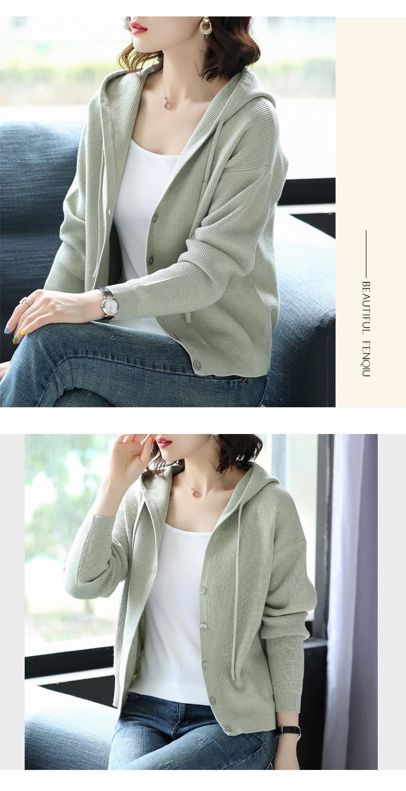 Comercio Exterior Transfronterizo Amazon Cárdigan de Punto Europeo y Americano para Mujer Nuevo Conjunto Casual Suelto Color Sólido Chaqueta Suéter con Capucha