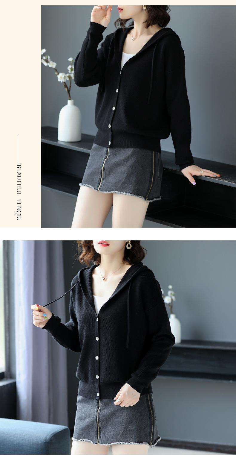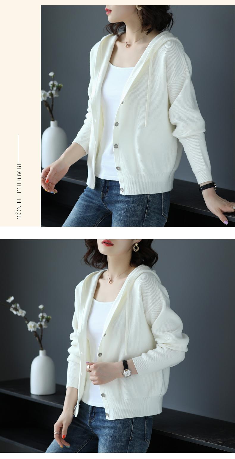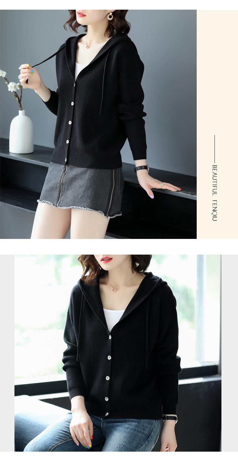 Comercio Exterior Transfronterizo Amazon Cárdigan de Punto Europeo y Americano para Mujer Nuevo Conjunto Casual Suelto Color Sólido Chaqueta Suéter con Capucha