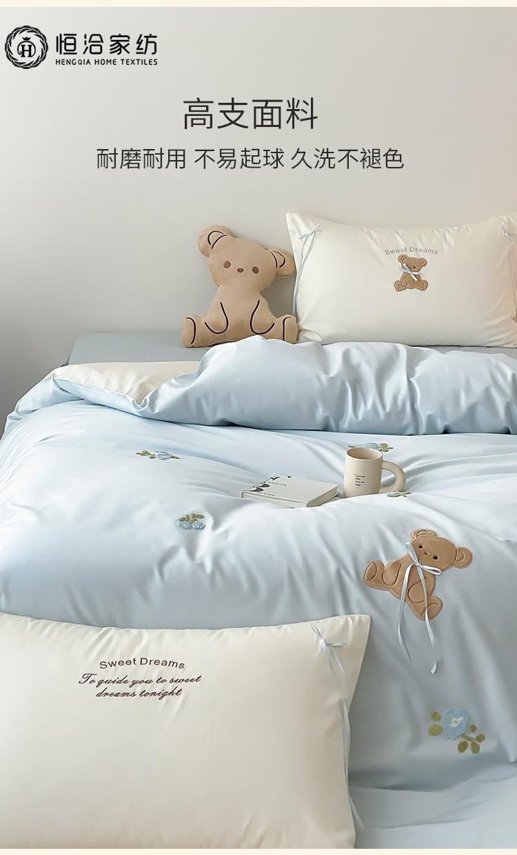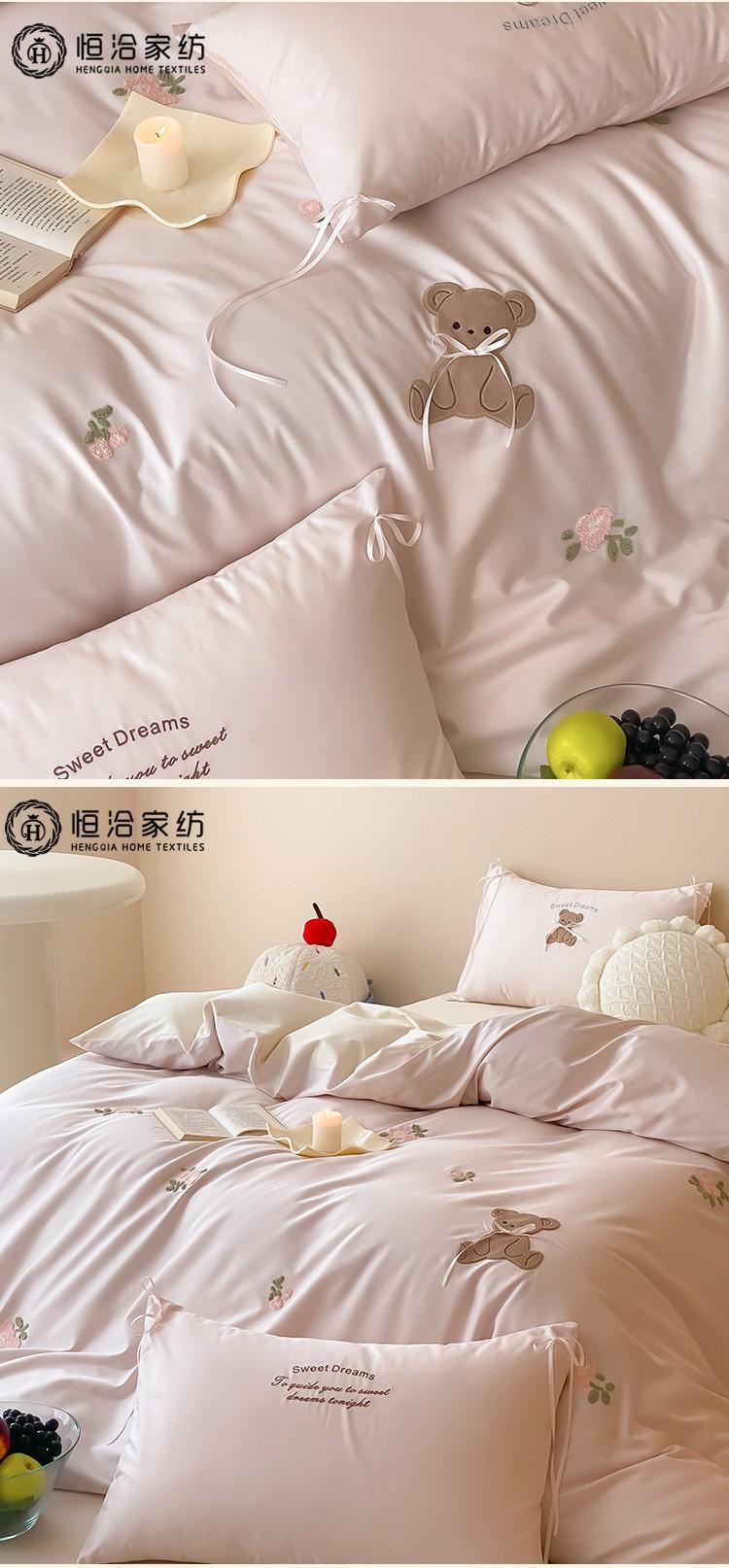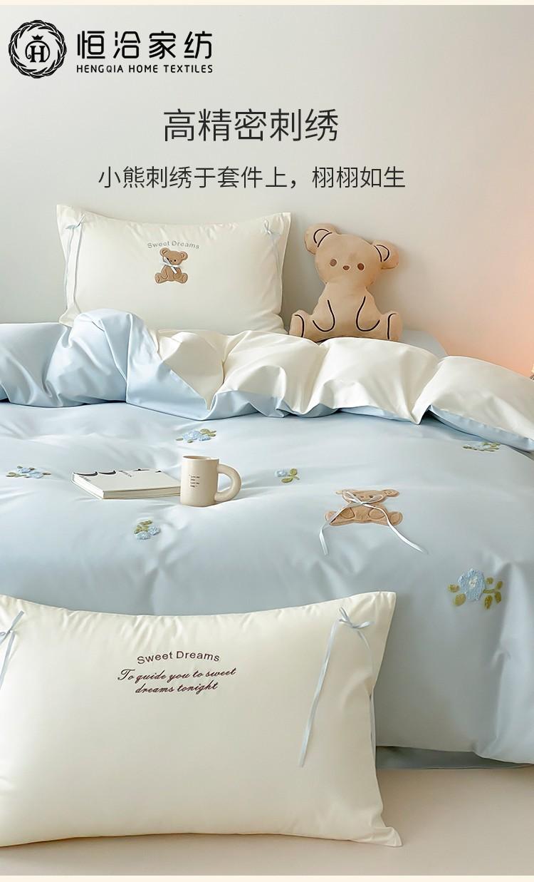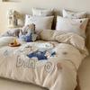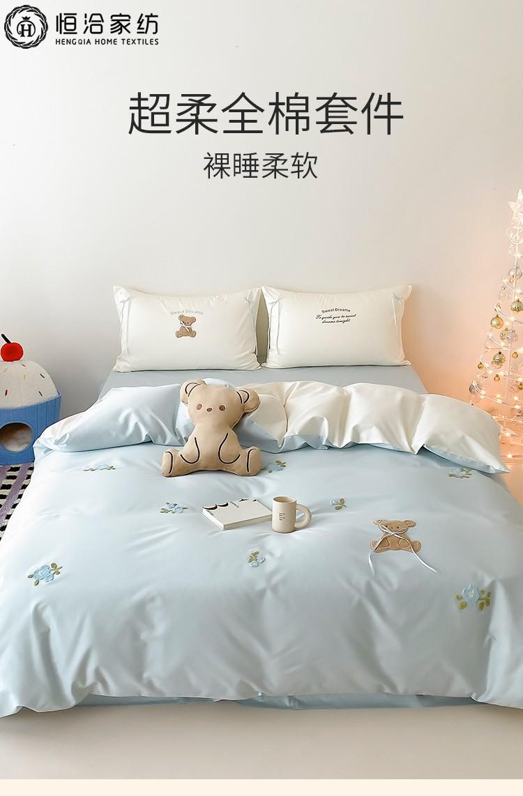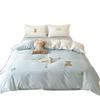 Lindo Oso Súper Suave Algodón Puro Juego de Cuatro Piezas Bordado de Dibujos Animados para Niña Funda de Edredón Sábana Ropa de Cama 1.2 Azul Rosa