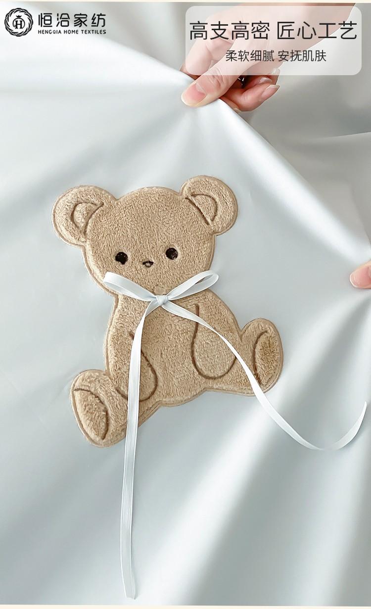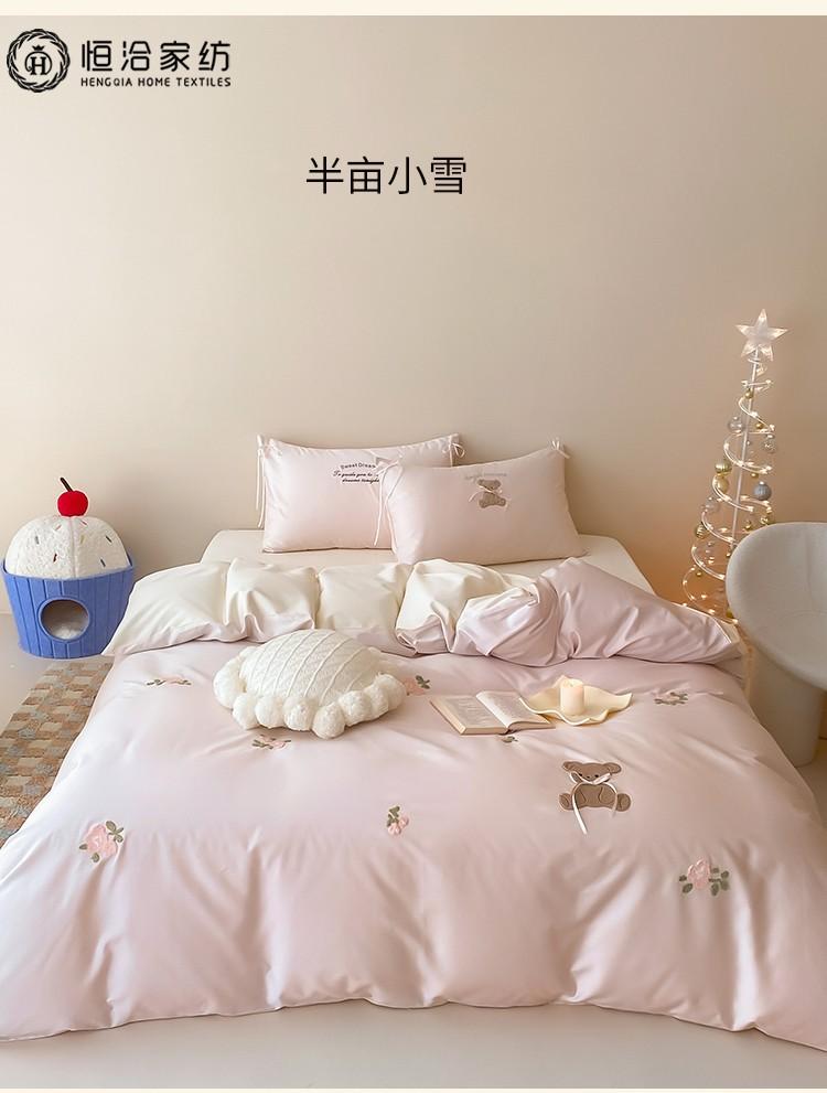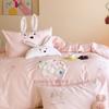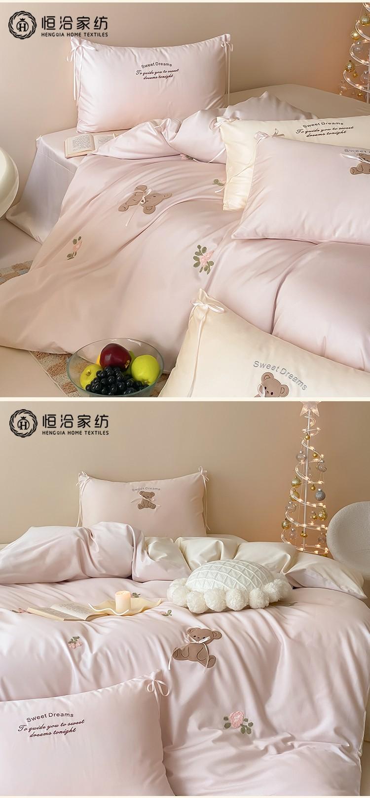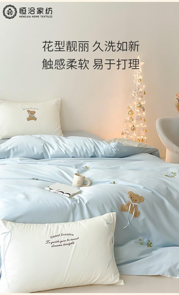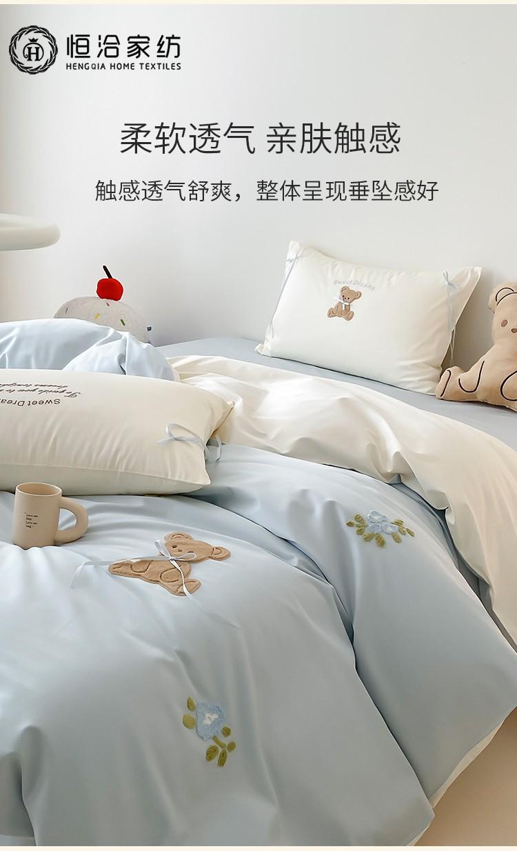 Lindo Oso Súper Suave Algodón Puro Juego de Cuatro Piezas Bordado de Dibujos Animados para Niña Funda de Edredón Sábana Ropa de Cama 1.2 Azul Rosa