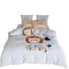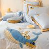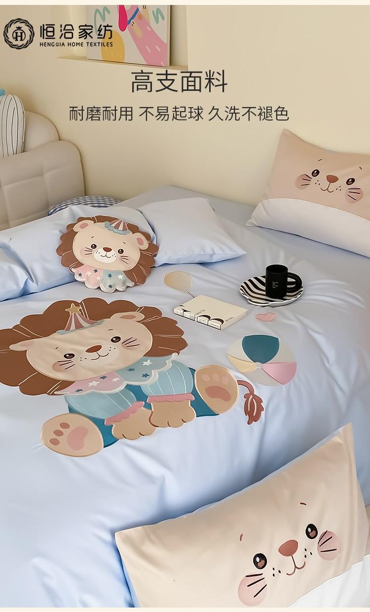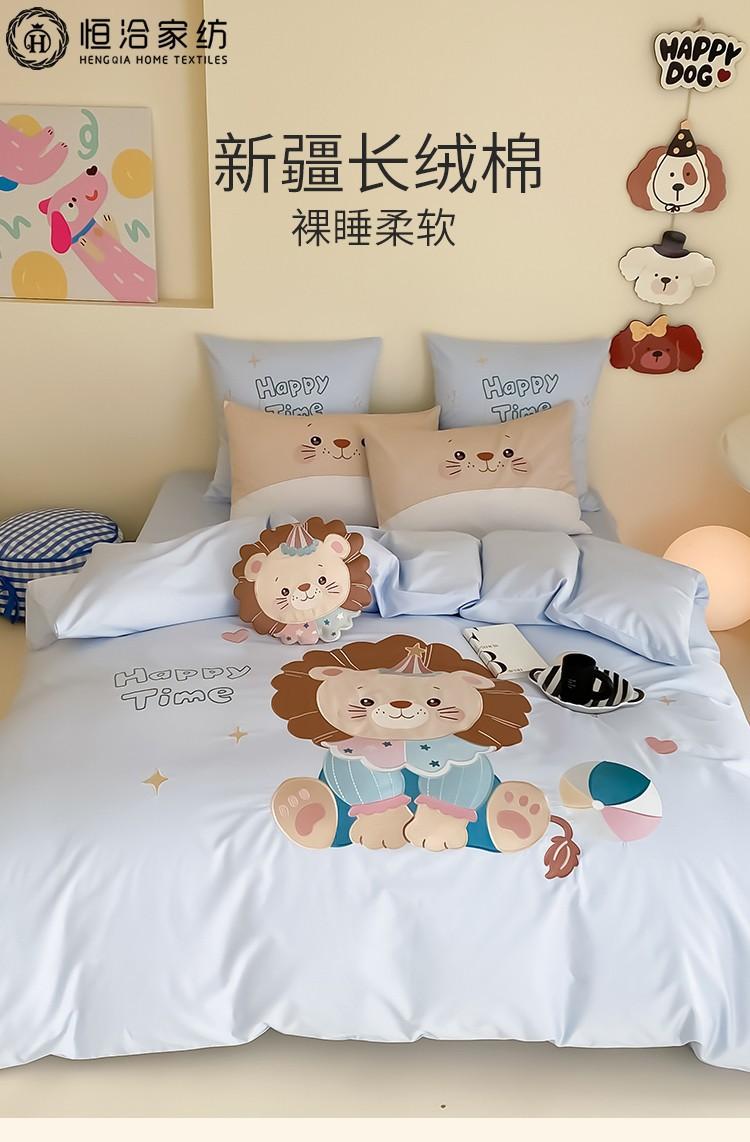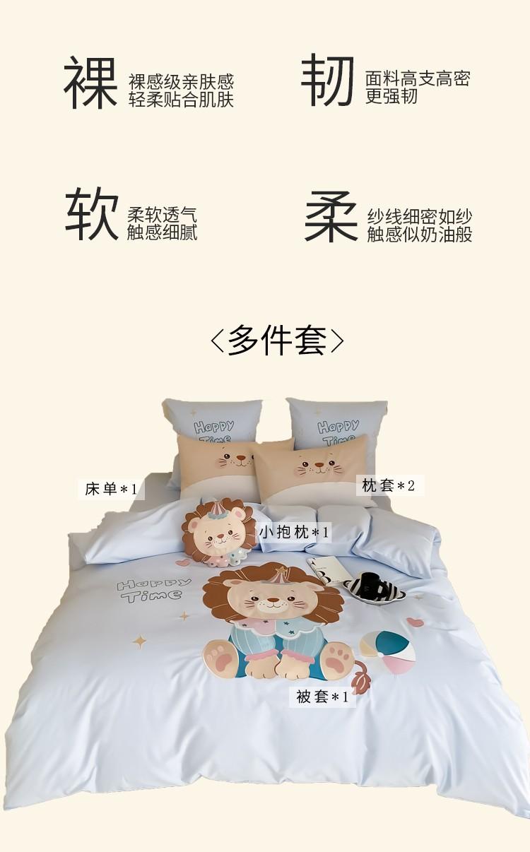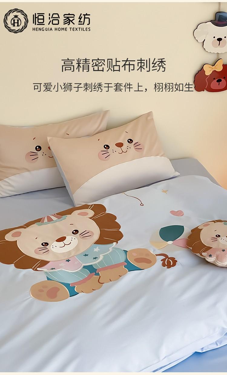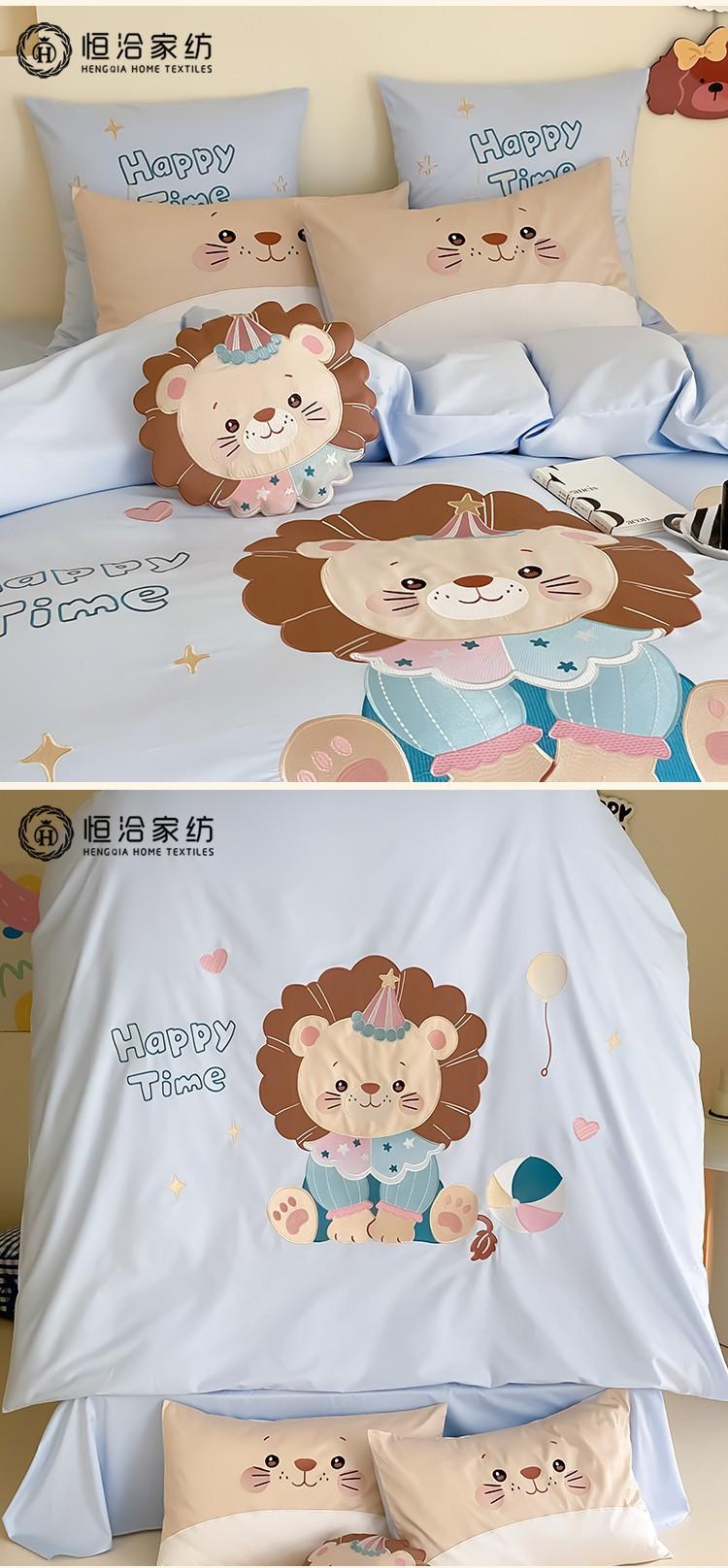 Lindo Juego de Cuatro Piezas de Algodón de Fibra Larga Estilo Dibujo Animado Súper Suave Algodón Puro Bordado de Leoncito Funda Nórdica Ropa de Cama 1.2m