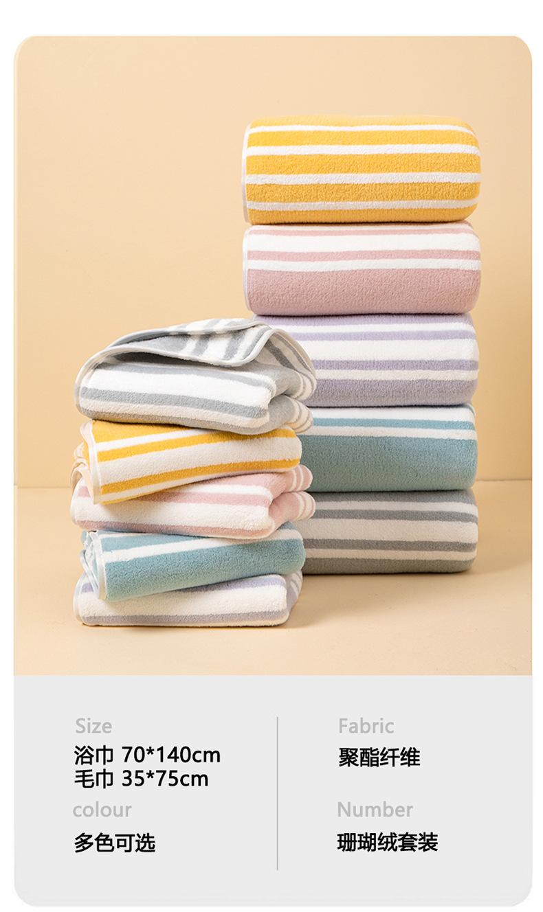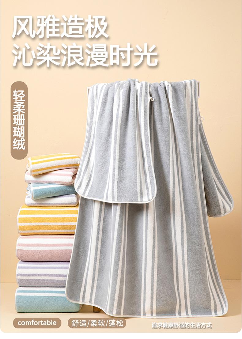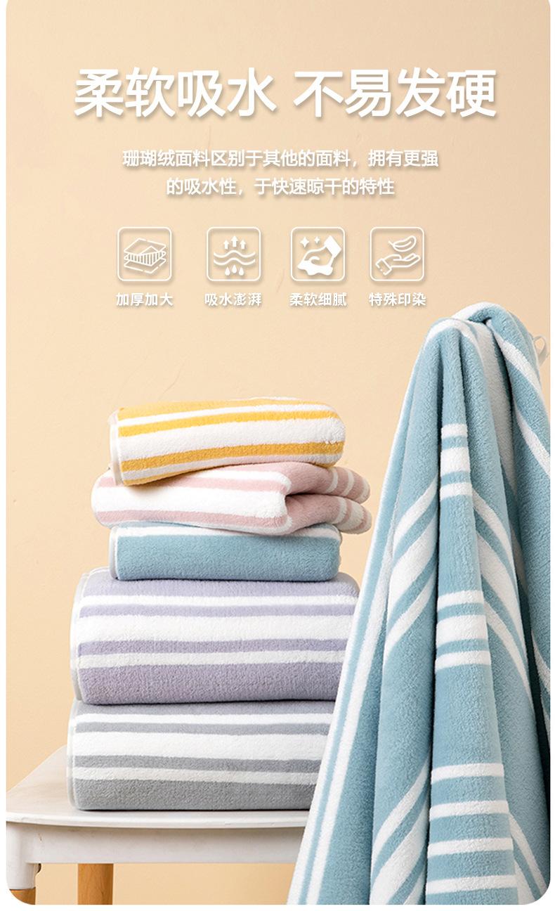 Toalla de baño con rayas anchas, combinación de colores frescos, toalla de baño de vellón coral, cómoda, absorbente, esponjosa, toalla facial para el hogar