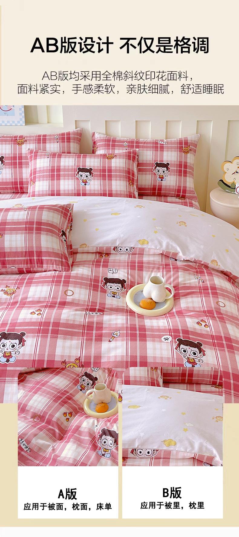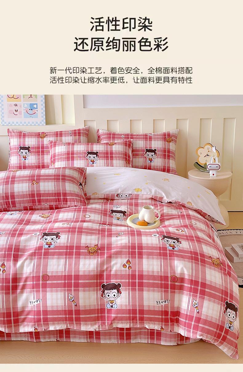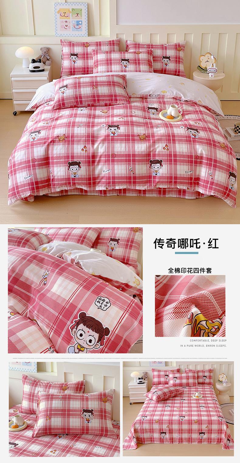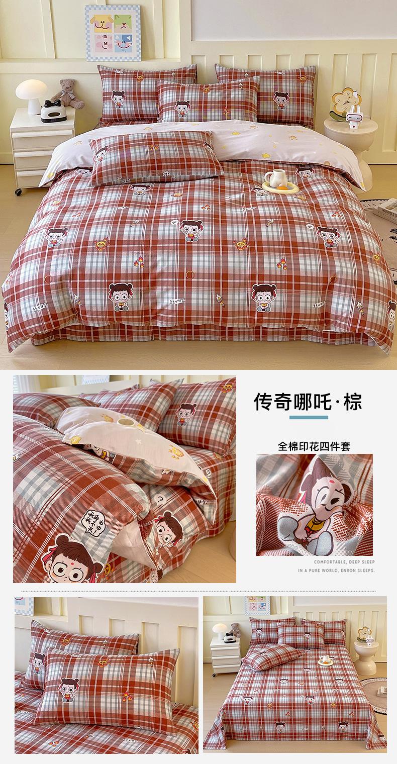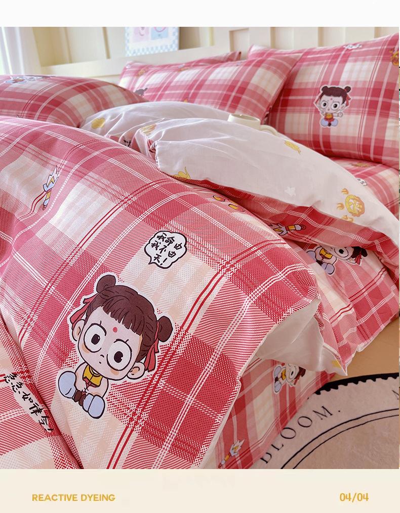 Categoría a Grado Materno e Infantil Set de Cuatro Piezas de Algodón Nezha Algodón Puro Cama Sábanas Funda Nórdica Ins Dibujos Animados Estudiante Dormitorio Cama Set de Tres Piezas