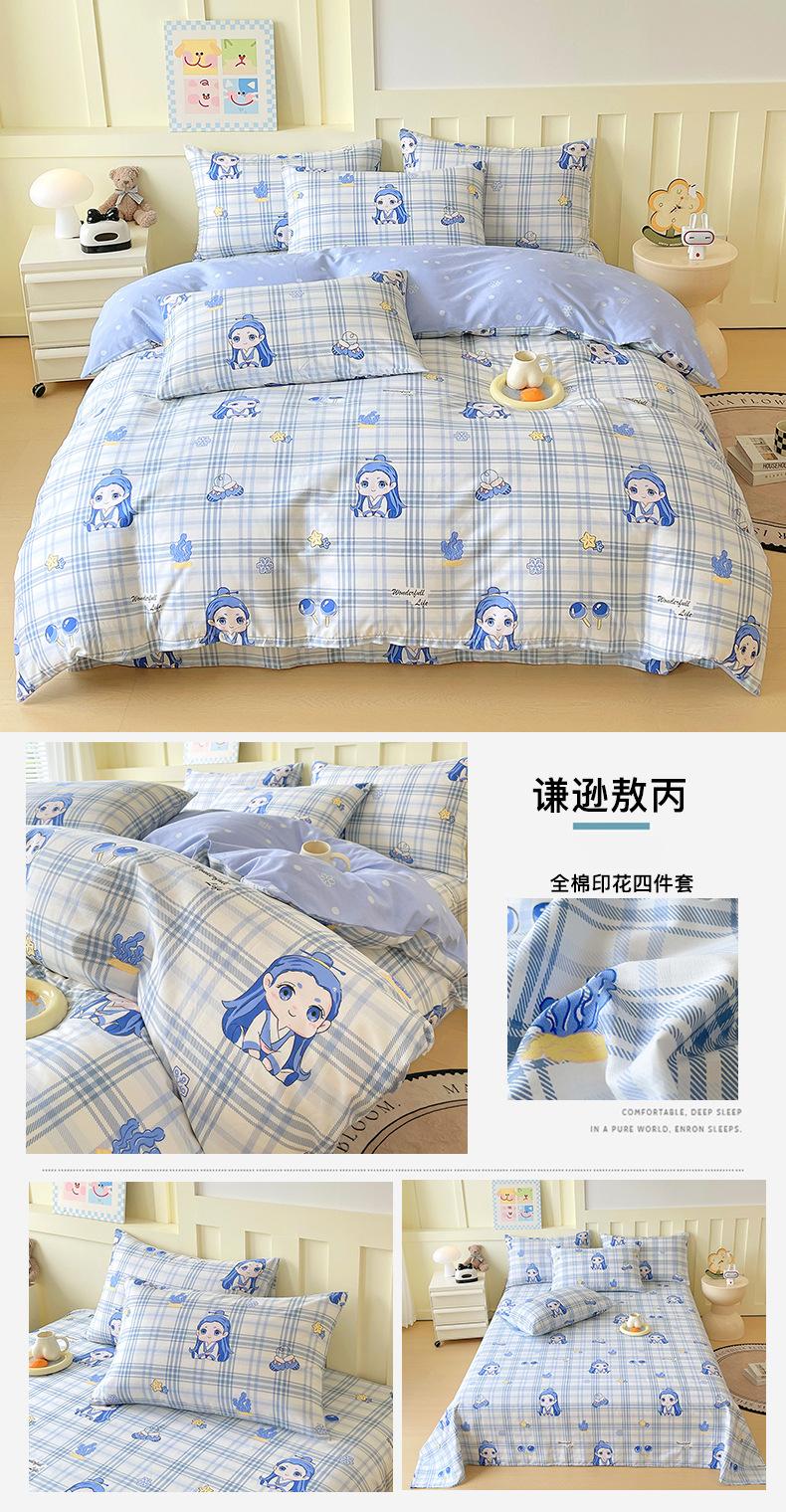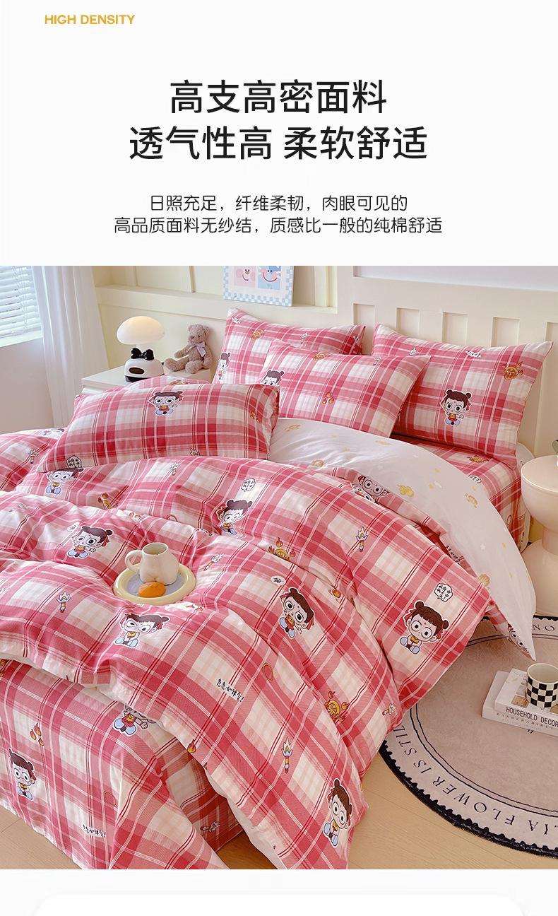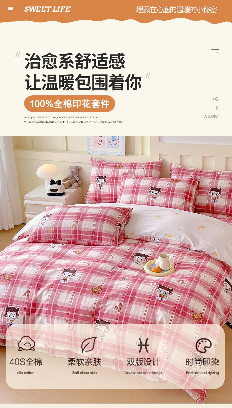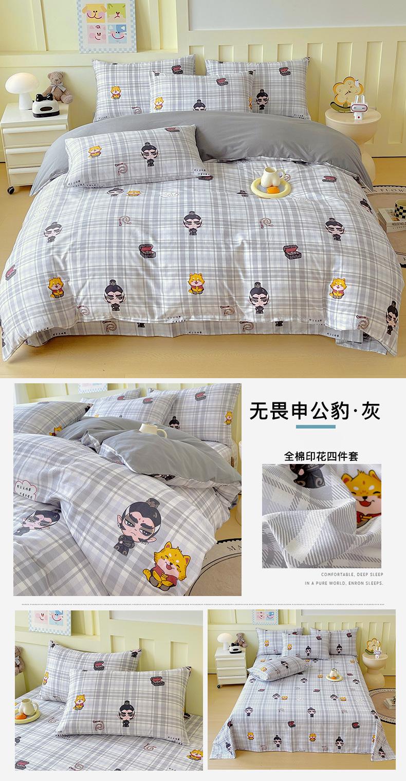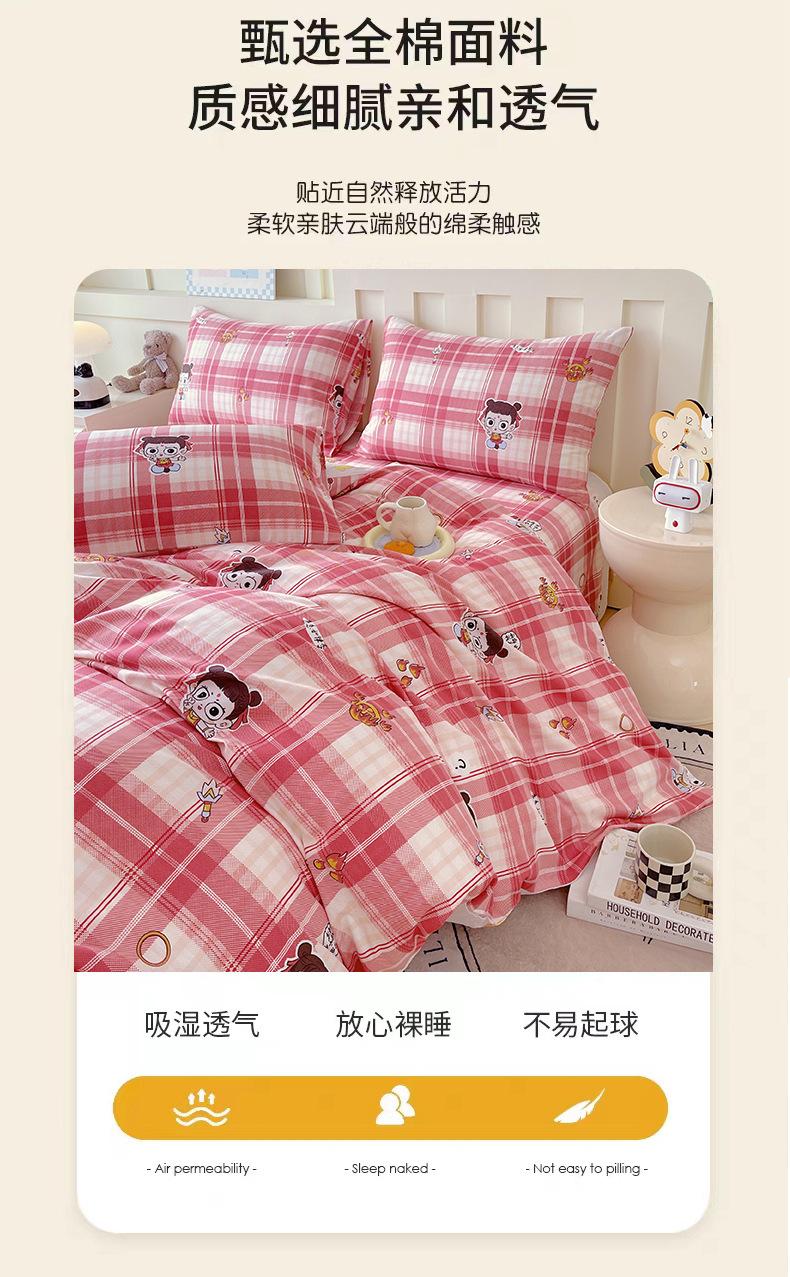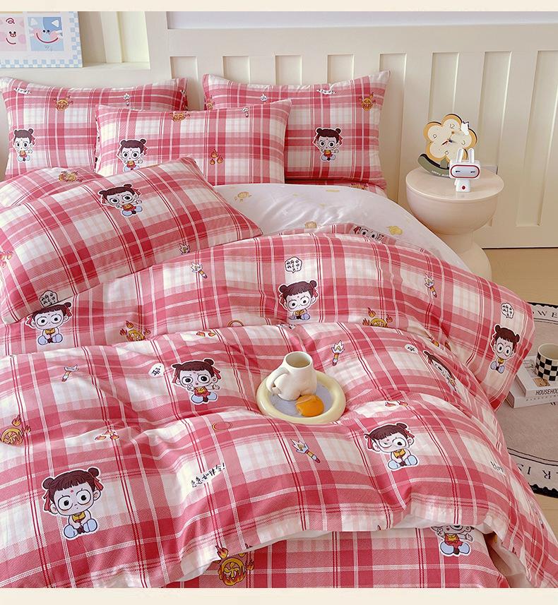 Categoría a Grado Materno e Infantil Set de Cuatro Piezas de Algodón Nezha Algodón Puro Cama Sábanas Funda Nórdica Ins Dibujos Animados Estudiante Dormitorio Cama Set de Tres Piezas