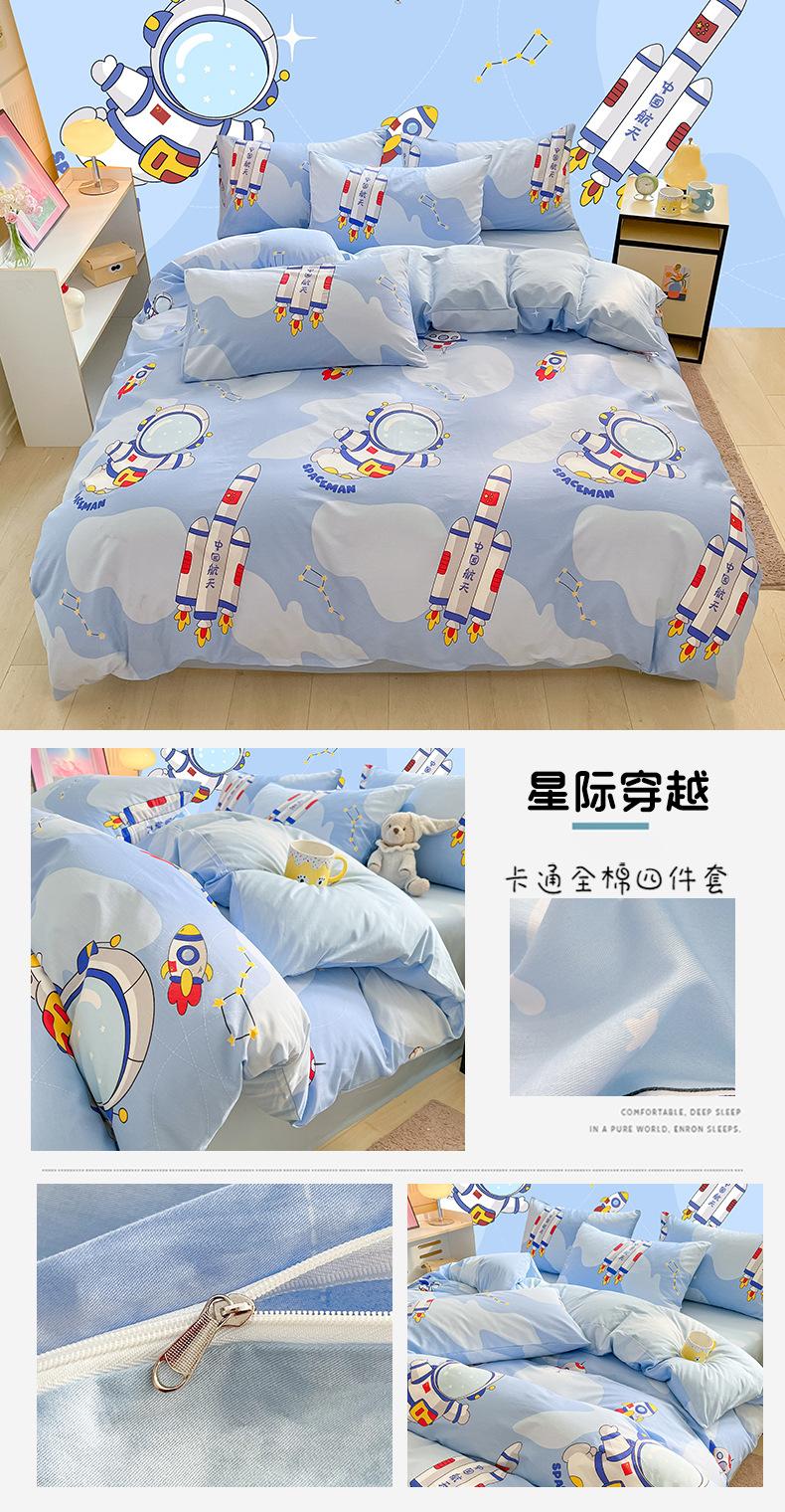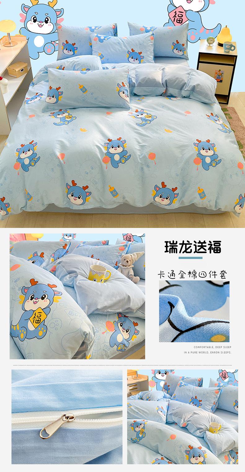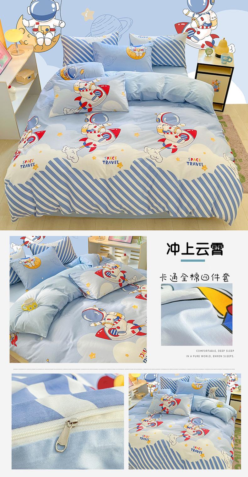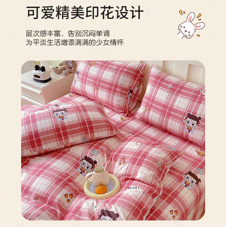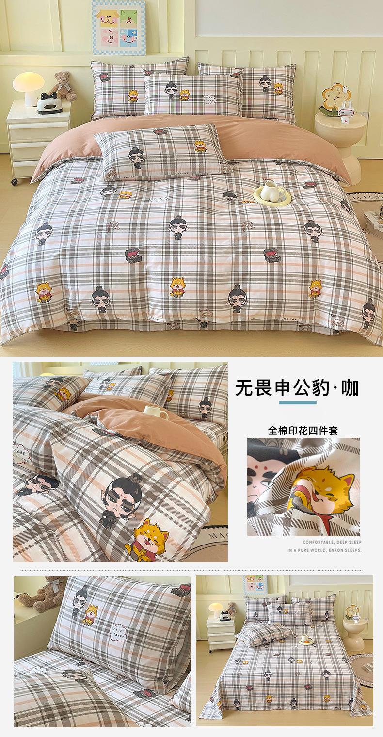Categoría a Grado Materno e Infantil Set de Cuatro Piezas de Algodón Nezha Algodón Puro Cama Sábanas Funda Nórdica Ins Dibujos Animados Estudiante Dormitorio Cama Set de Tres Piezas