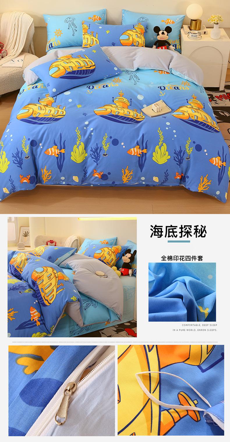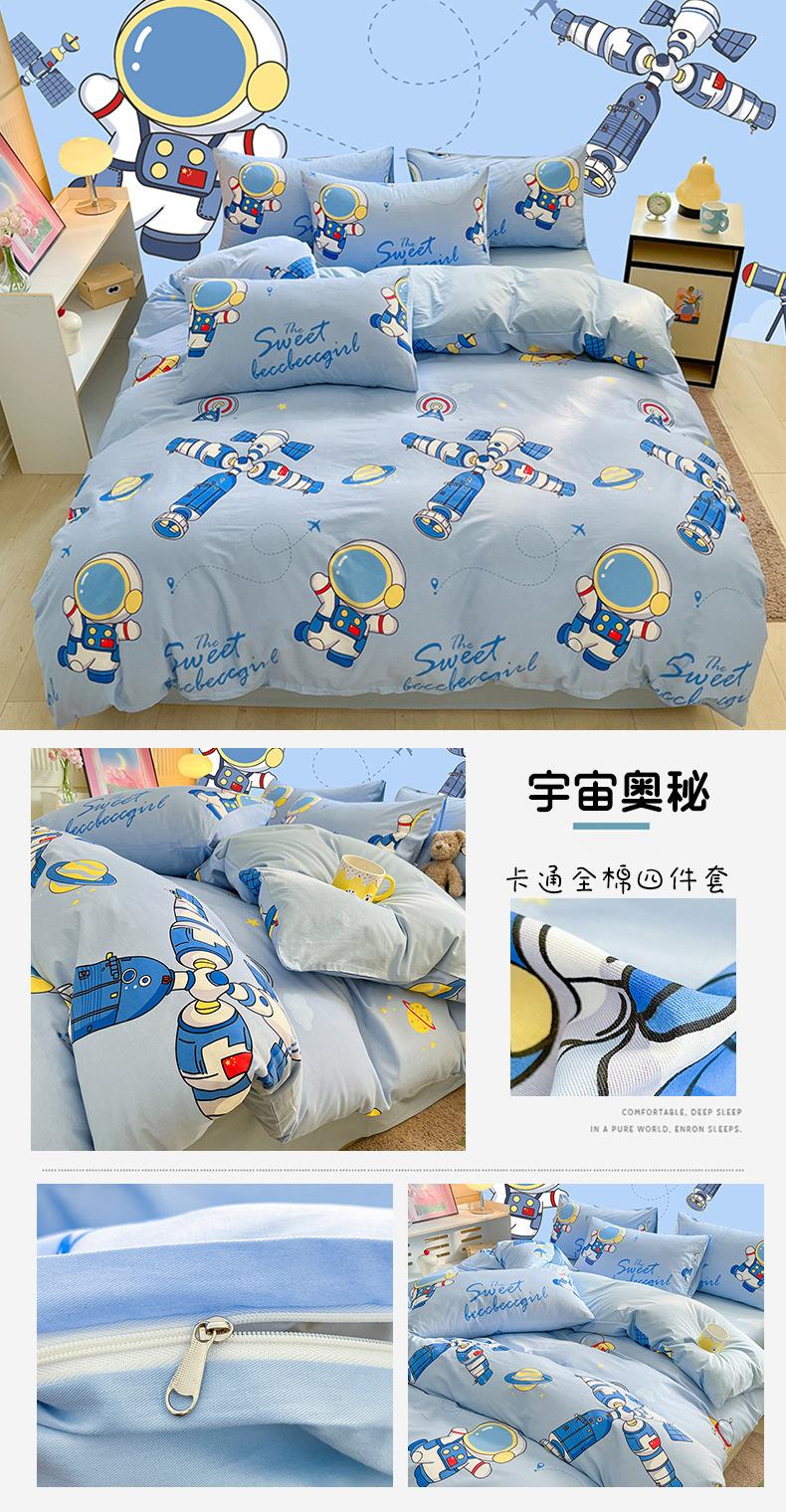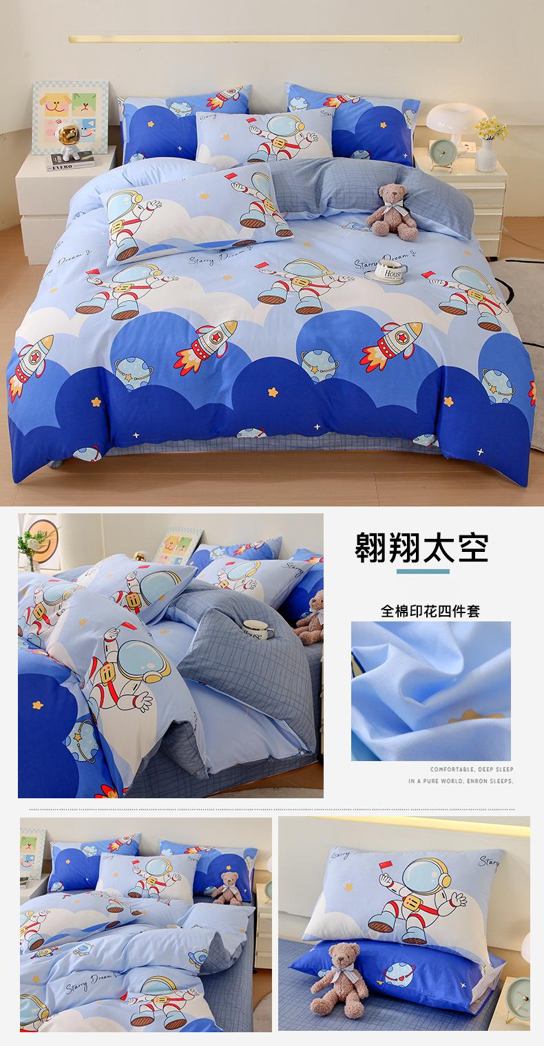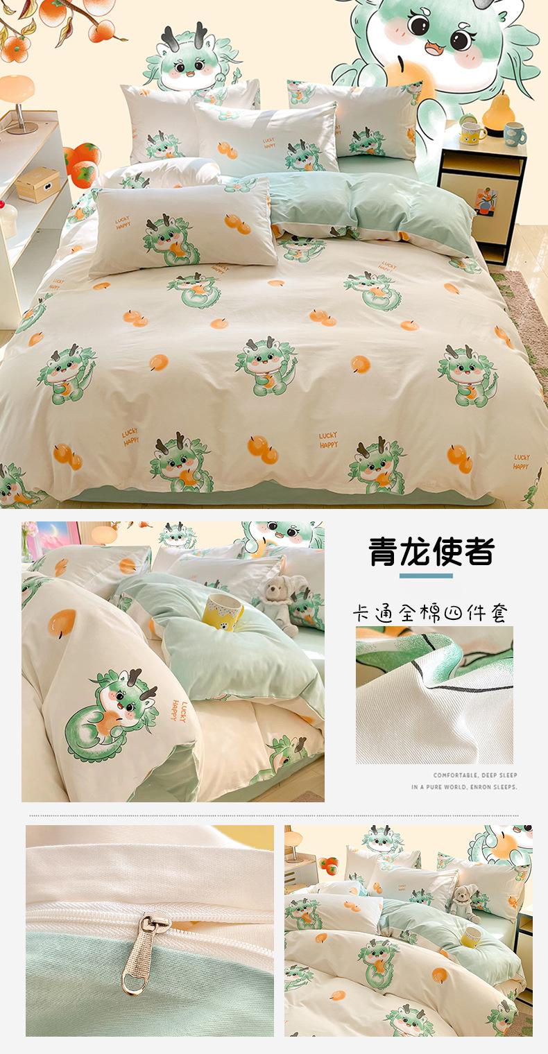 Categoría a Grado Materno e Infantil Set de Cuatro Piezas de Algodón Nezha Algodón Puro Cama Sábanas Funda Nórdica Ins Dibujos Animados Estudiante Dormitorio Cama Set de Tres Piezas