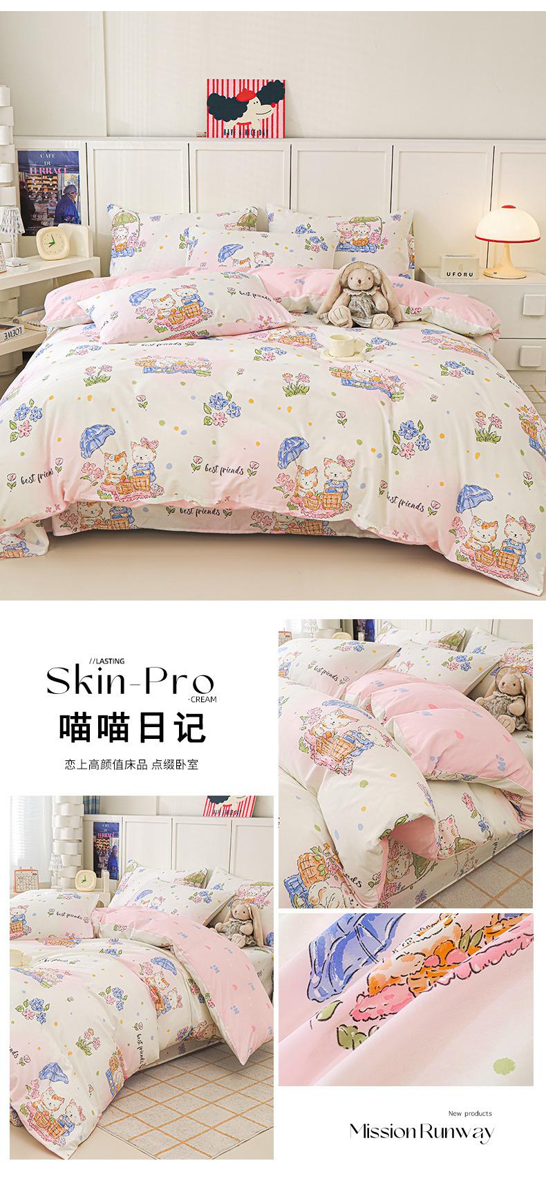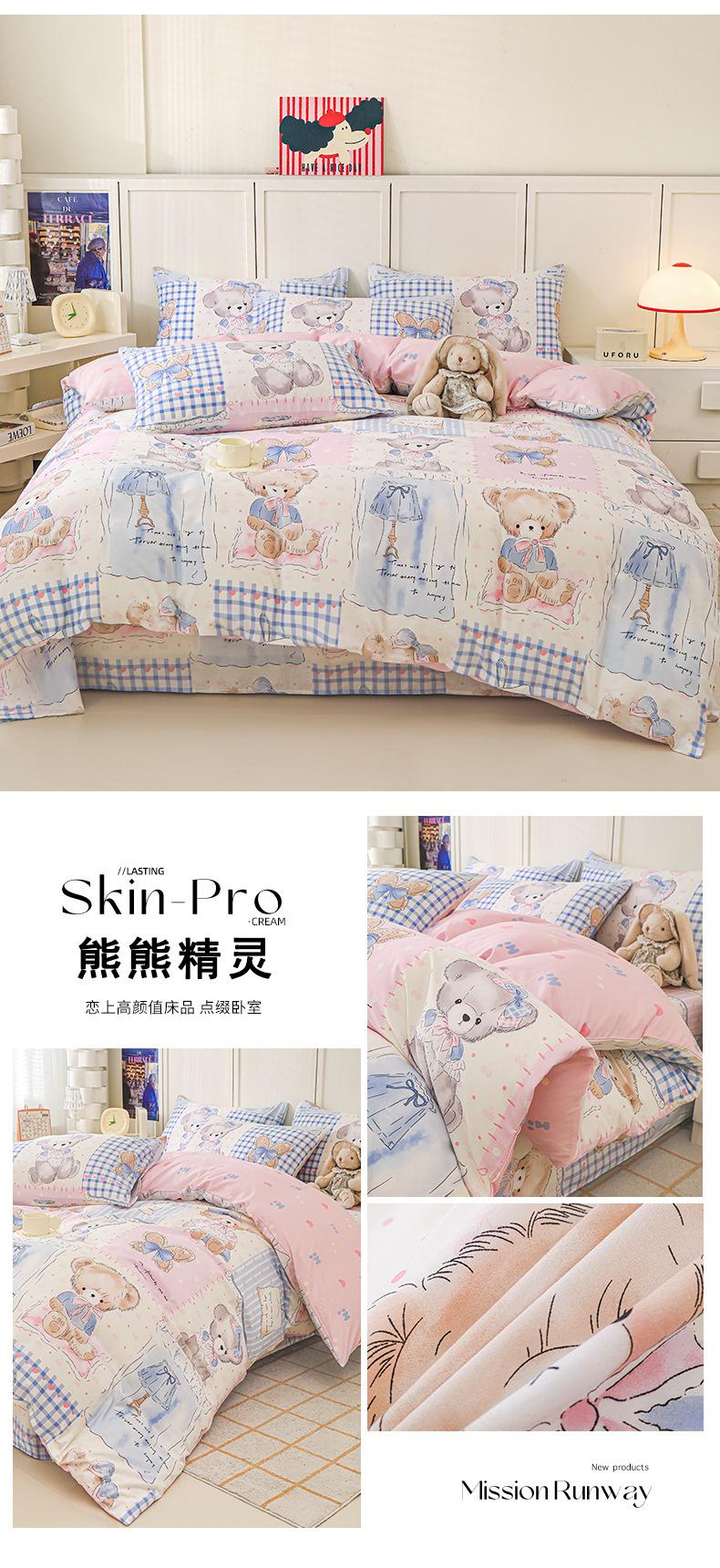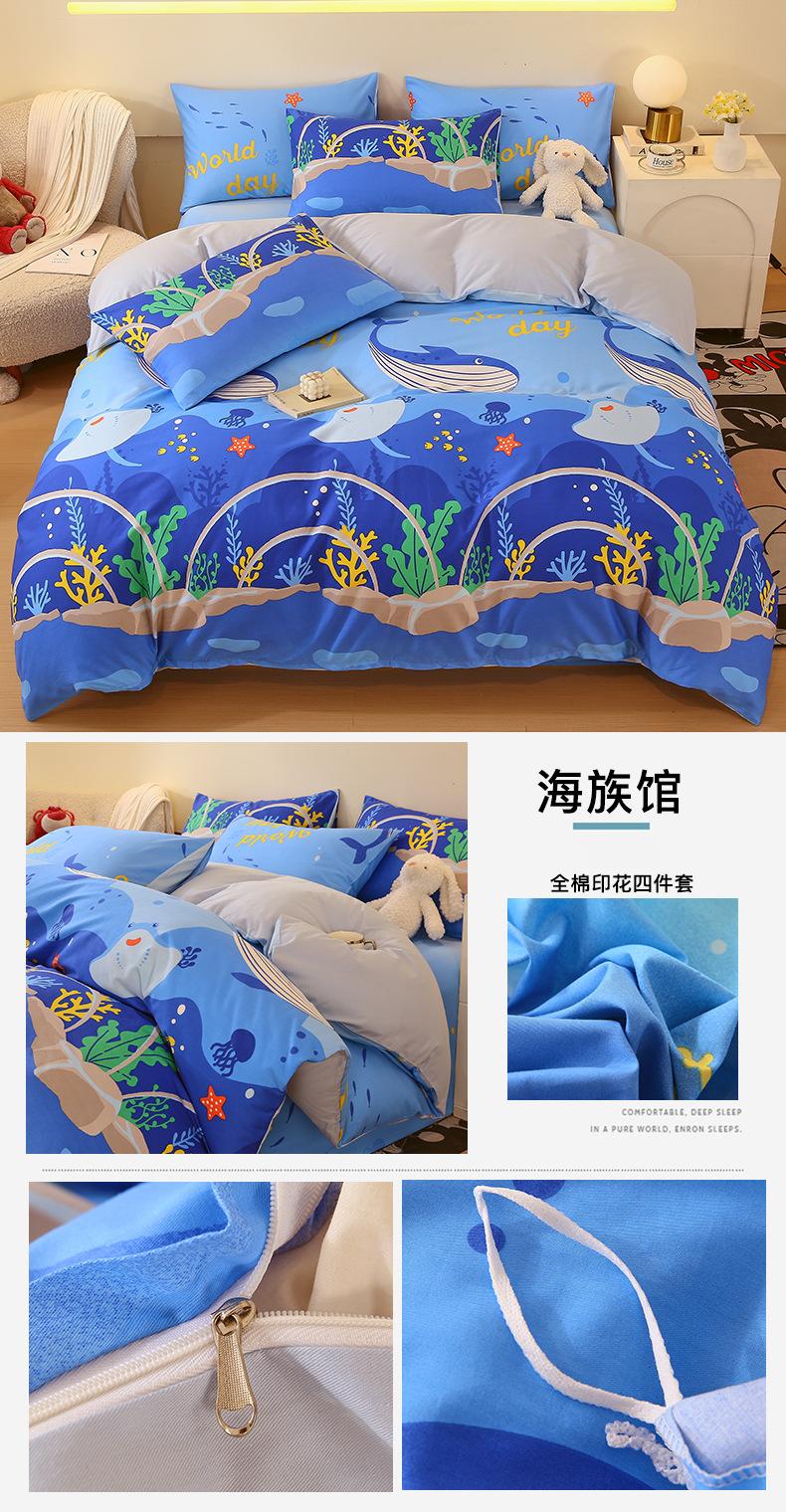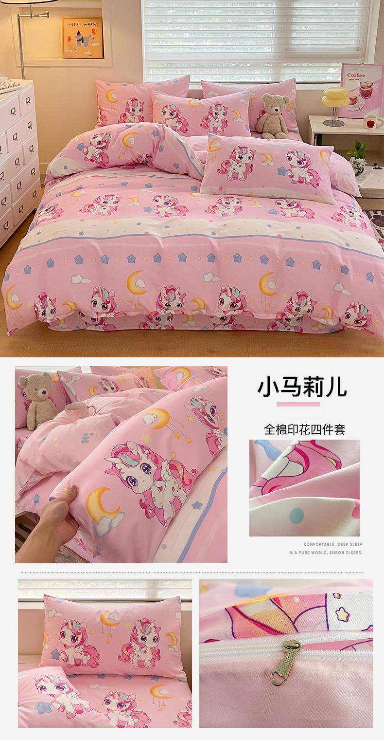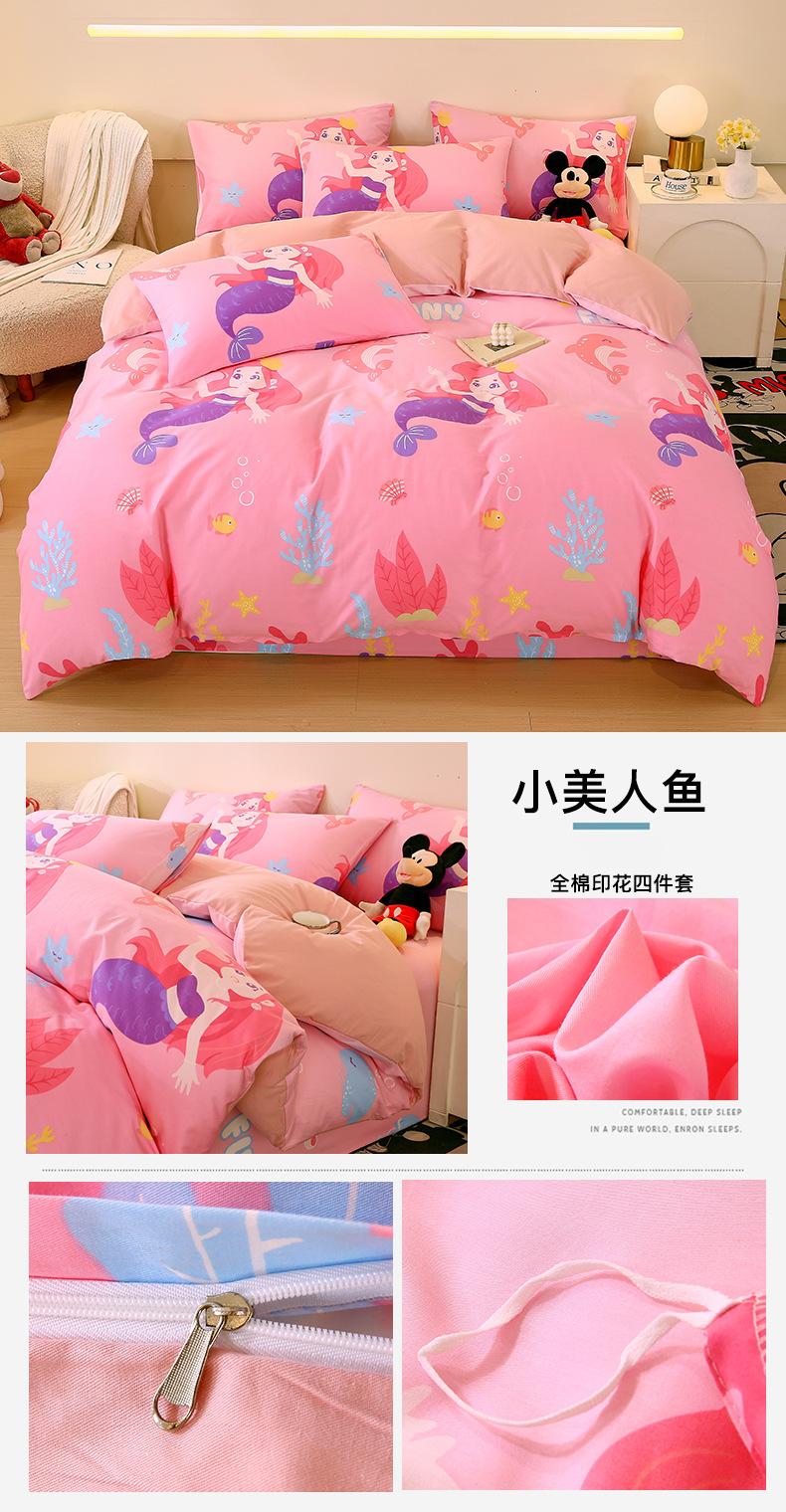 Categoría a Grado Materno e Infantil Set de Cuatro Piezas de Algodón Nezha Algodón Puro Cama Sábanas Funda Nórdica Ins Dibujos Animados Estudiante Dormitorio Cama Set de Tres Piezas