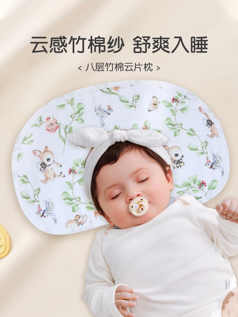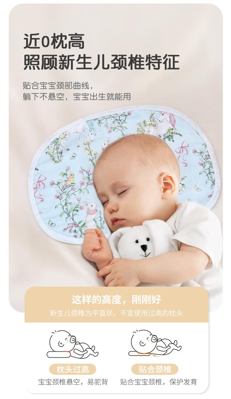 Le Ban Almohada de Bebé de Algodón de Bambú de Ocho Capas Verano Transpirable Almohada Plana Bebé Recién Nacido 0-6 Meses con Almohada de Nube para Niños