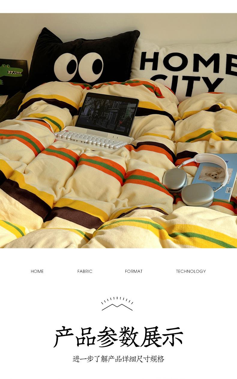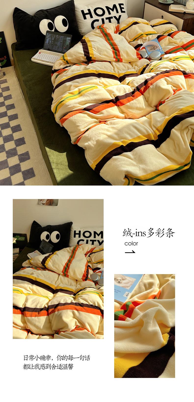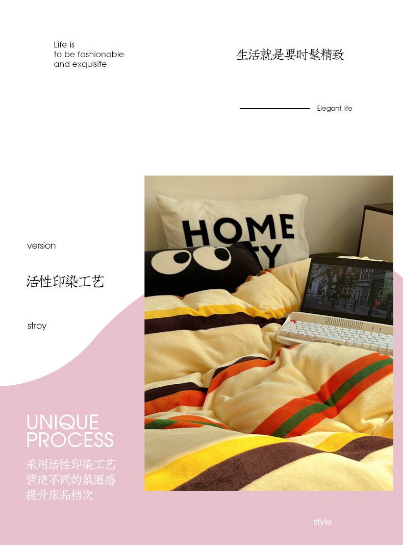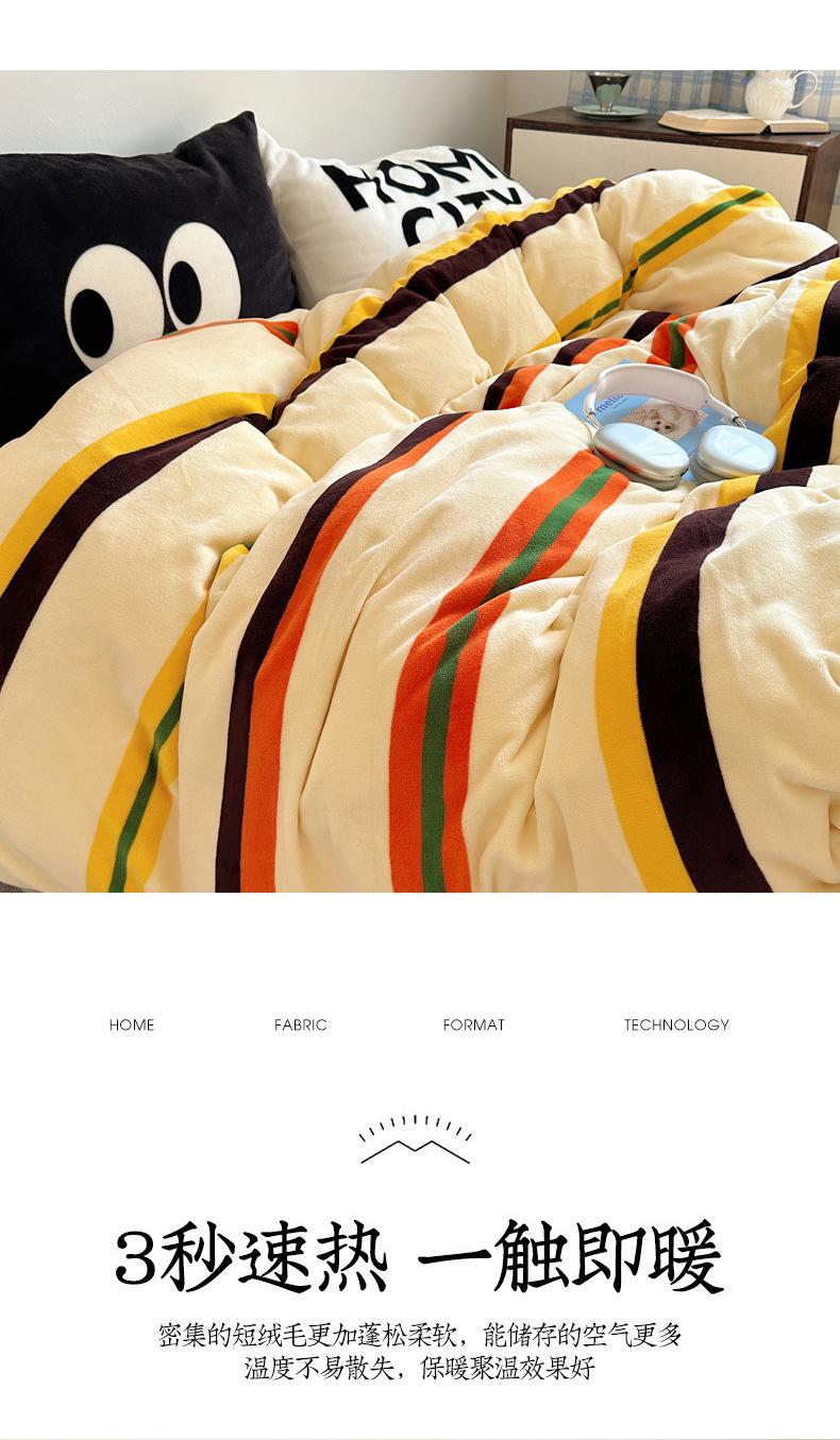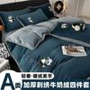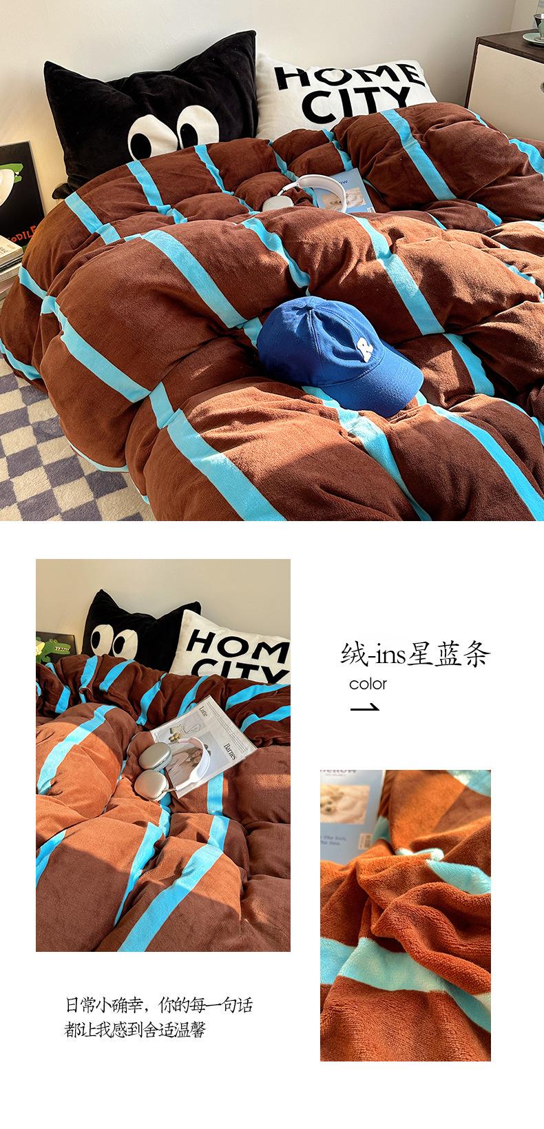 Juego de cuatro piezas de terciopelo de leche engrosado para otoño e invierno con forro polar cálido, franela de forro polar coral, sábana bajera, funda nórdica, ropa de cama