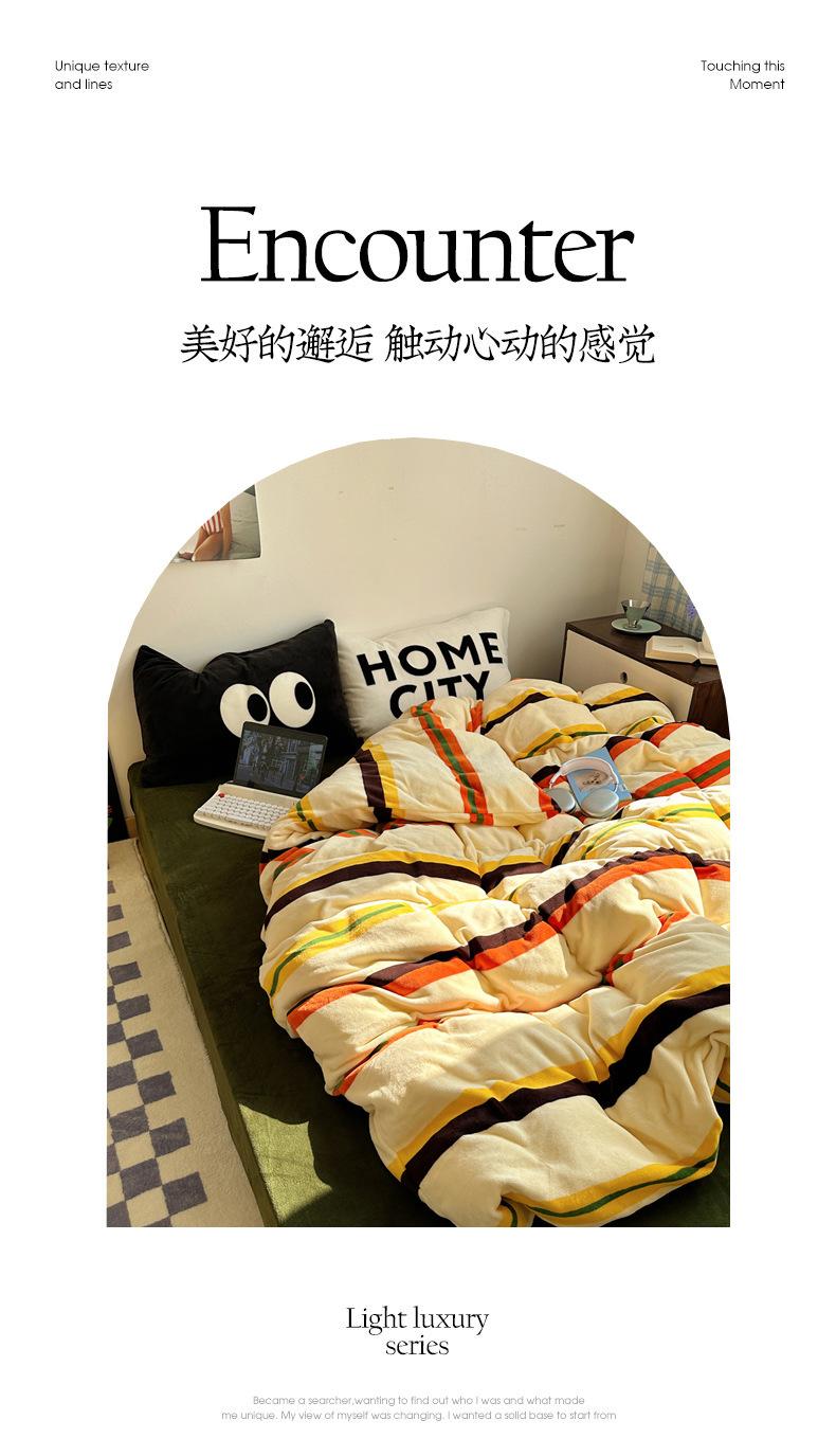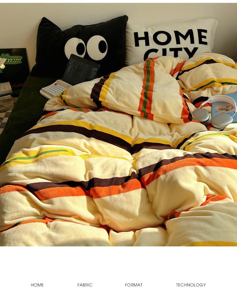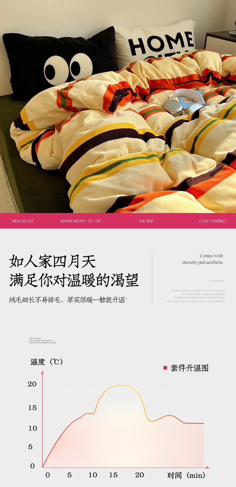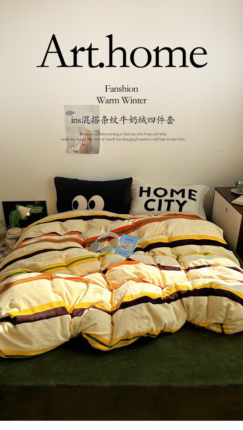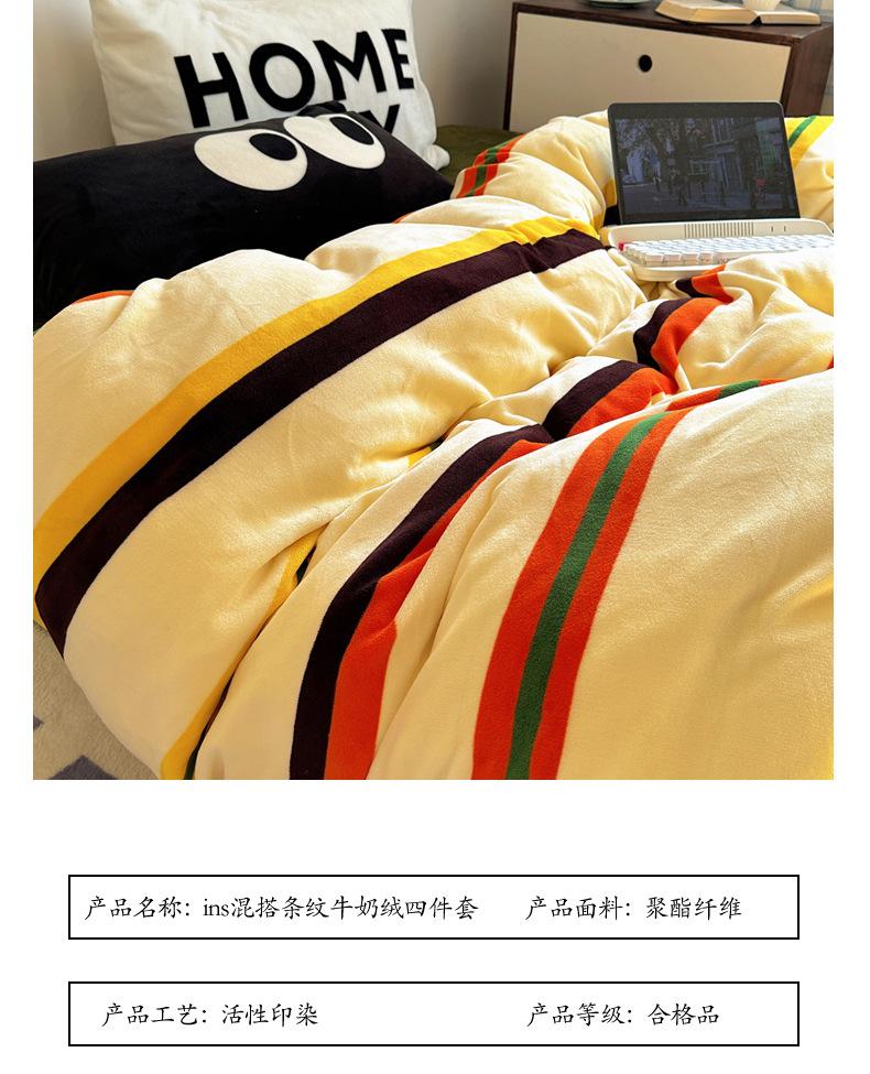Juego de cuatro piezas de terciopelo de leche engrosado para otoño e invierno con forro polar cálido, franela de forro polar coral, sábana bajera, funda nórdica, ropa de cama
