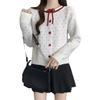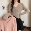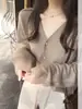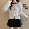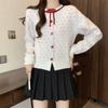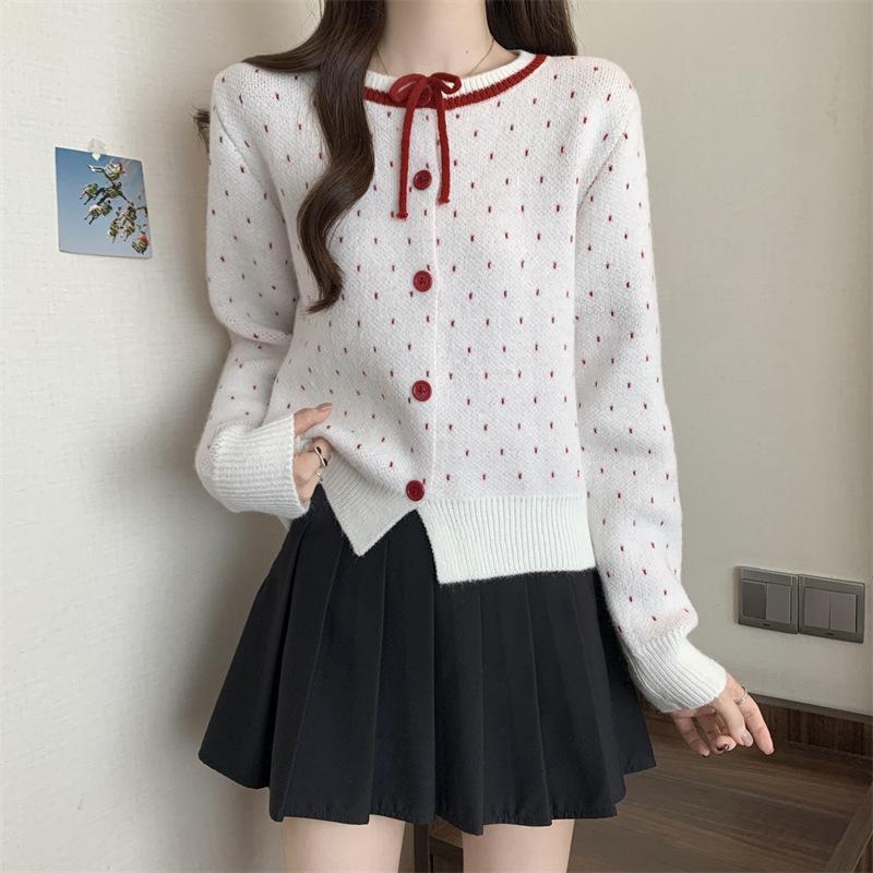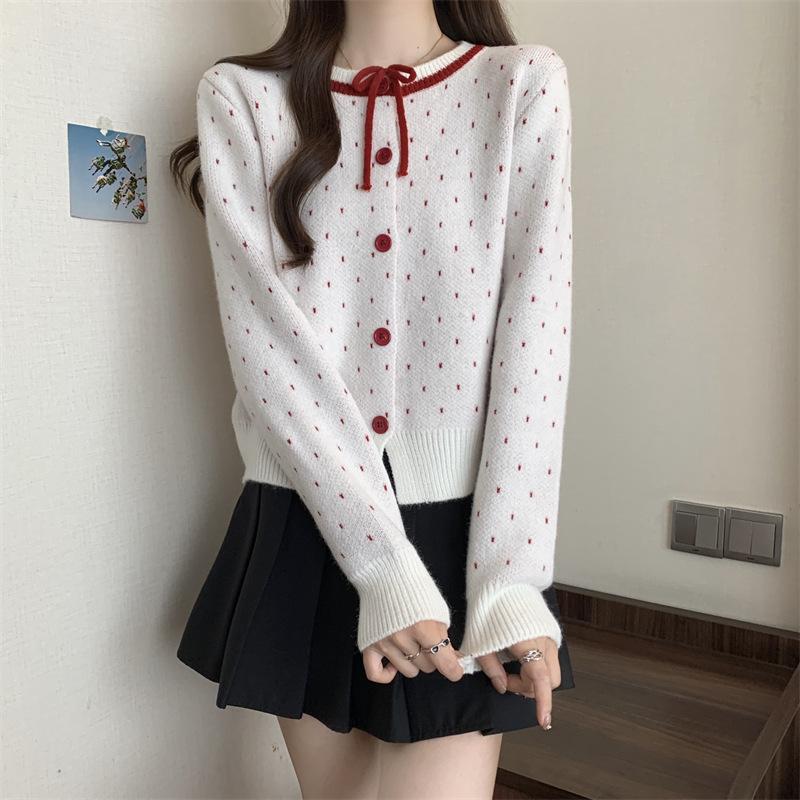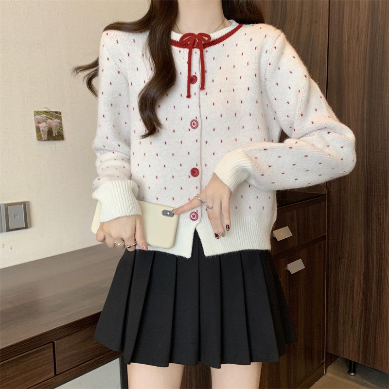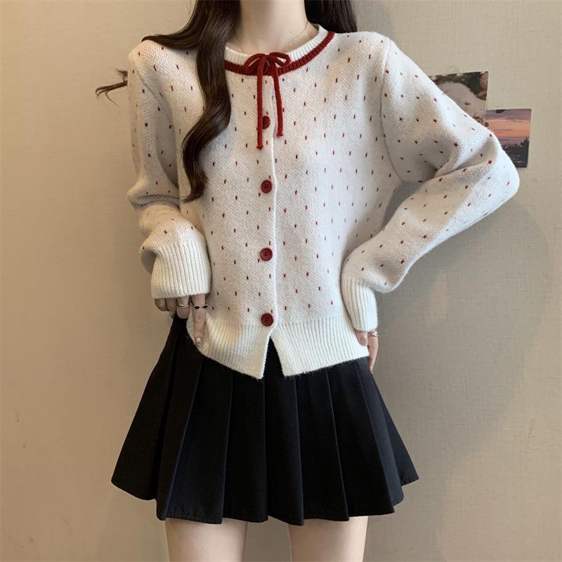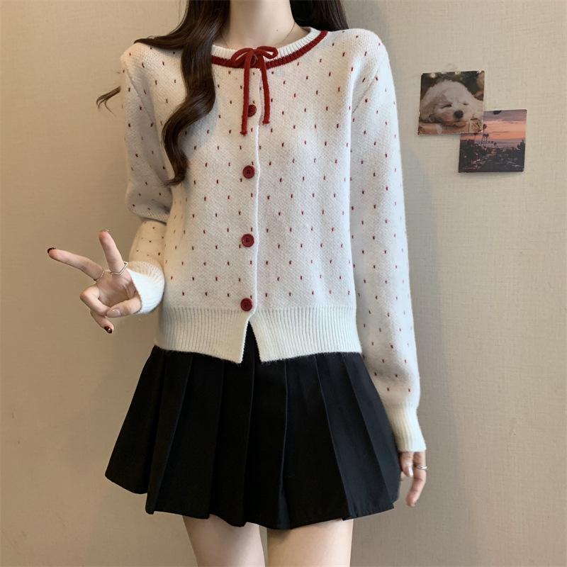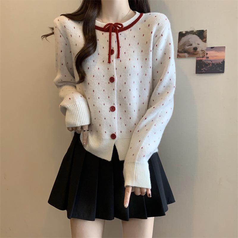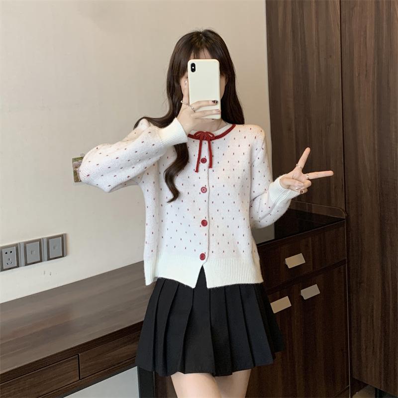 Foto en vivo~ Cárdigan de punto de lunares franceses de talla grande para mujer, nuevo estilo de otoño, abrigo suéter holgado