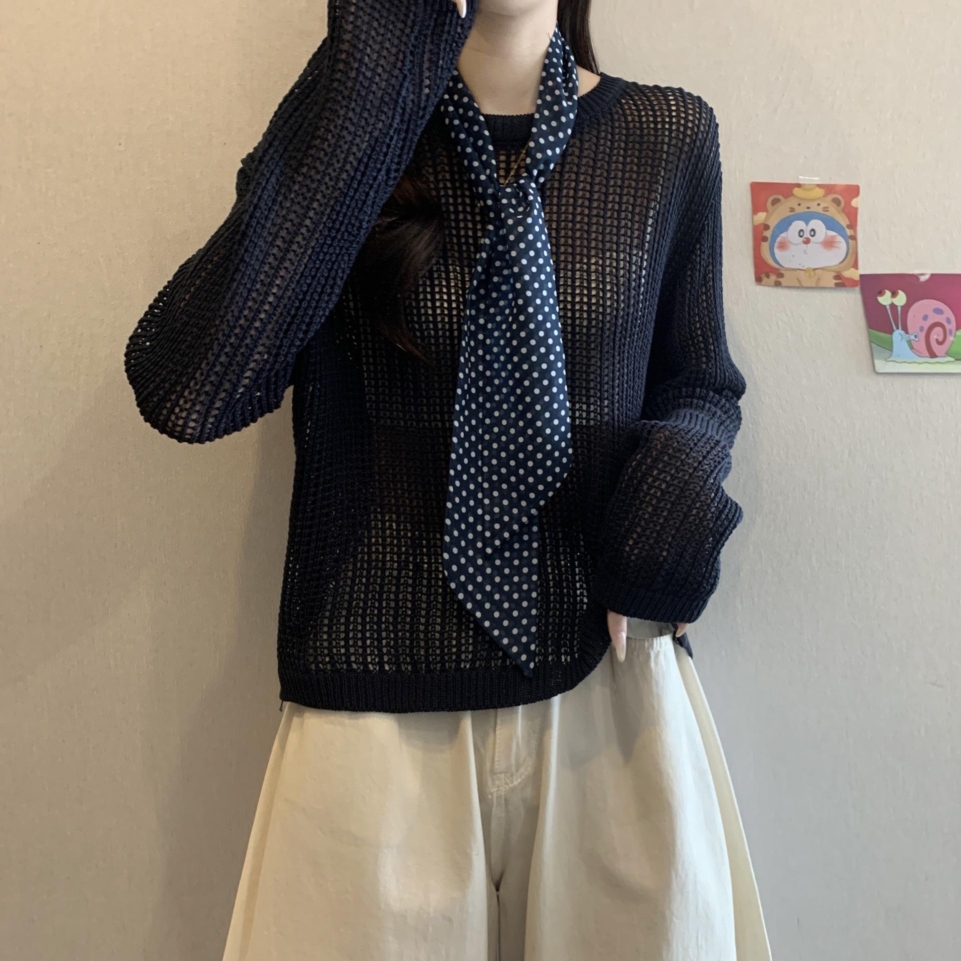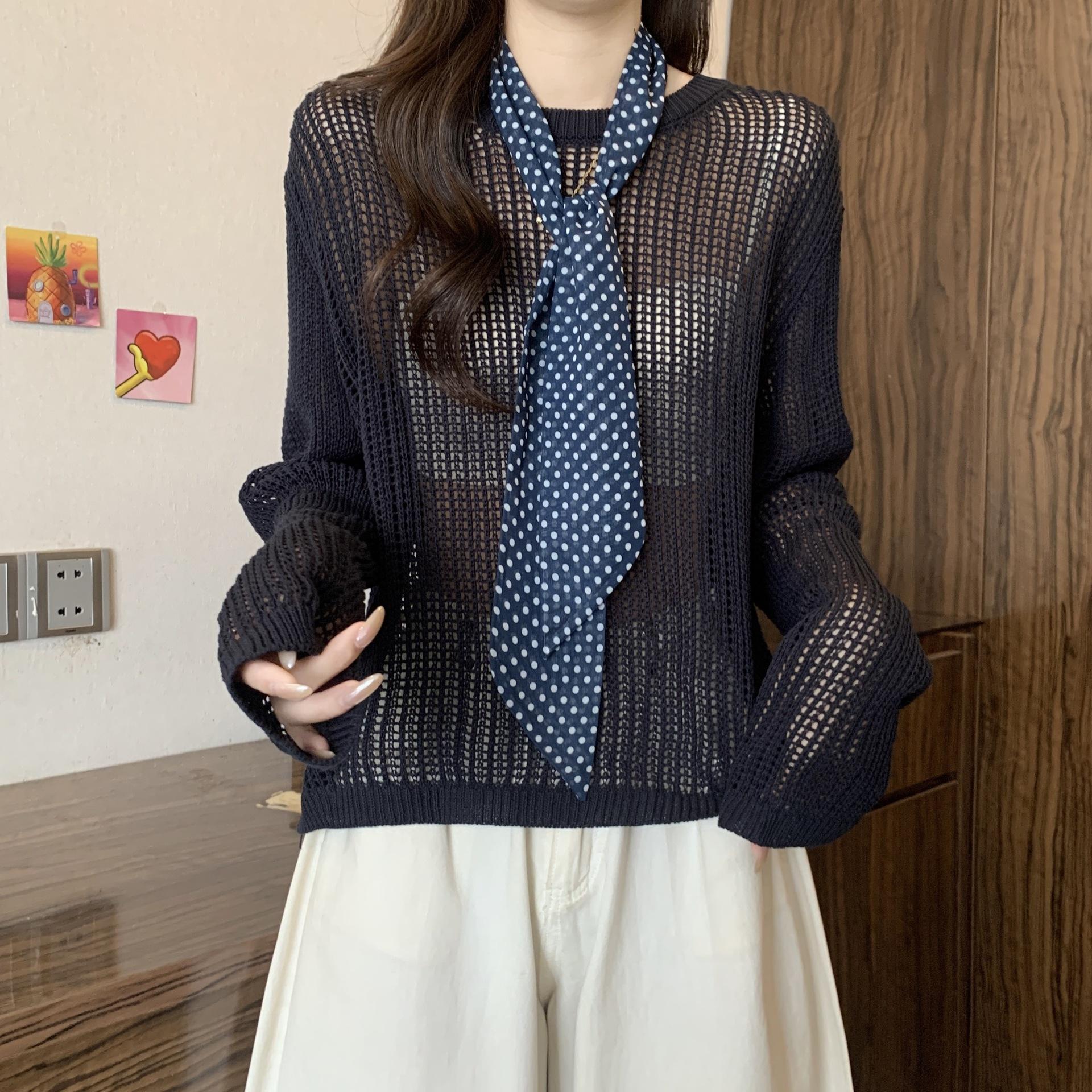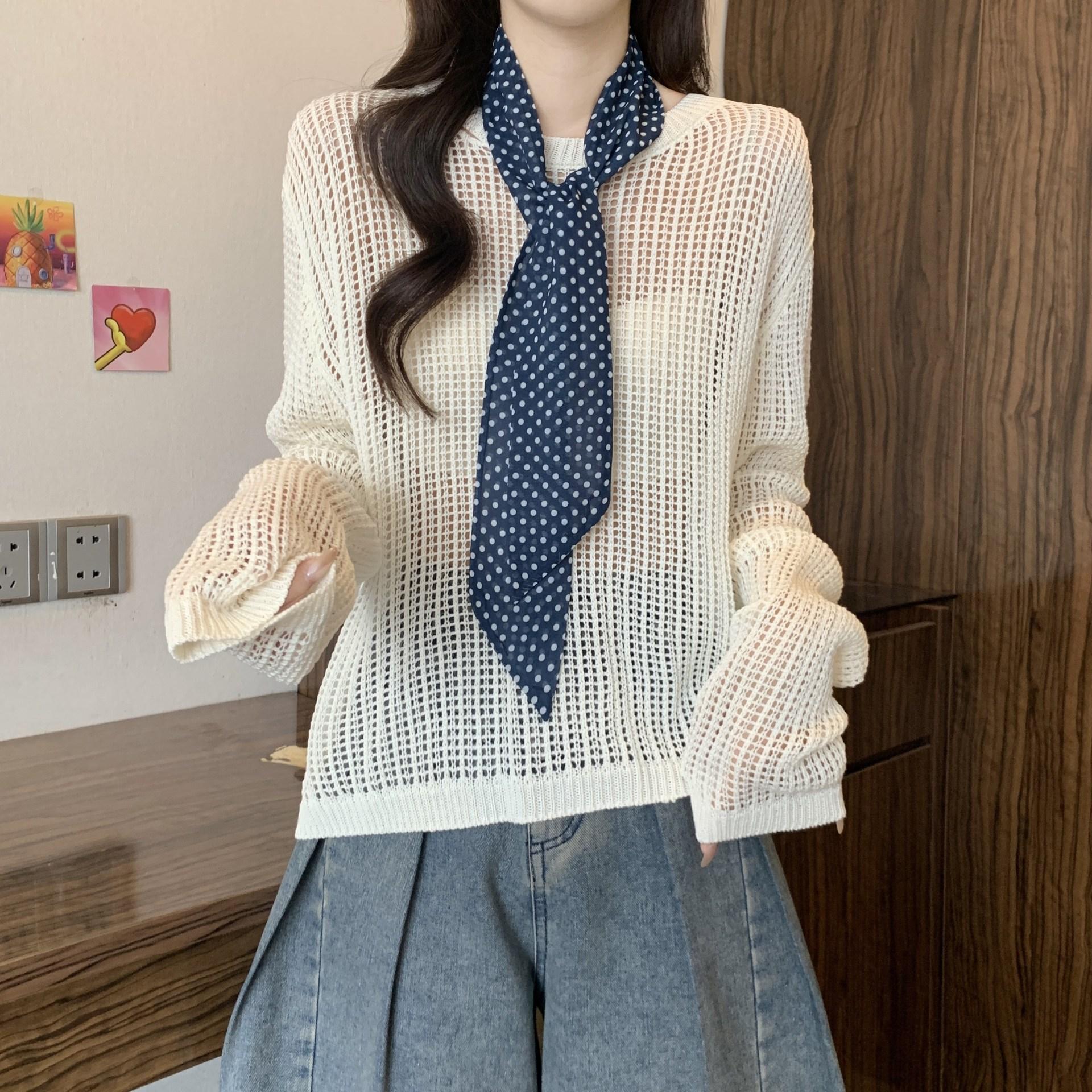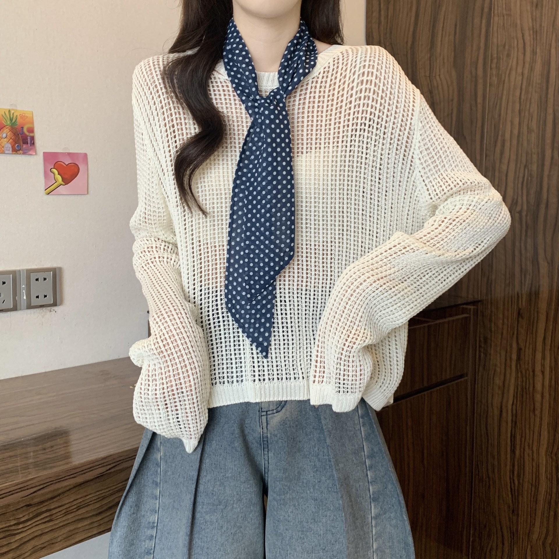 Ropa para Mujer de Talla Grande Diseño Coreano Suéter Bufanda de Punto Calado Top Moderno con Abertura en la Espalda para Chica Gordita