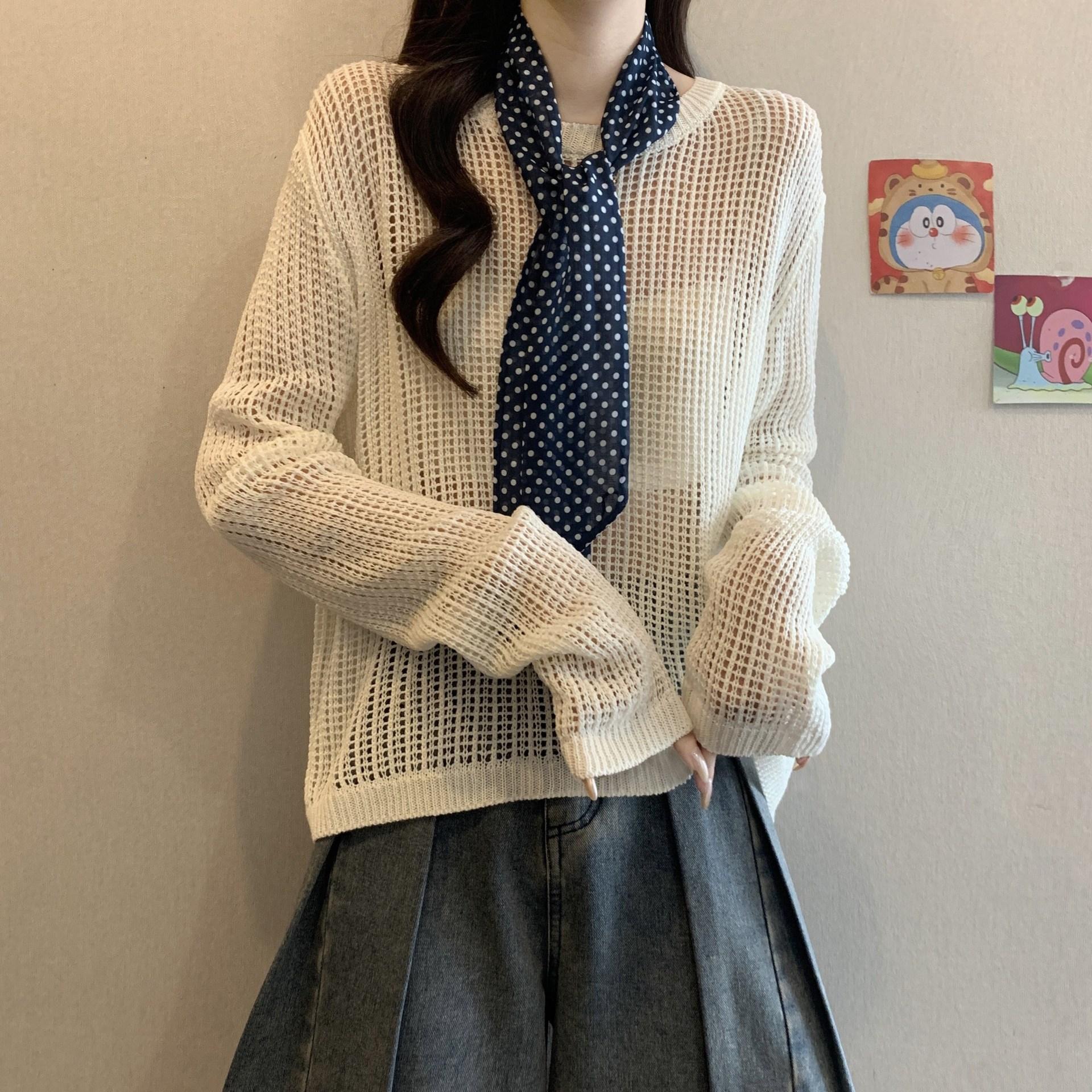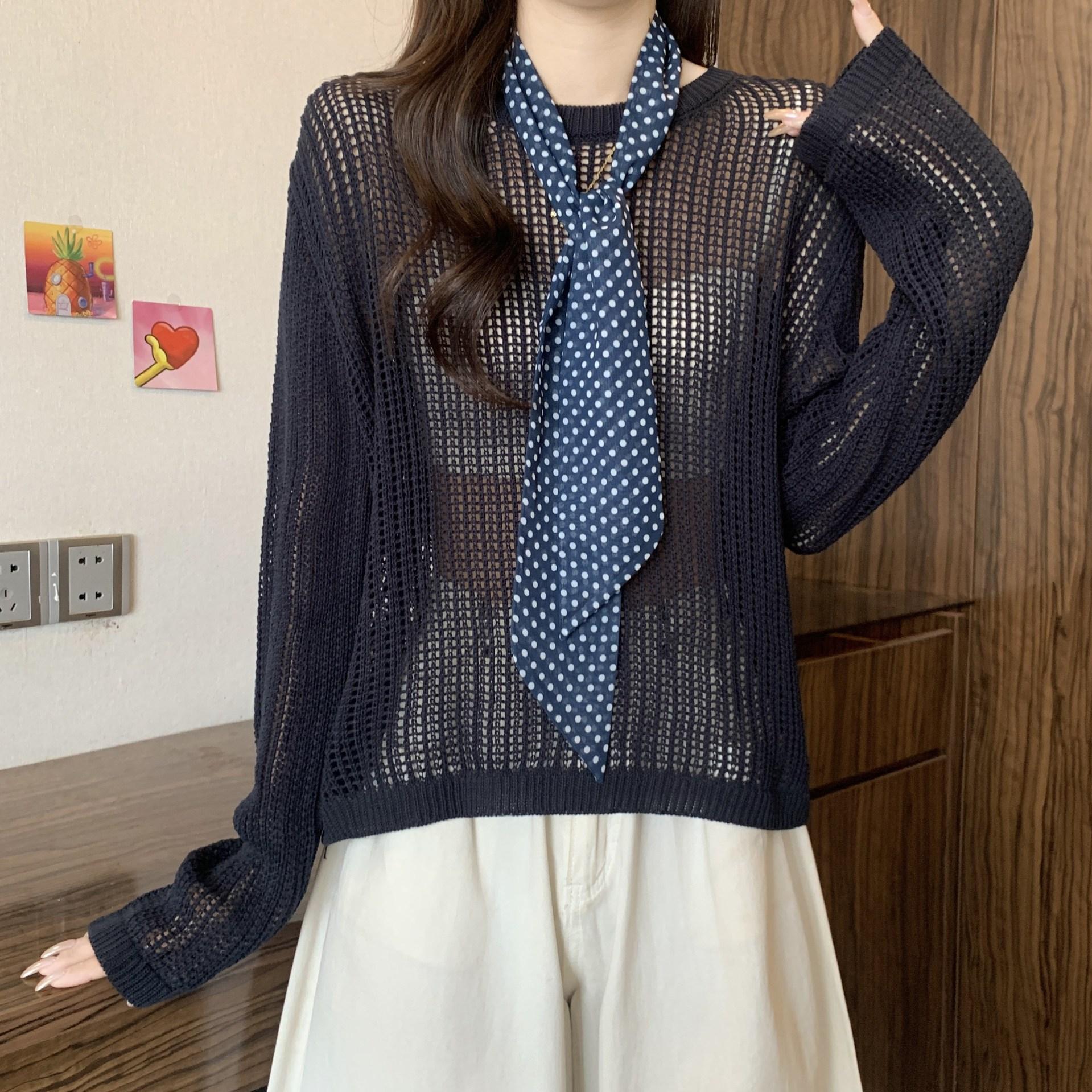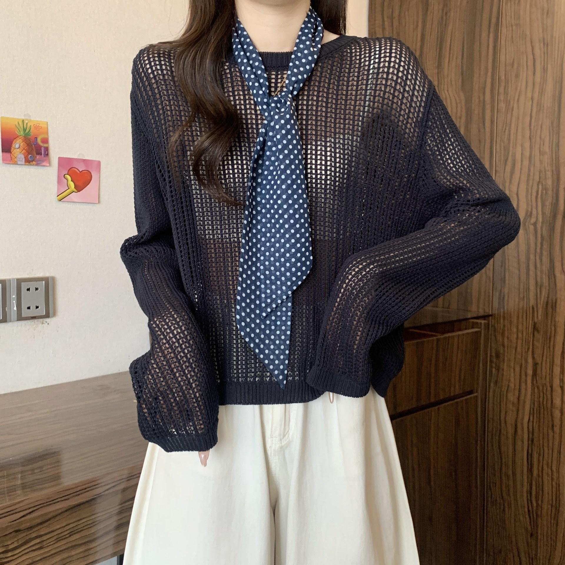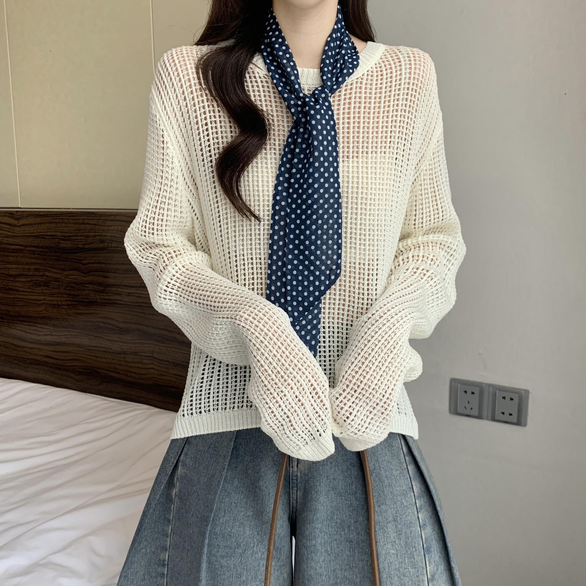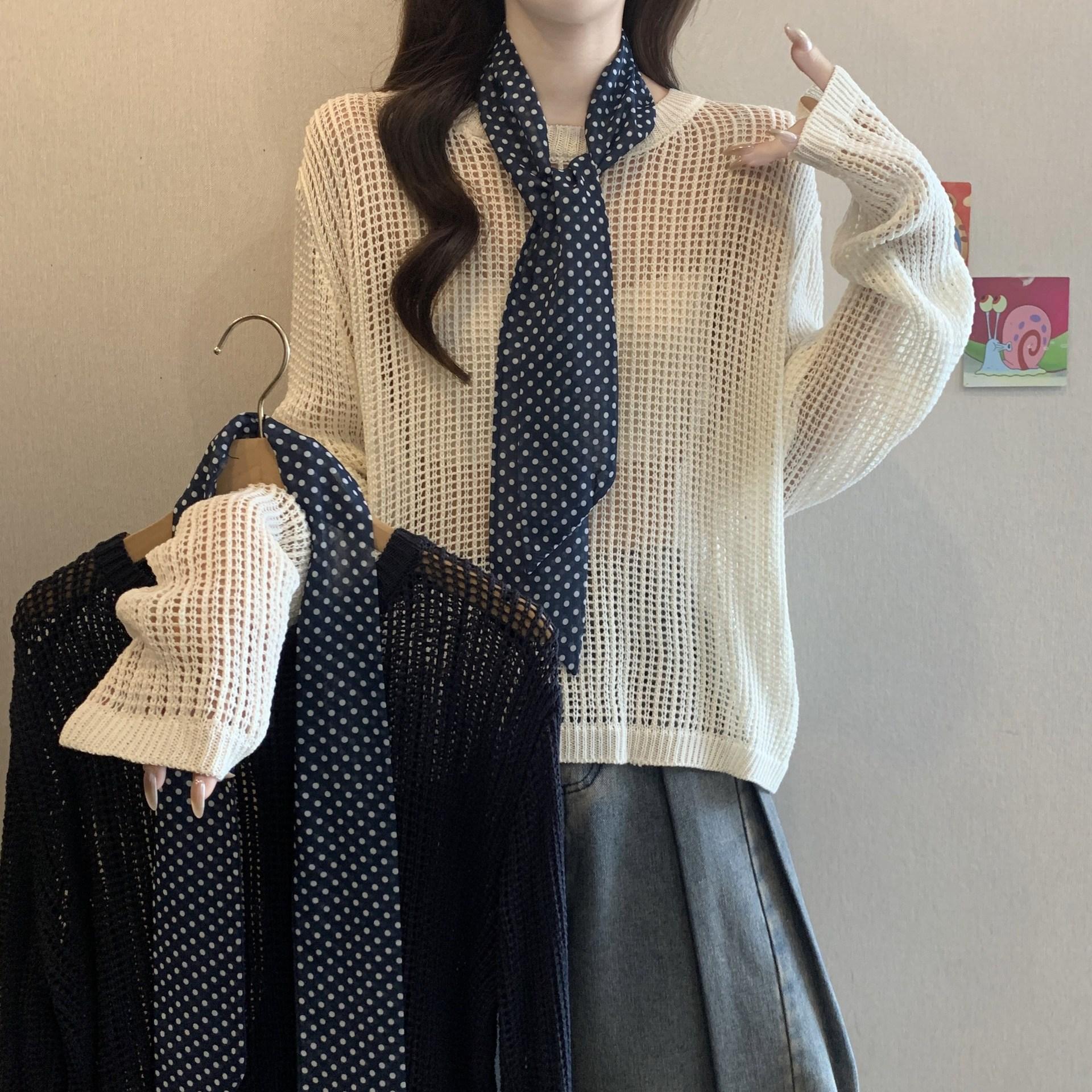 Ropa para Mujer de Talla Grande Diseño Coreano Suéter Bufanda de Punto Calado Top Moderno con Abertura en la Espalda para Chica Gordita