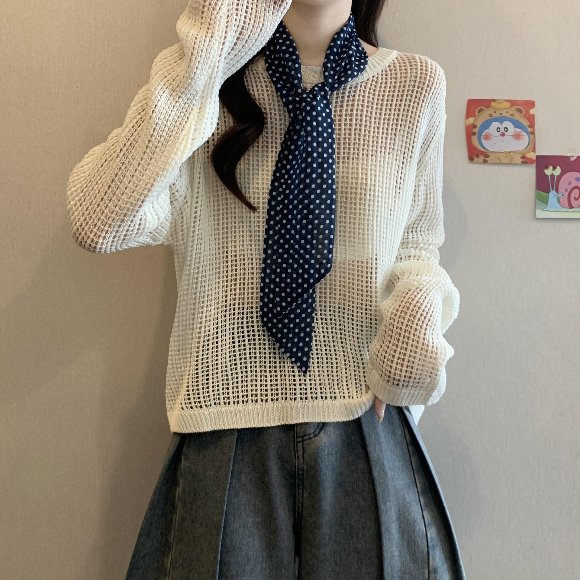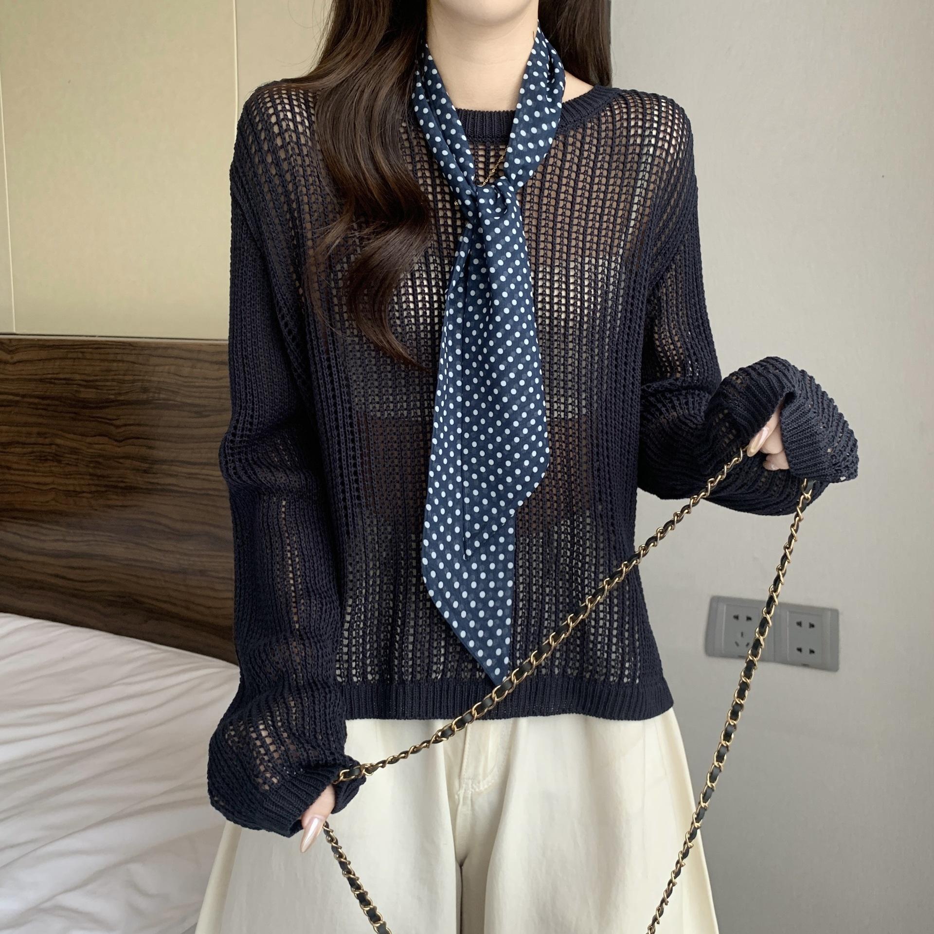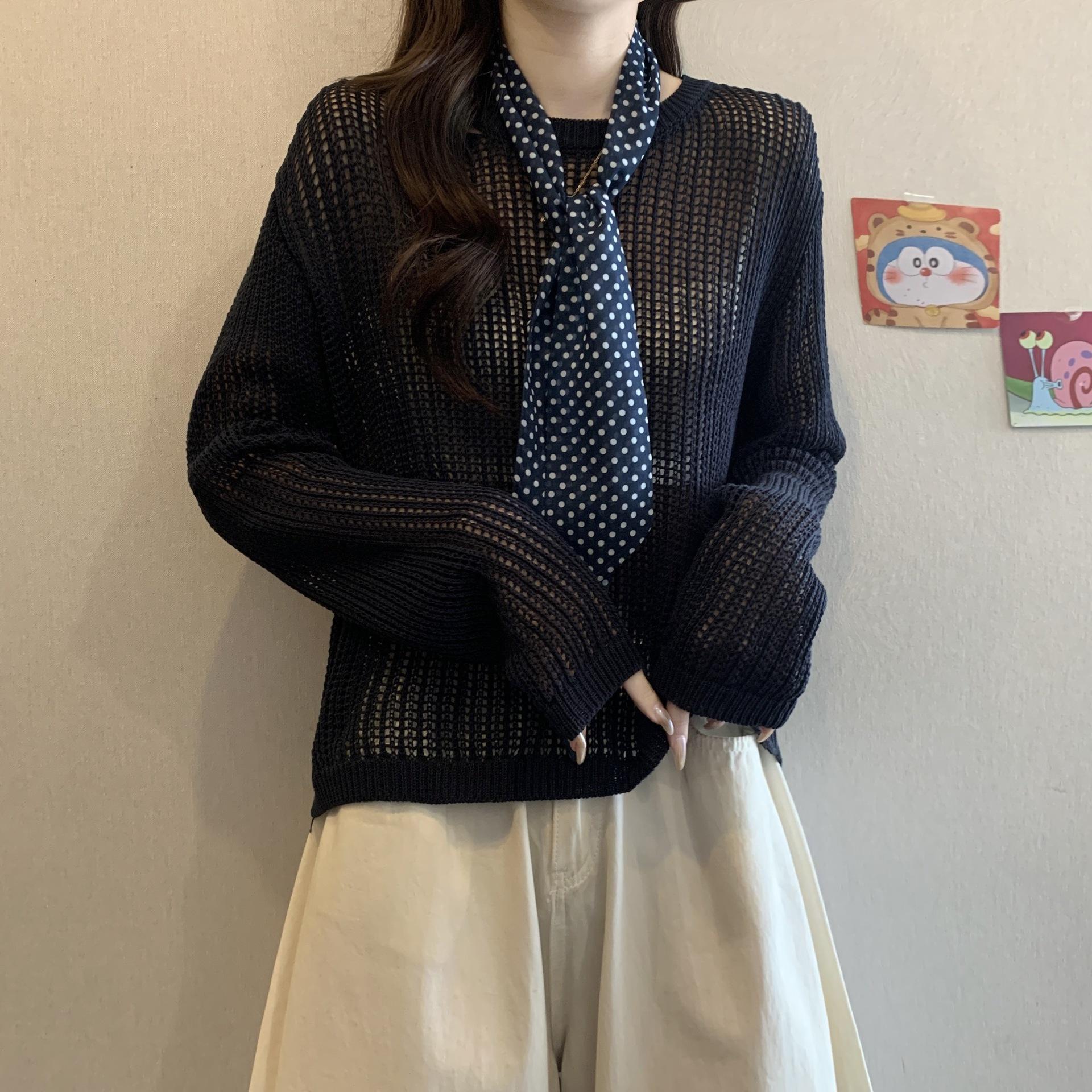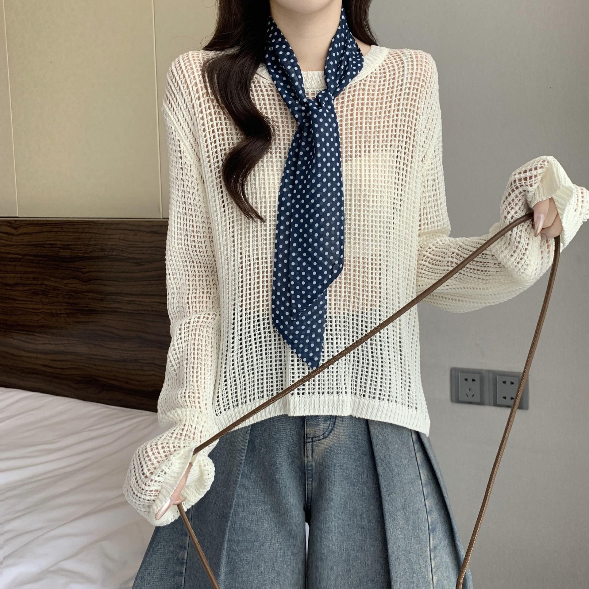 Ropa para Mujer de Talla Grande Diseño Coreano Suéter Bufanda de Punto Calado Top Moderno con Abertura en la Espalda para Chica Gordita