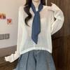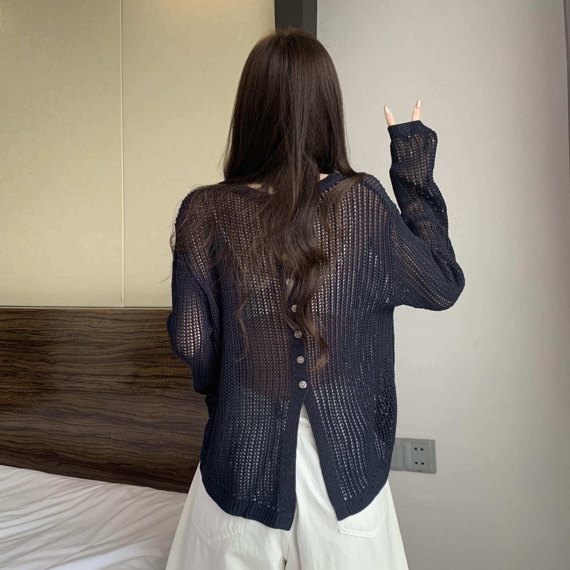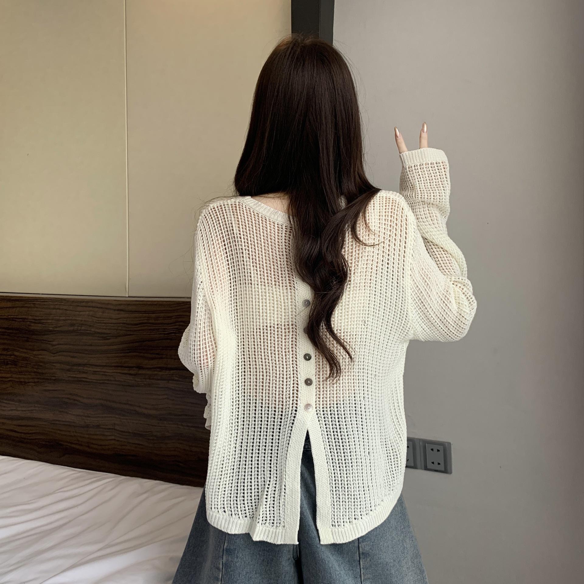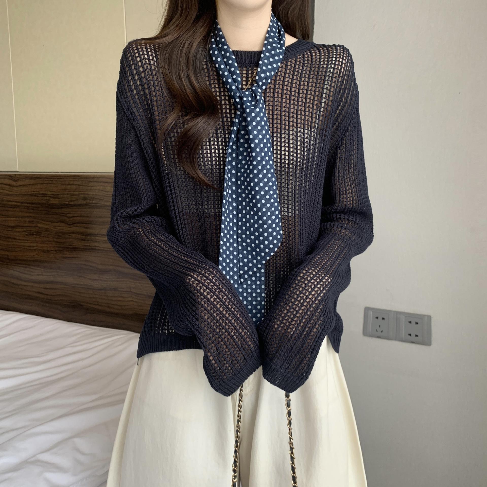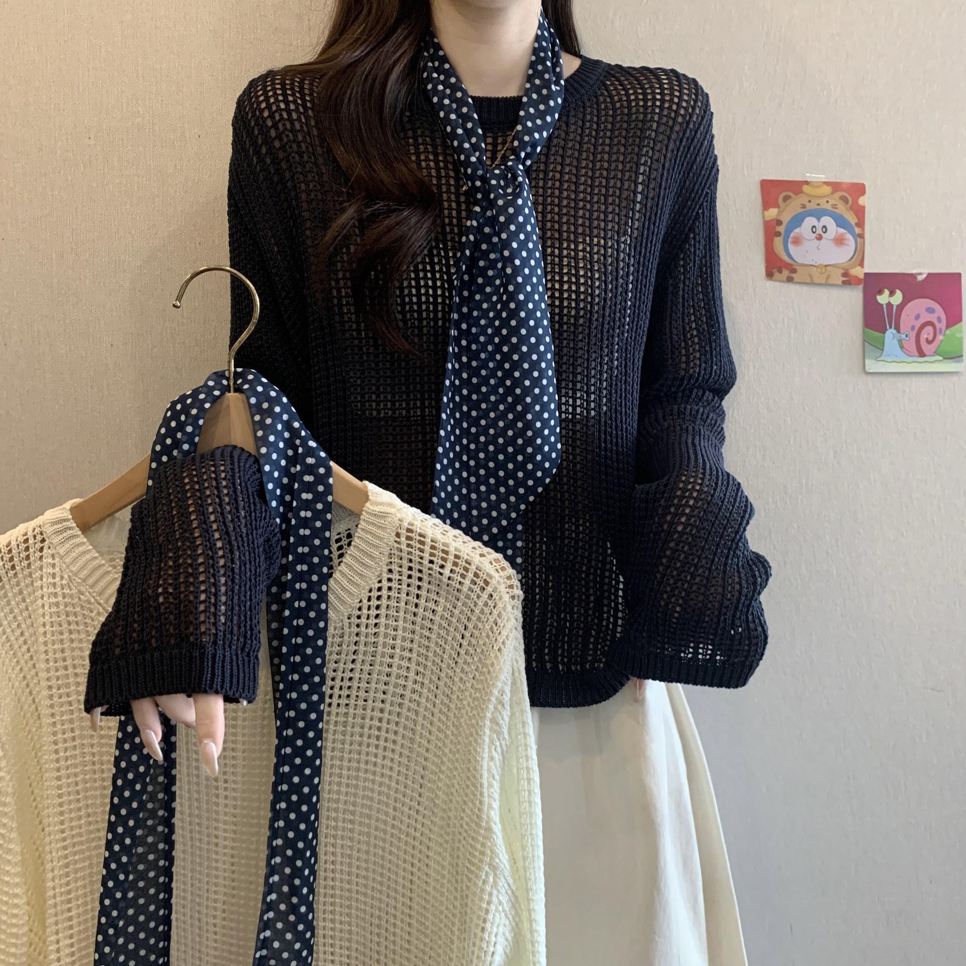 Ropa para Mujer de Talla Grande Diseño Coreano Suéter Bufanda de Punto Calado Top Moderno con Abertura en la Espalda para Chica Gordita