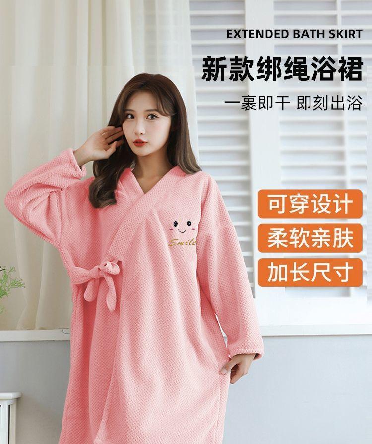 Toalla de baño con mangas, Bata de baño portátil, Camisón largo para mujer, grueso, de secado rápido, suave y absorbente, Falda de baño para invierno
