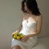 Creamy white - sleeved and collared strappy bath skirt, Pink-sleeved and collared strappy bath skirt, Sauce pu...