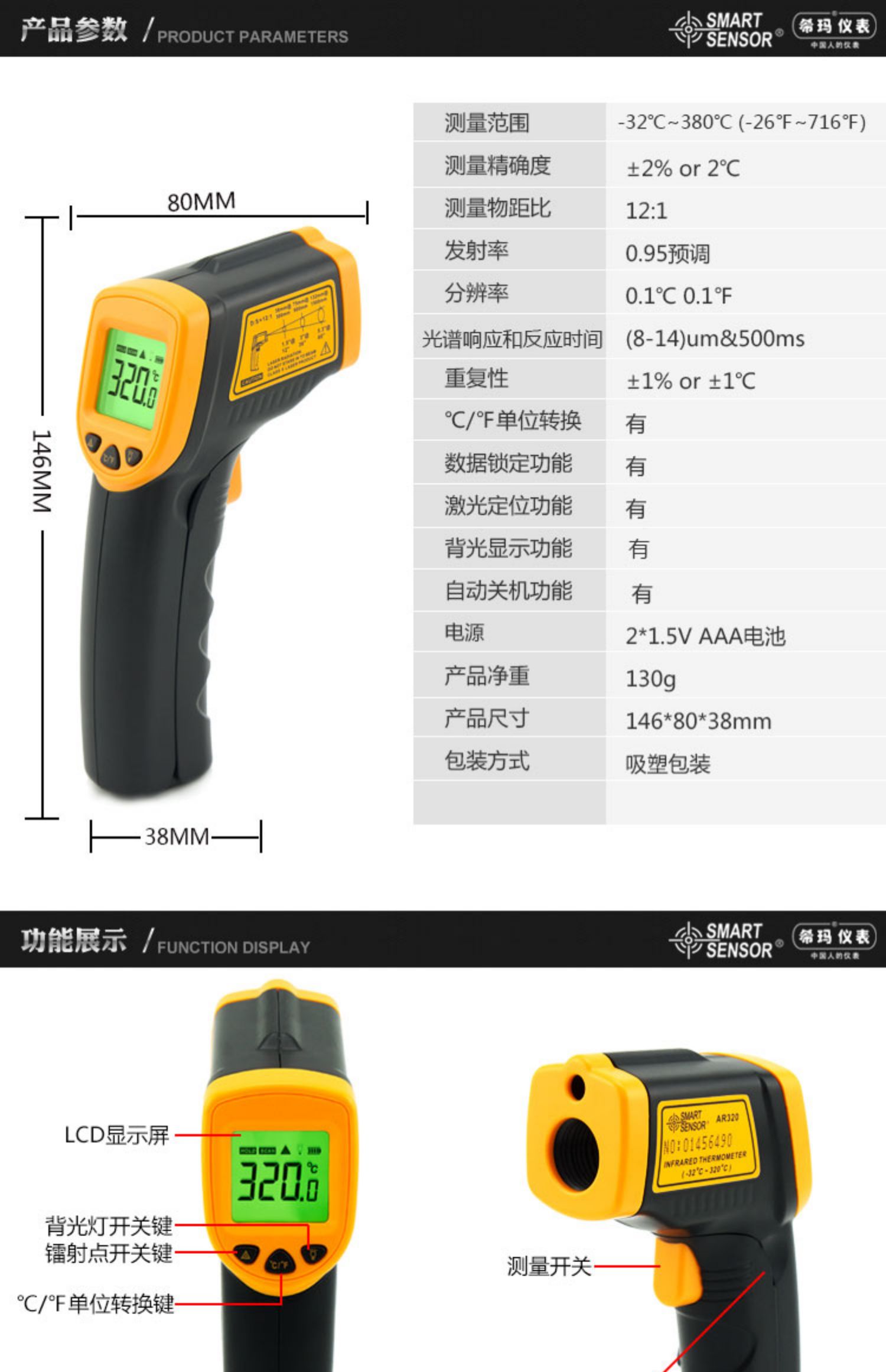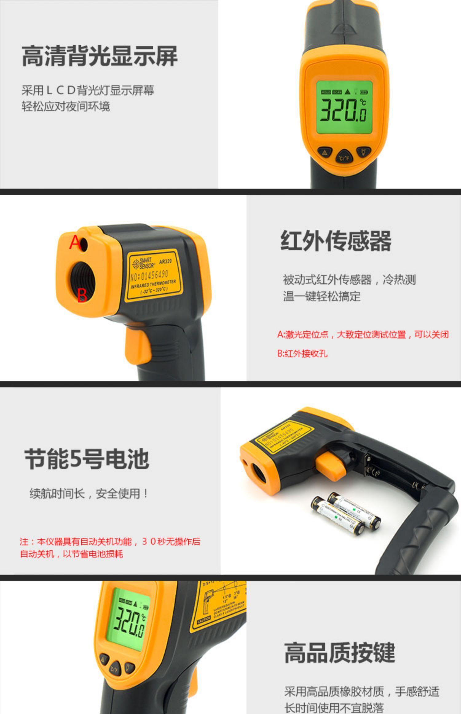 Termómetro Infrarrojo Ar320 Termómetro de Alta Precisión Pistola Temperatura del Aceite Alimentos Digital Sin Contacto