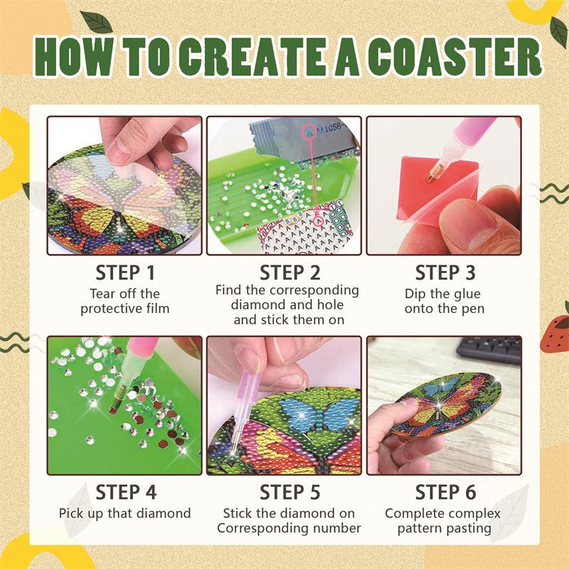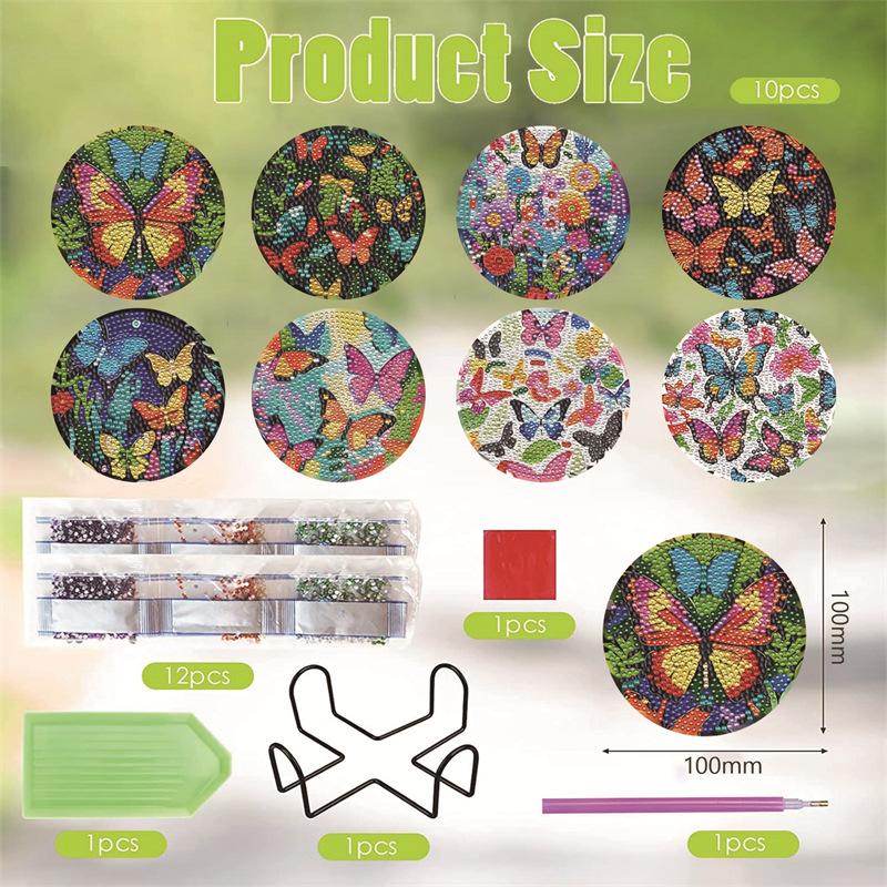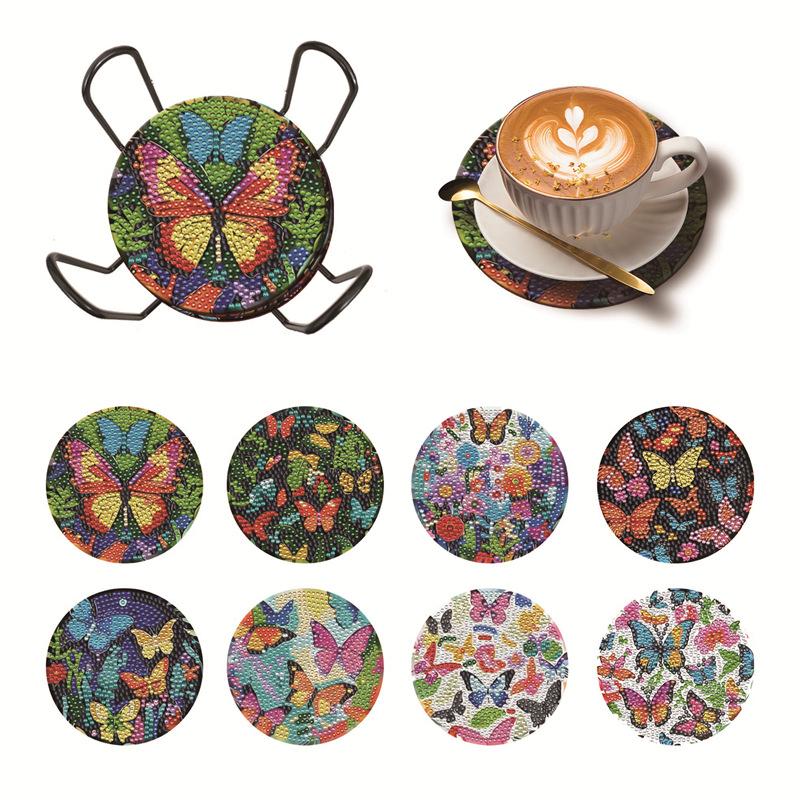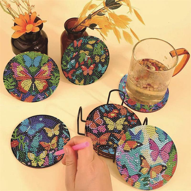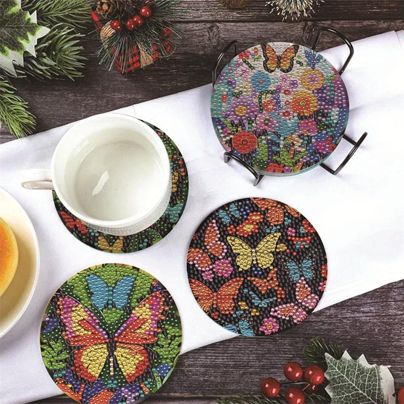 Posavasos de Pintura Diamante Transfronterizo Taladro Completo Taladro de Punto Amazon Tapete Aislante Térmico Tapete para Mesa de Comedor DIY Redondo Mariposa Estante Autotraído