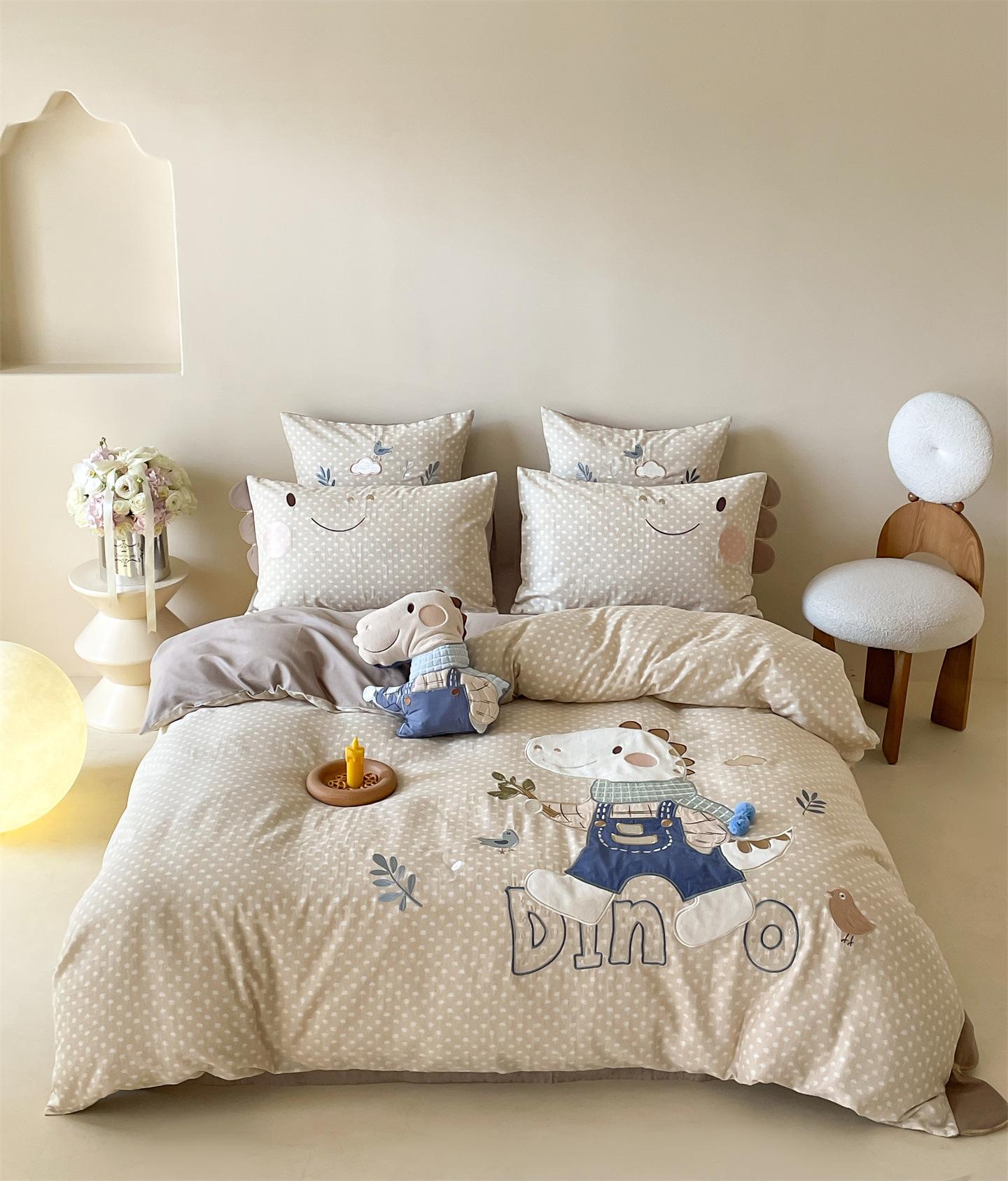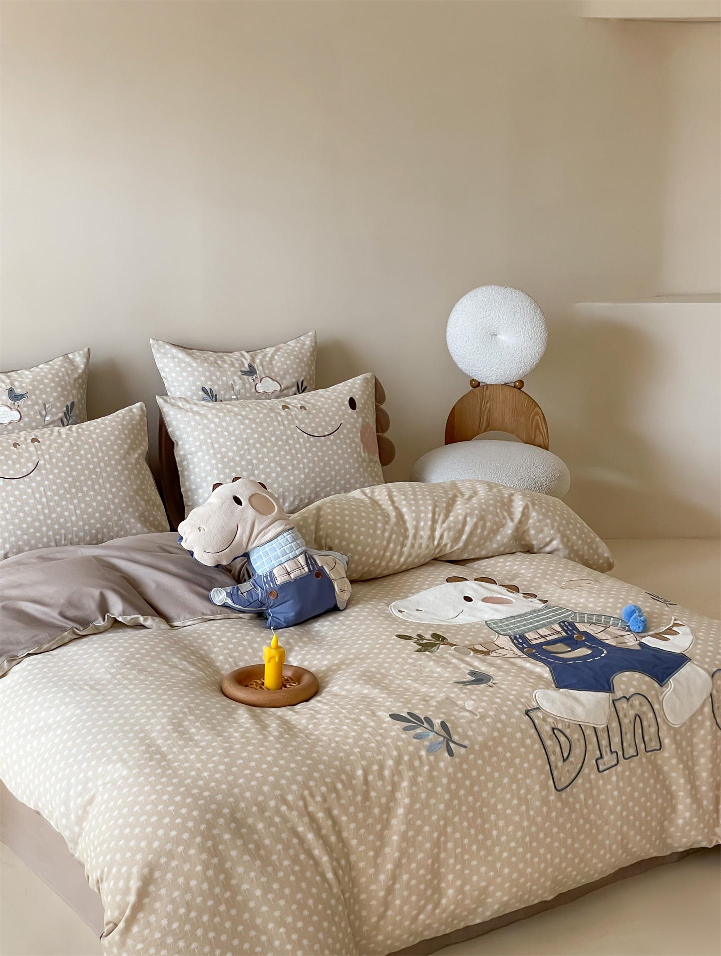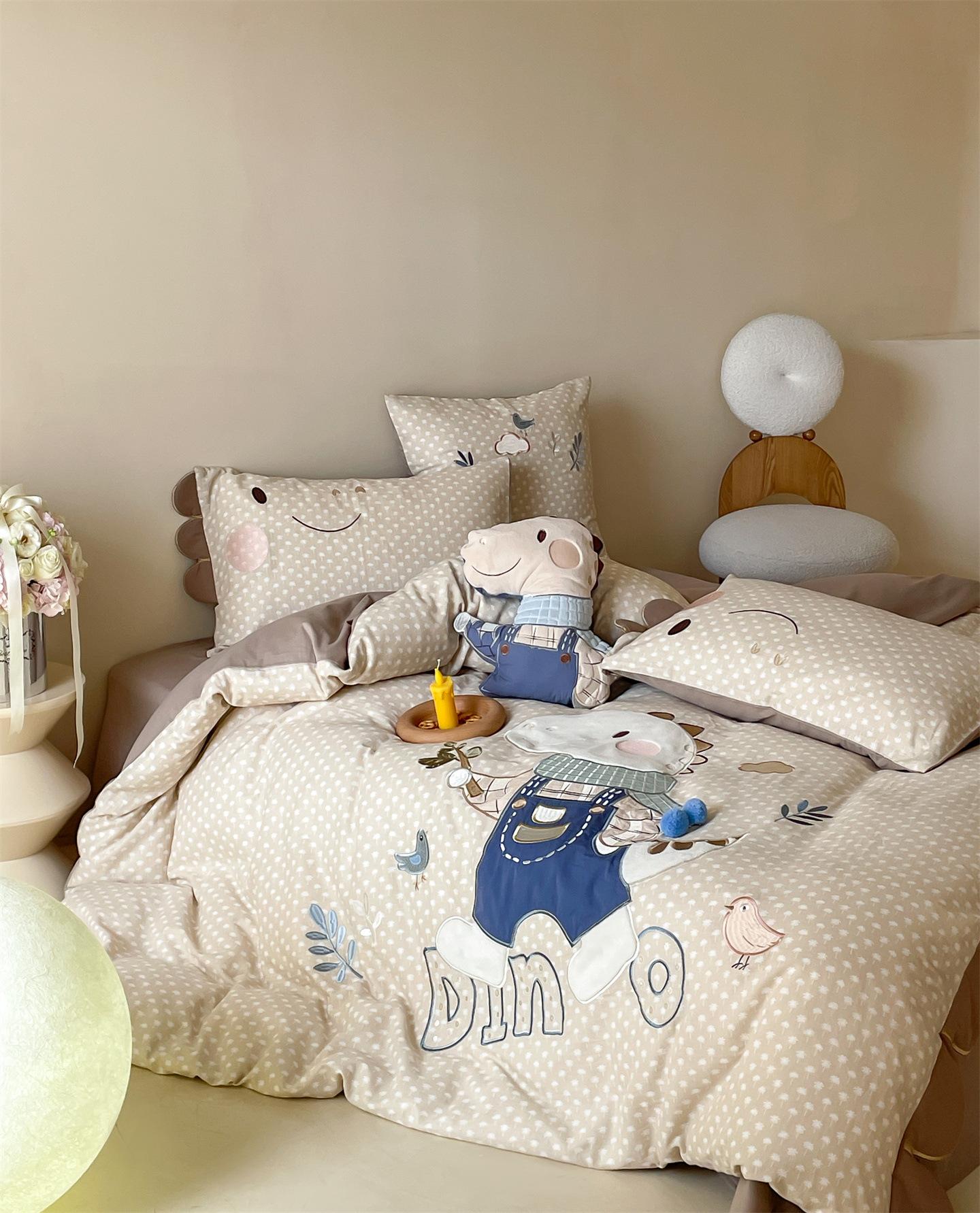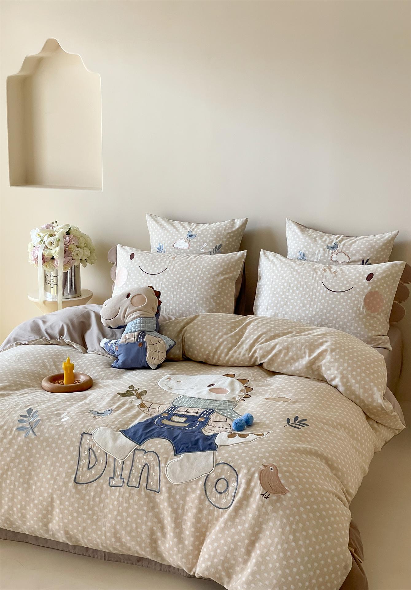 Set de Tres Piezas de Algodón Puro con Dibujos Animados y Diseño Lindo, Grado Materno e Infantil, para Dormitorio Principal, Ropa de Cama de Algodón Puro, Set de Cuatro Piezas, Sábana Encimera, Funda Nórdica, Ropa de Cama