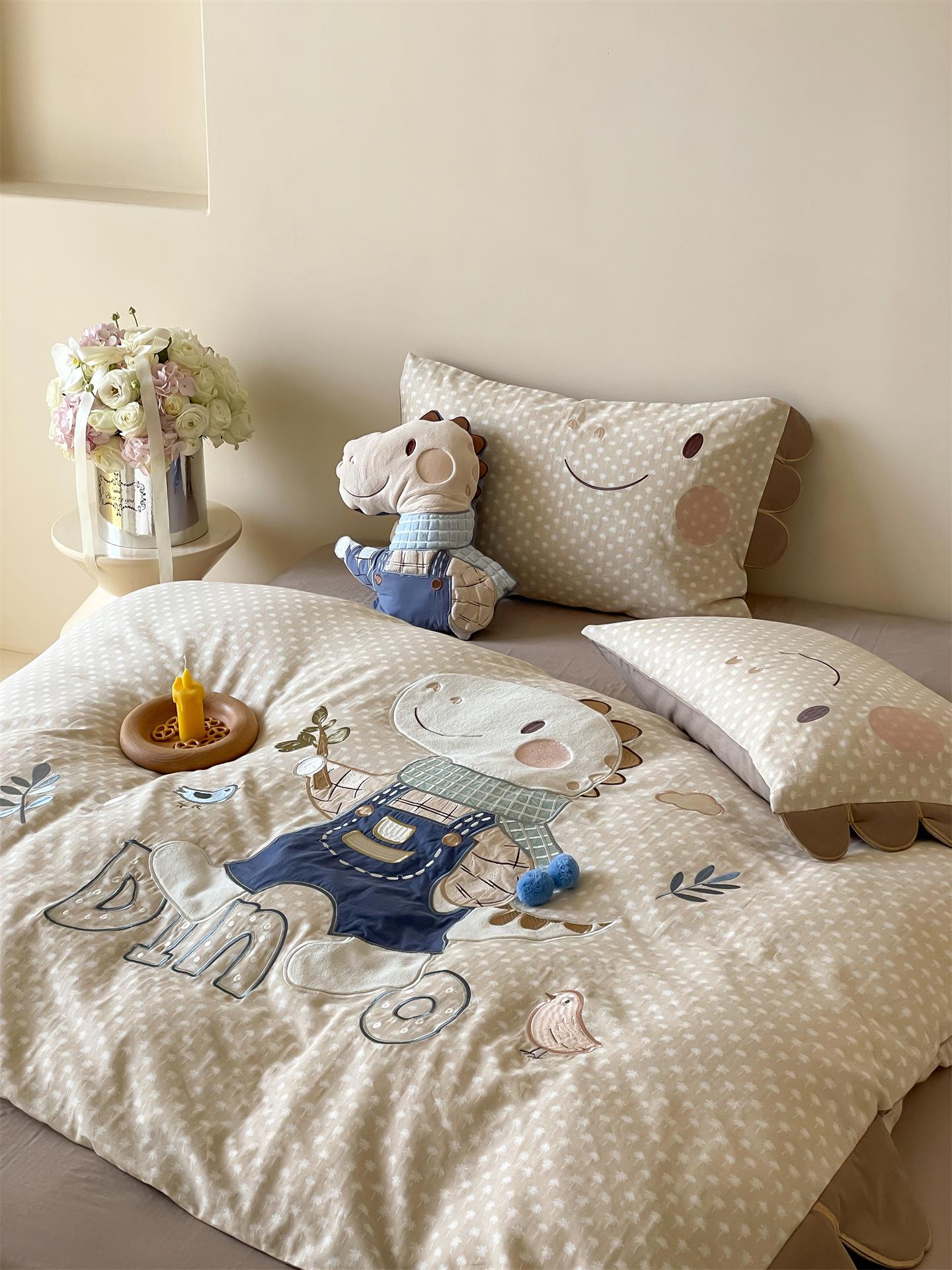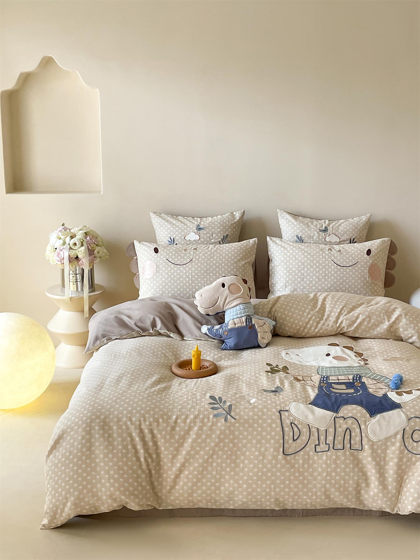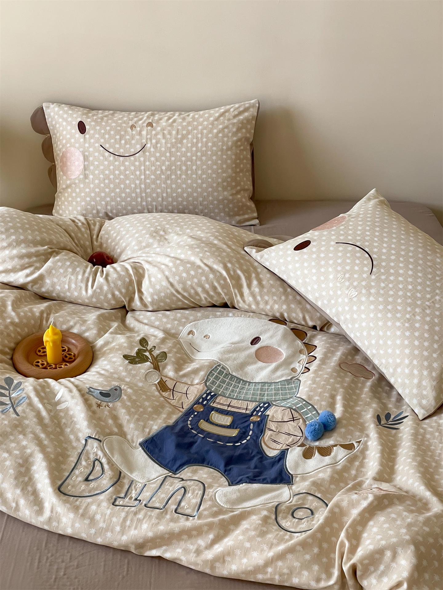Set de Tres Piezas de Algodón Puro con Dibujos Animados y Diseño Lindo, Grado Materno e Infantil, para Dormitorio Principal, Ropa de Cama de Algodón Puro, Set de Cuatro Piezas, Sábana Encimera, Funda Nórdica, Ropa de Cama
