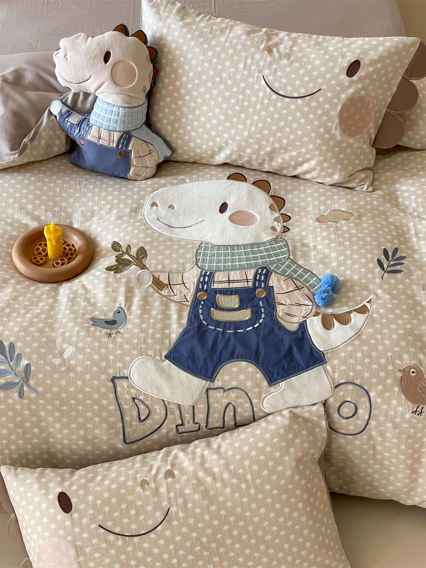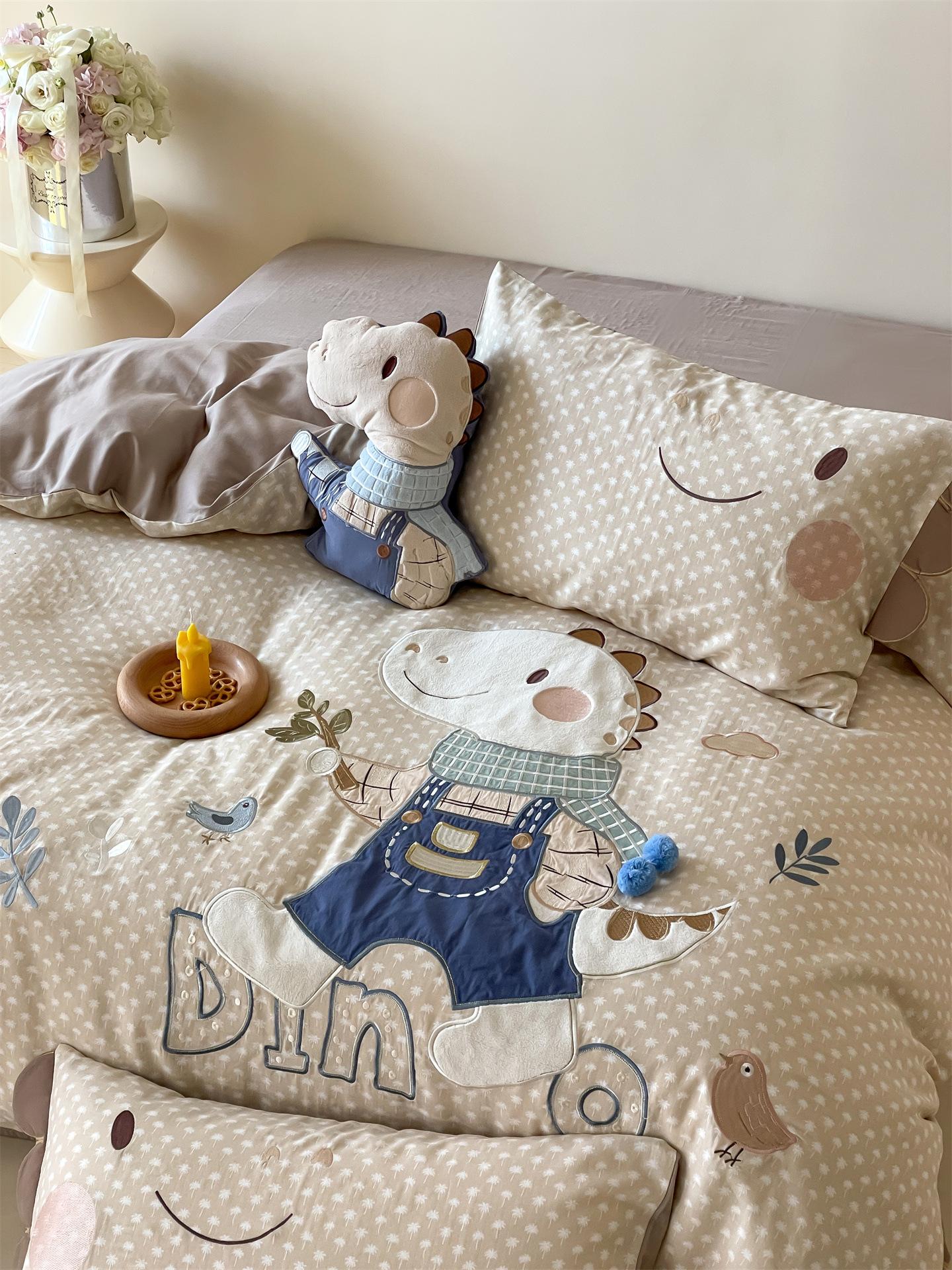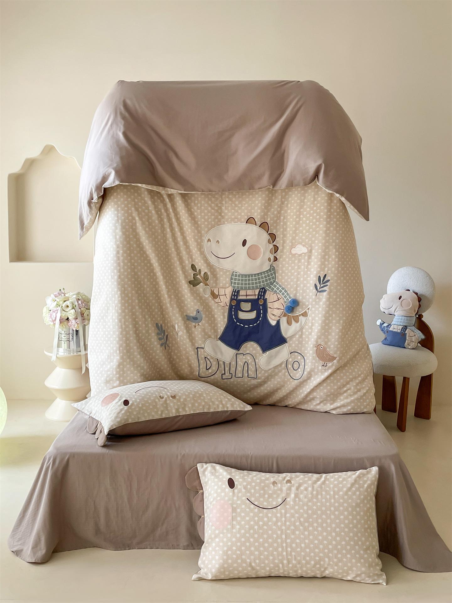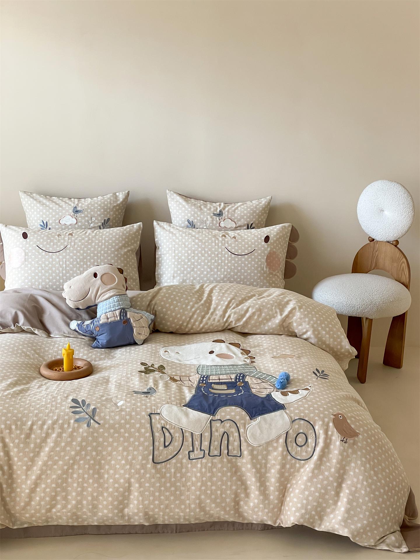 Set de Tres Piezas de Algodón Puro con Dibujos Animados y Diseño Lindo, Grado Materno e Infantil, para Dormitorio Principal, Ropa de Cama de Algodón Puro, Set de Cuatro Piezas, Sábana Encimera, Funda Nórdica, Ropa de Cama