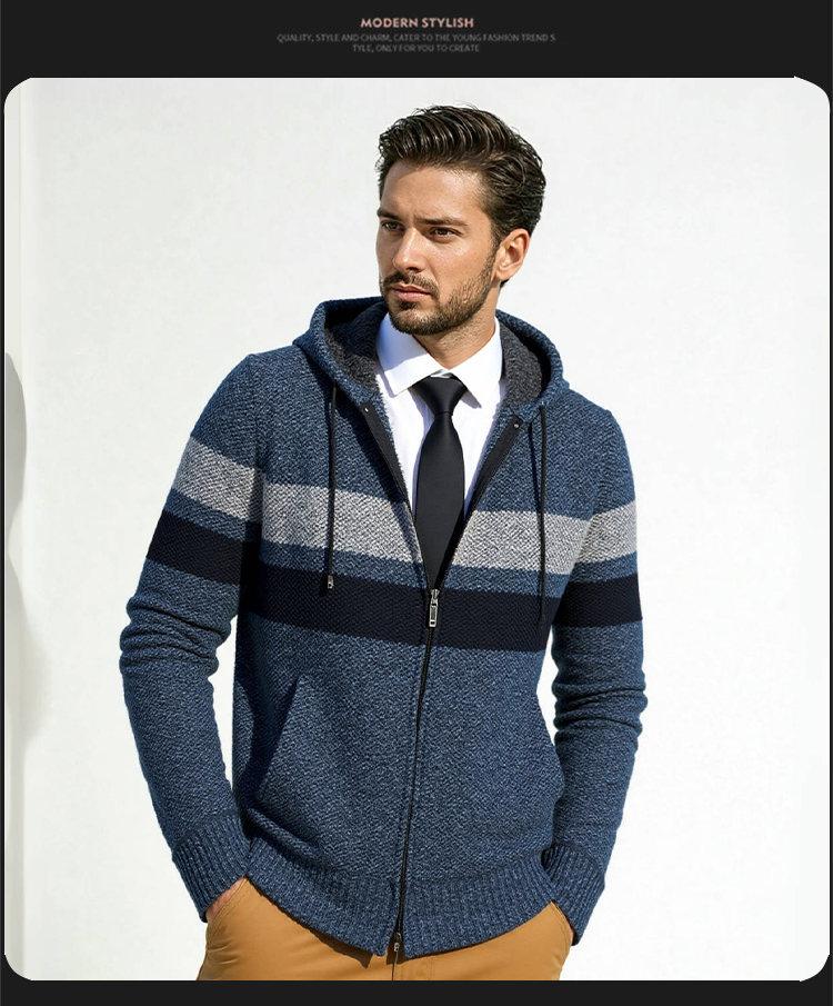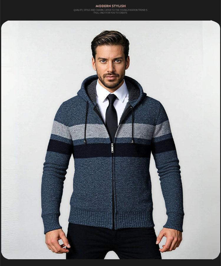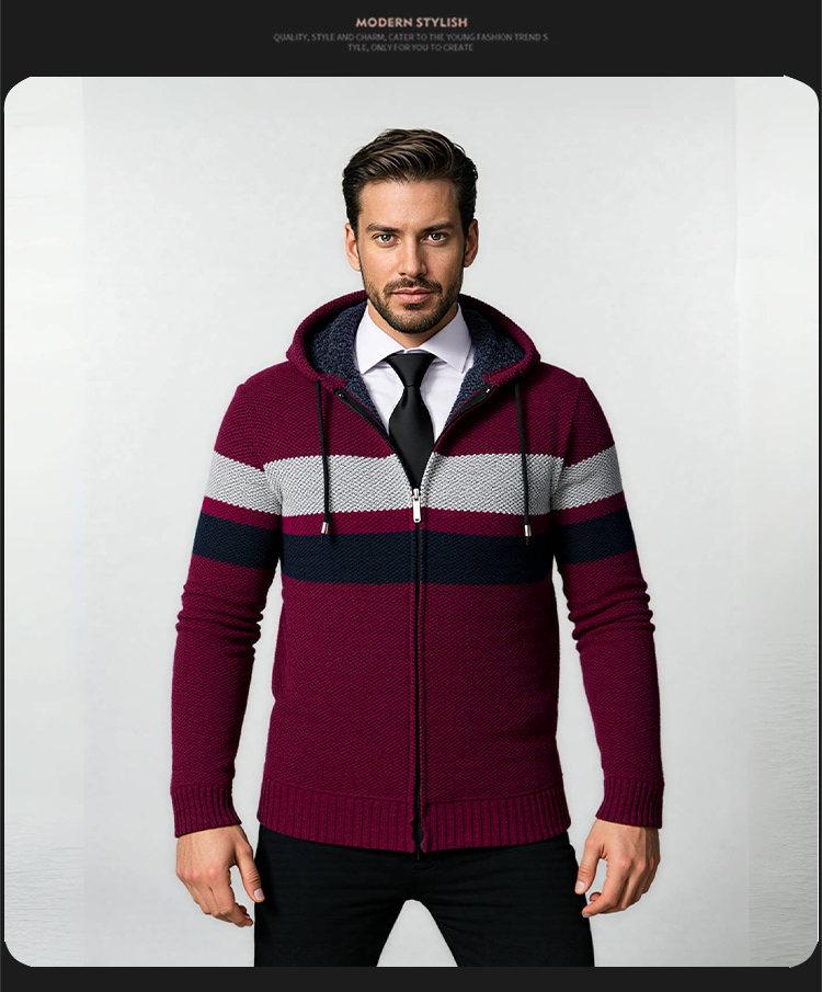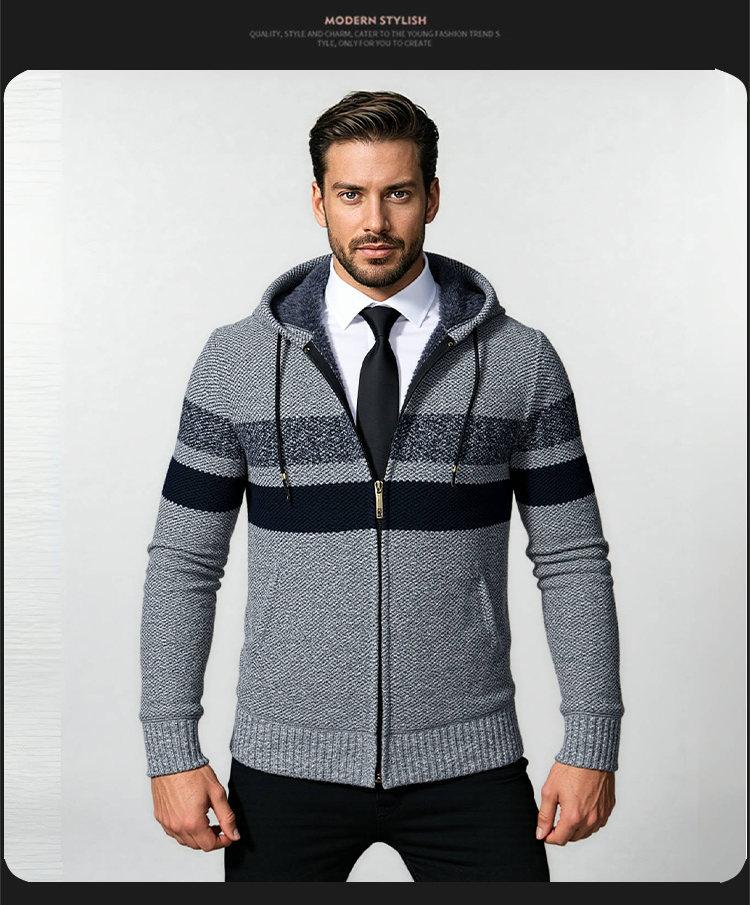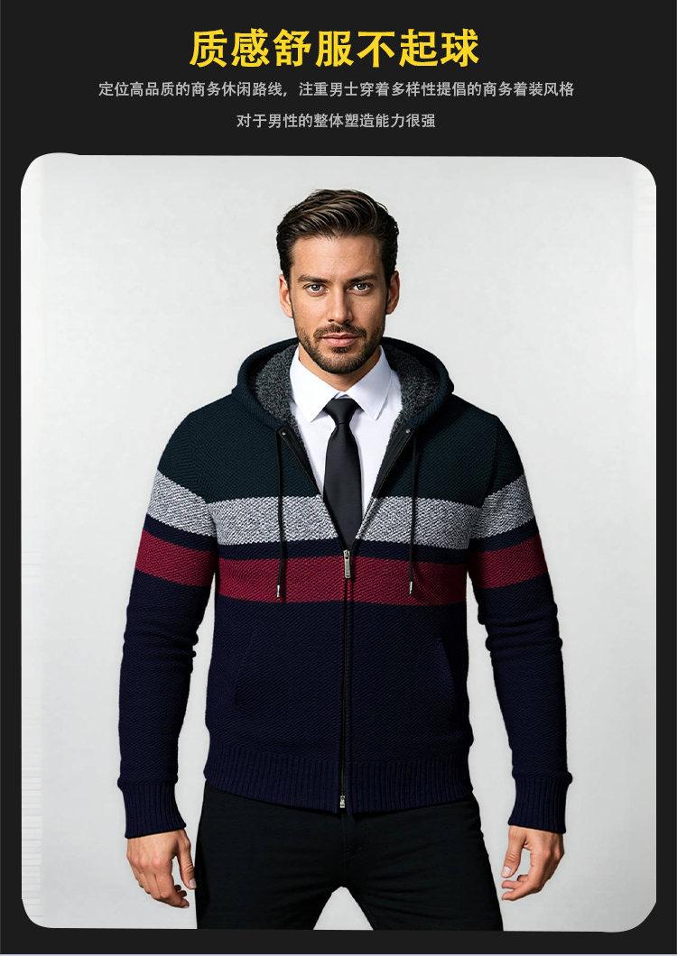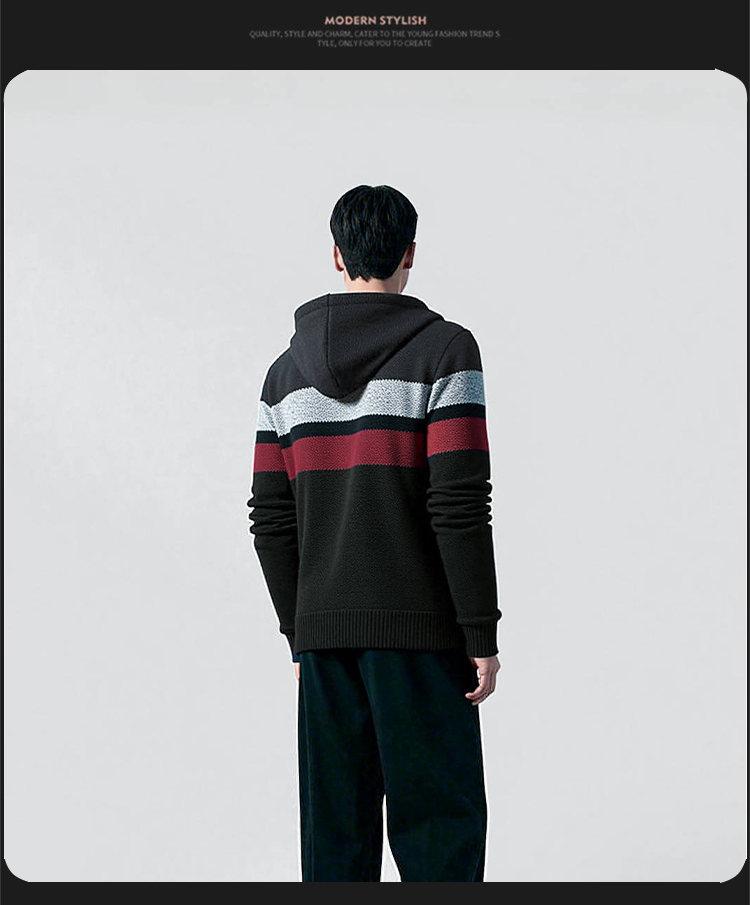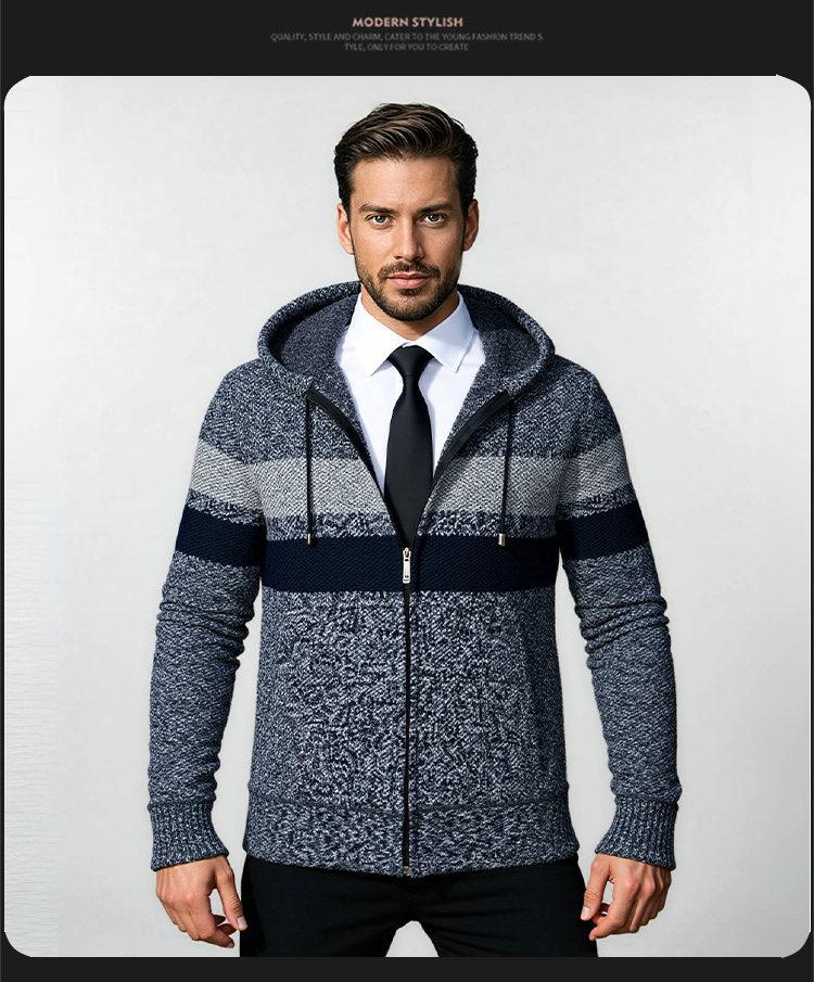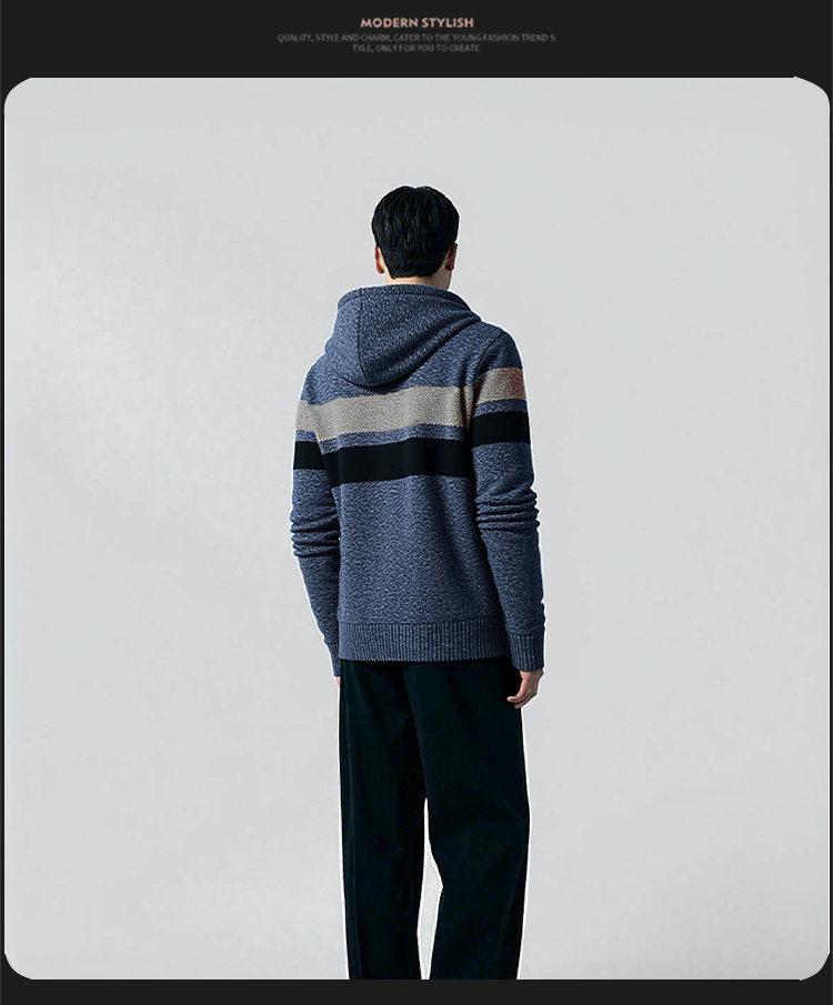 Cárdigan de punto a rayas holgado de comercio exterior nuevo 2025, tendencia de moda juvenil, top de moda con capucha para hombre