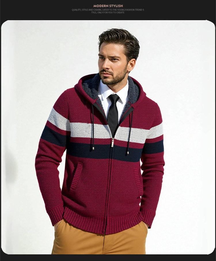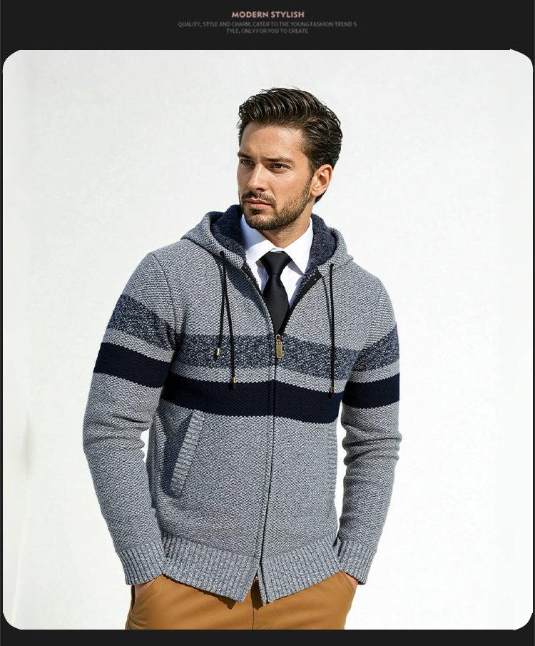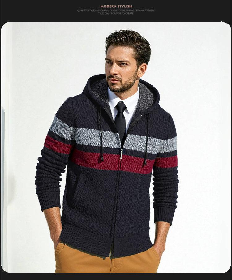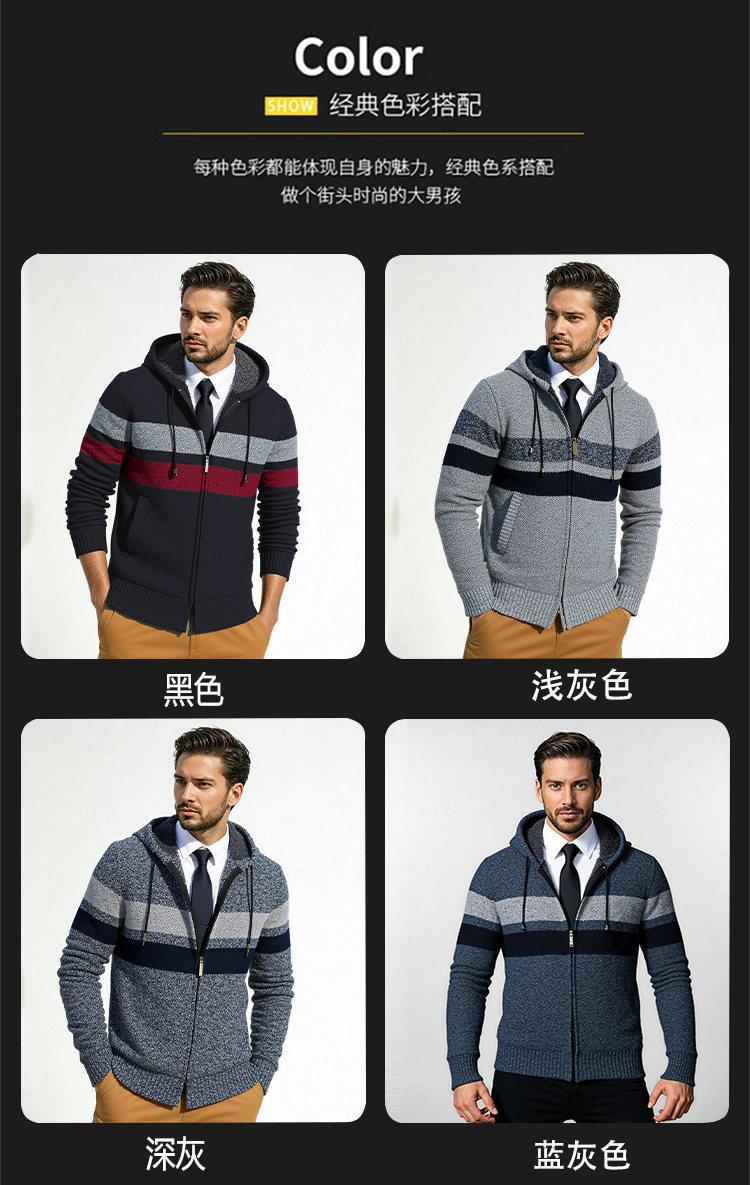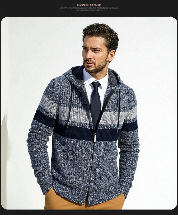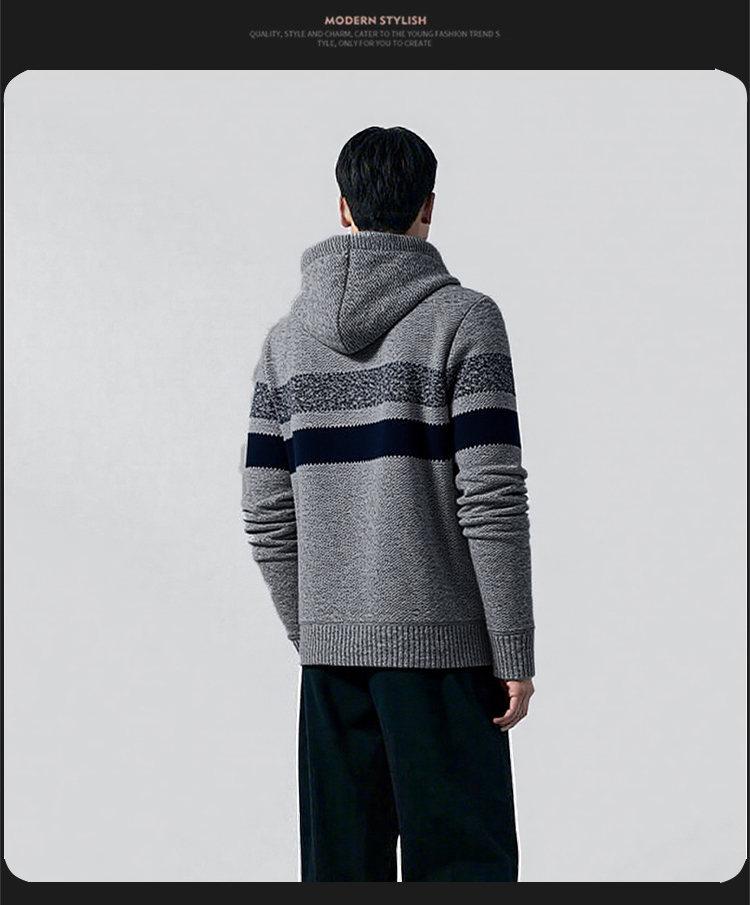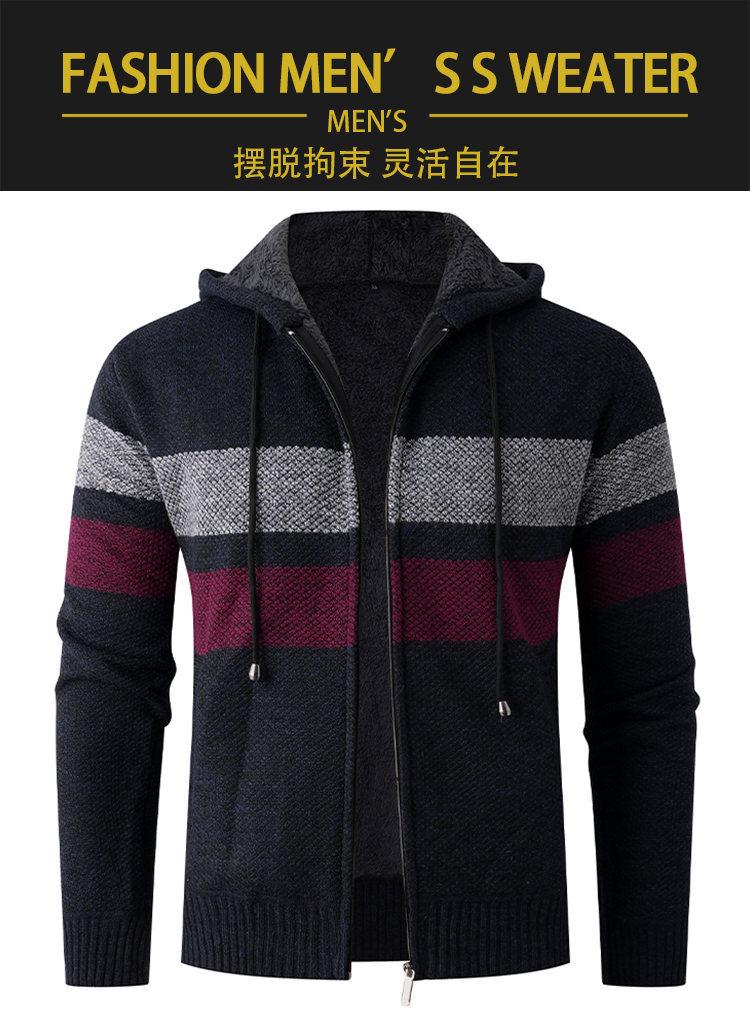 Cárdigan de punto a rayas holgado de comercio exterior nuevo 2025, tendencia de moda juvenil, top de moda con capucha para hombre