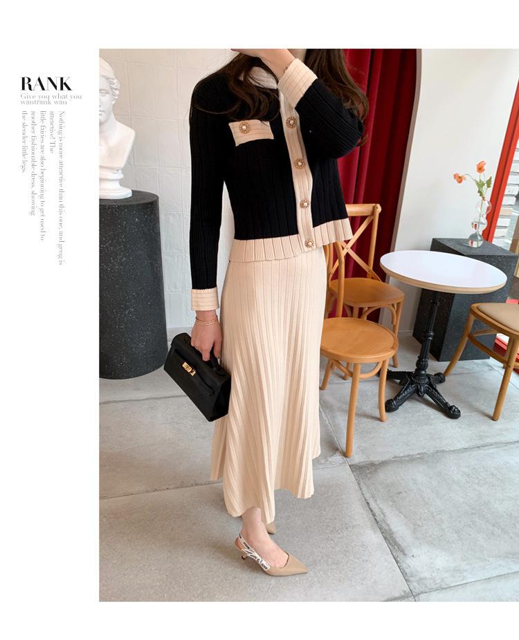 Traje transfronterizo 2020 Otoño/Invierno Nuevo Suéter de Manga Larga para Dama Cintura Ajustada Adelgazante Falda de Punto Conjunto de Dos Piezas para Mujer