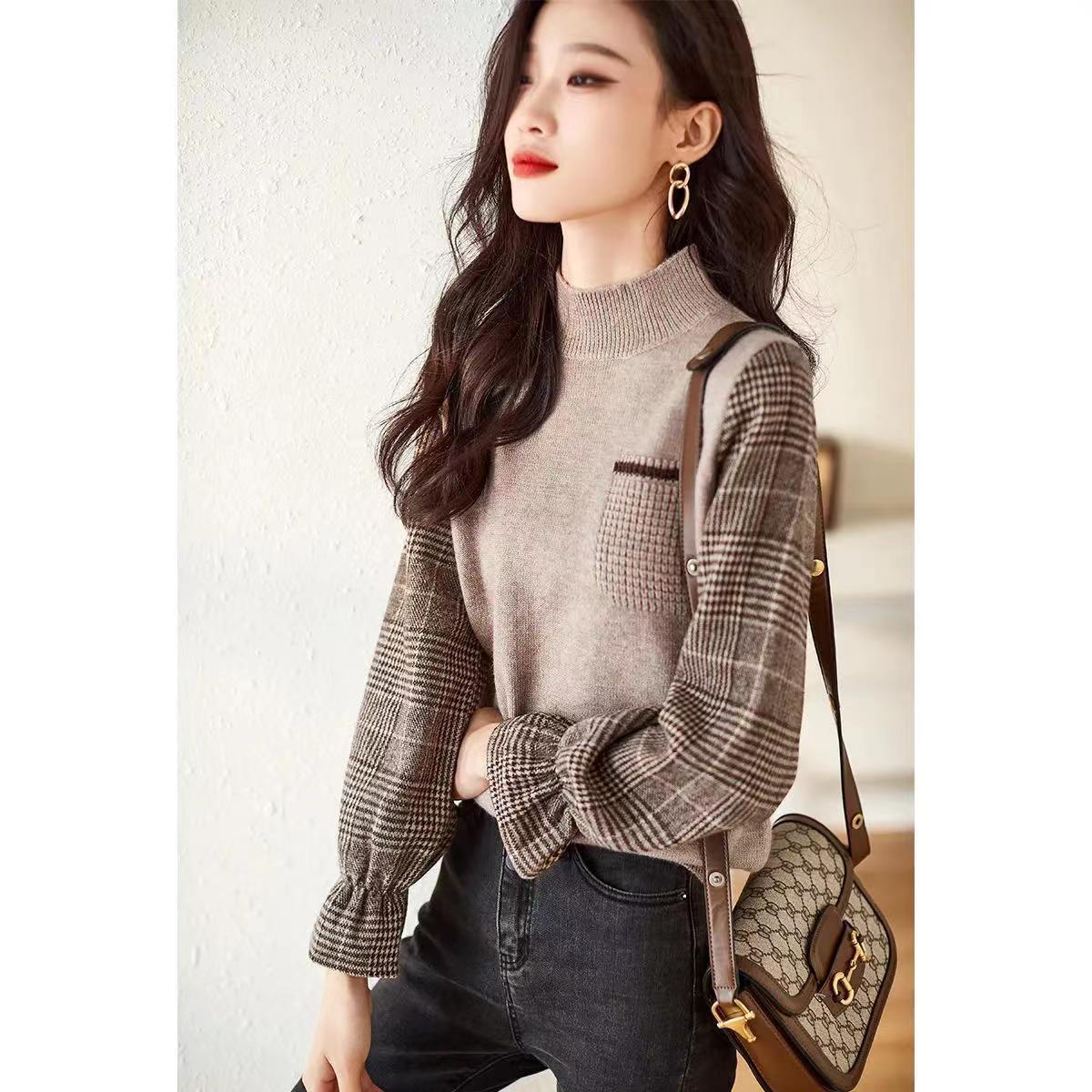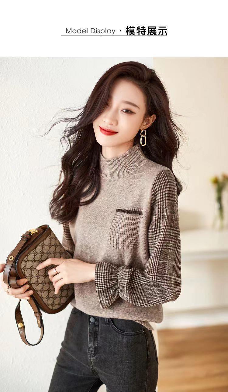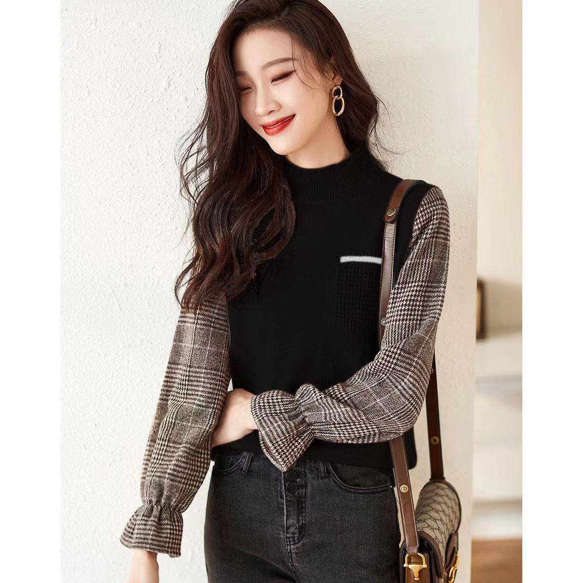 Suéter de punto de cuello alto para mujer 2023 otoño e invierno nuevo costura falso de dos piezas adelgazante combinable holgado camiseta base top