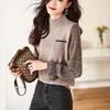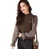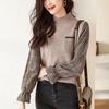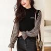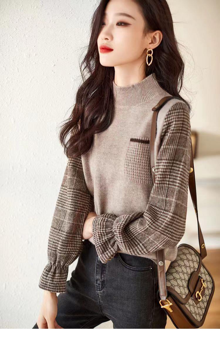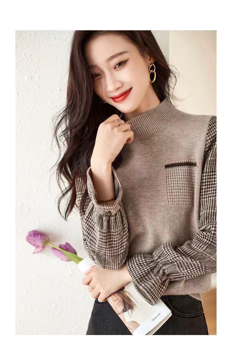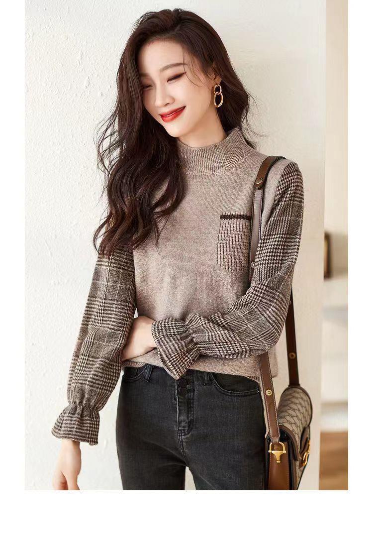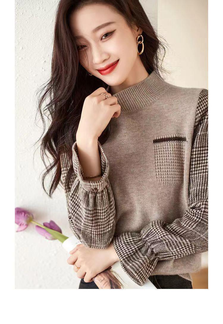 Suéter de punto de cuello alto para mujer 2023 otoño e invierno nuevo costura falso de dos piezas adelgazante combinable holgado camiseta base top