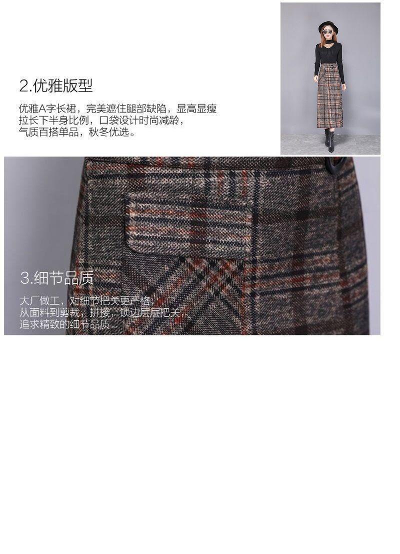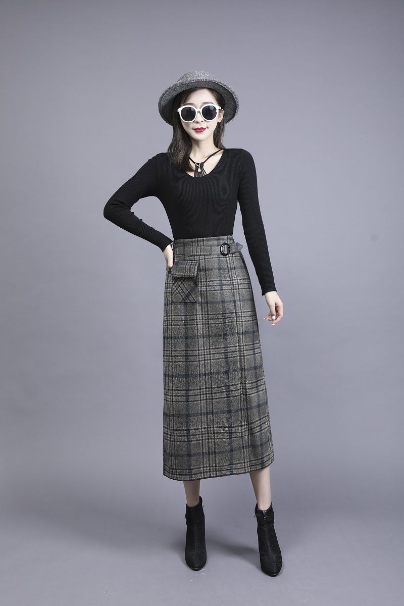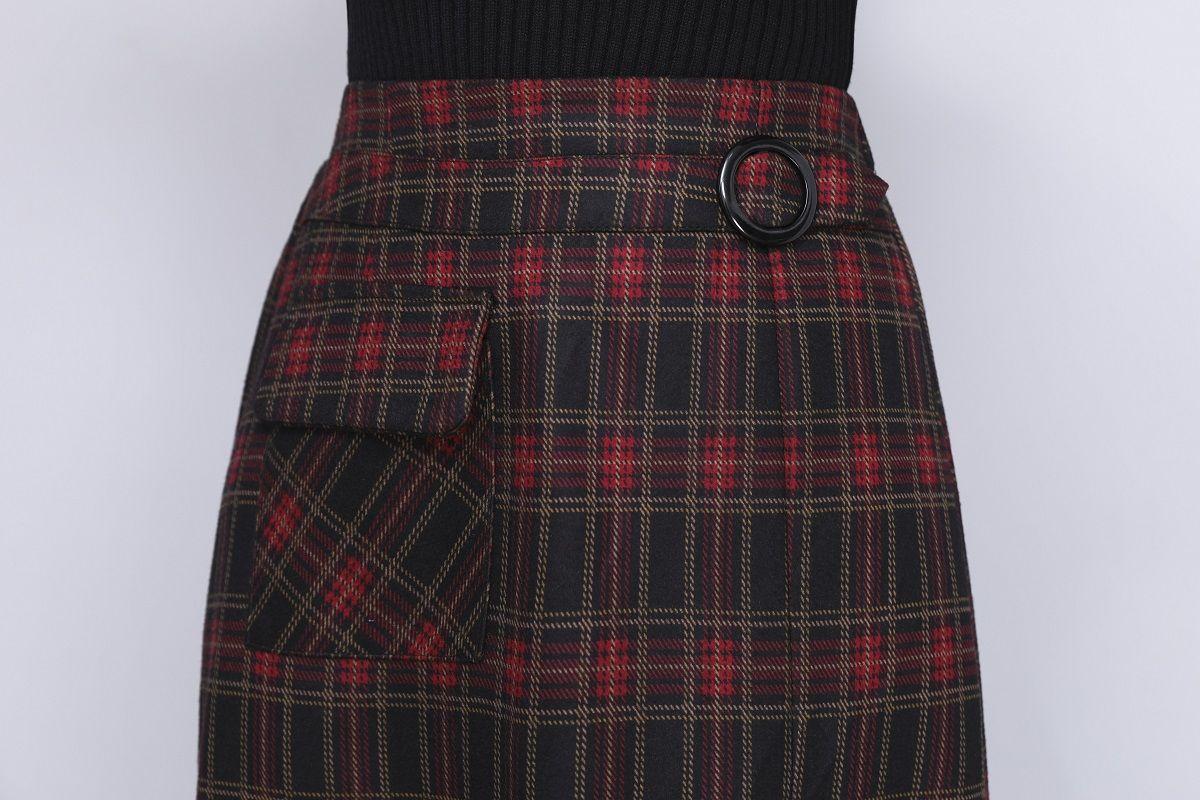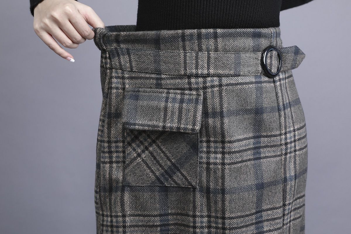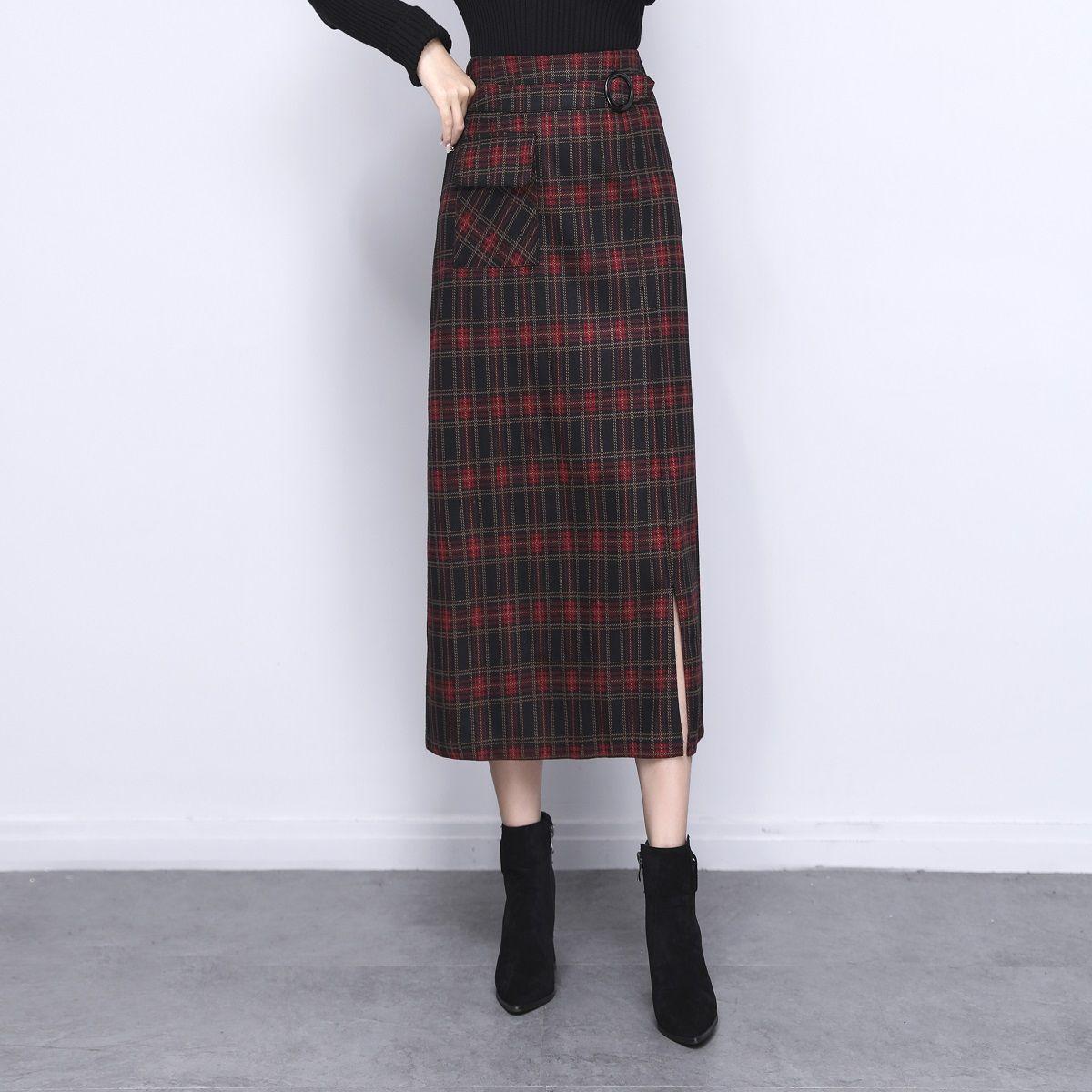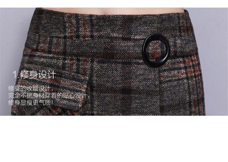 Falda de Lana a Cuadros Otoño e Invierno 2023 Nueva Falda Línea A Cadera Falda de Invierno Falda Paraguas de Largo Medio para Mujer Falda con Abertura