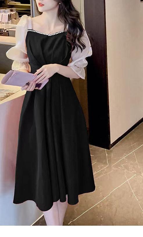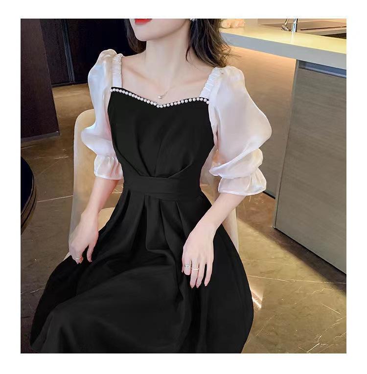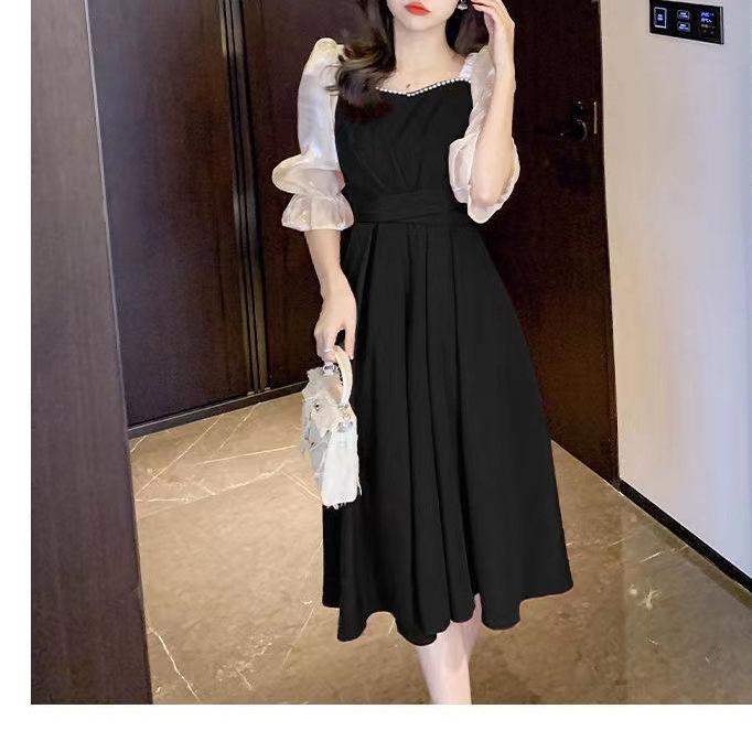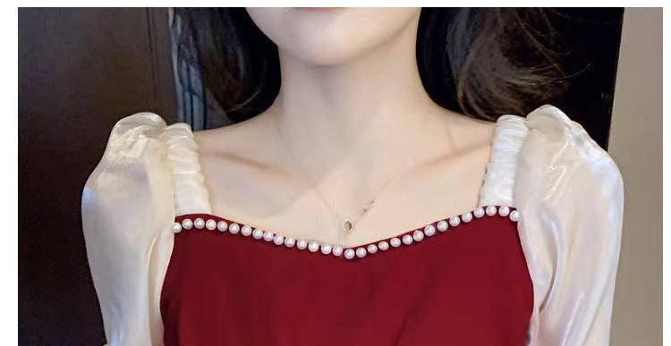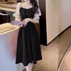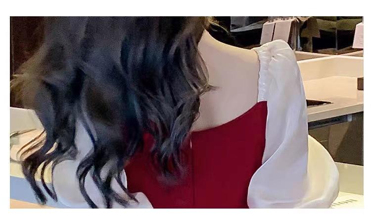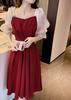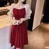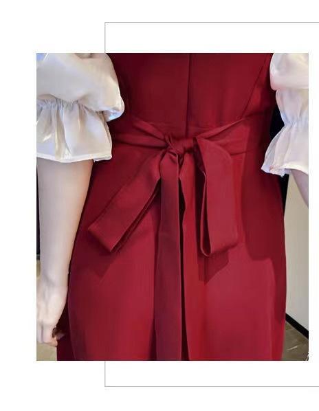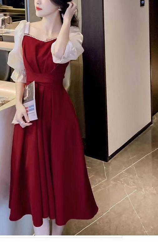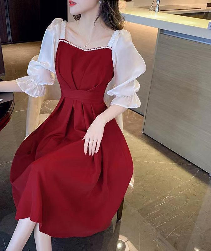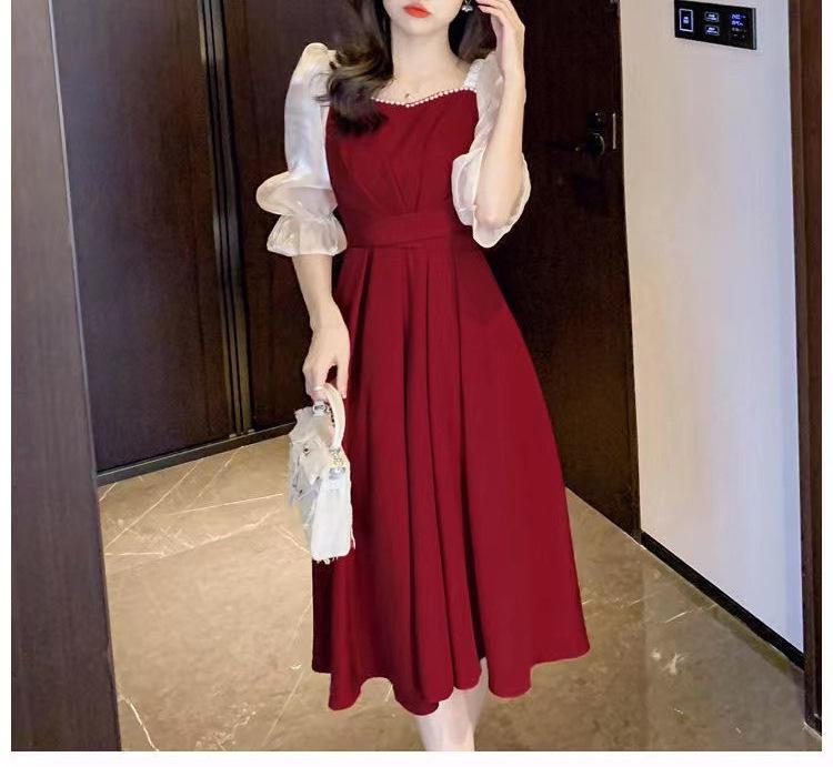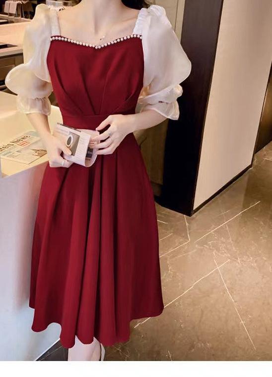 Vestido rojo dulce estilo francés para mujer manga media 2024 Verano nuevo adelgazante de cintura vestido midi falda línea A