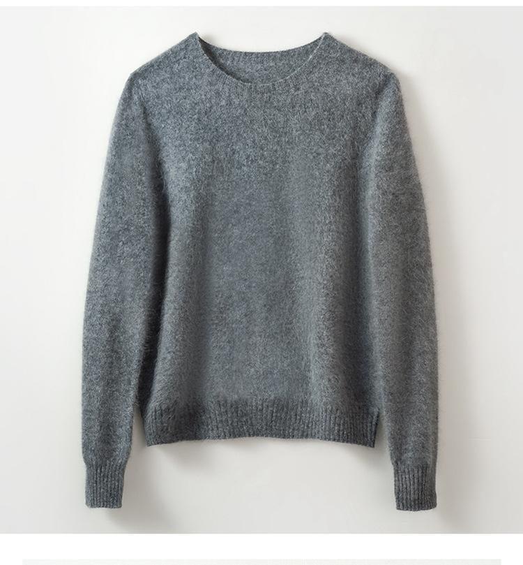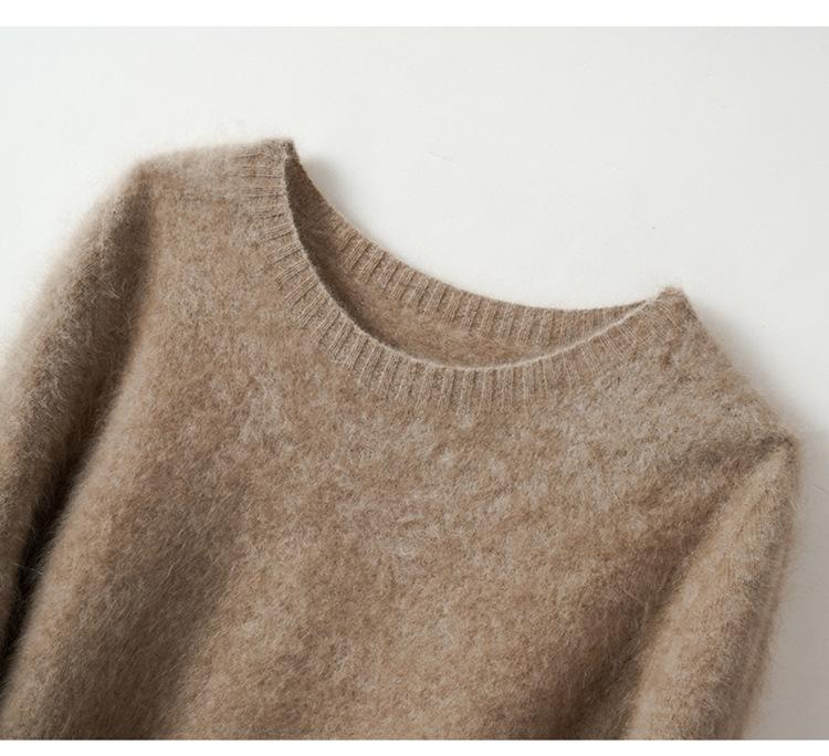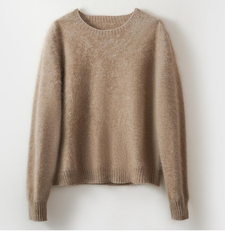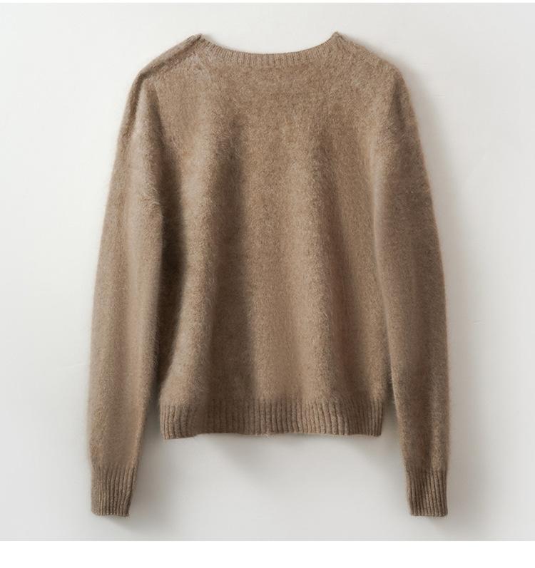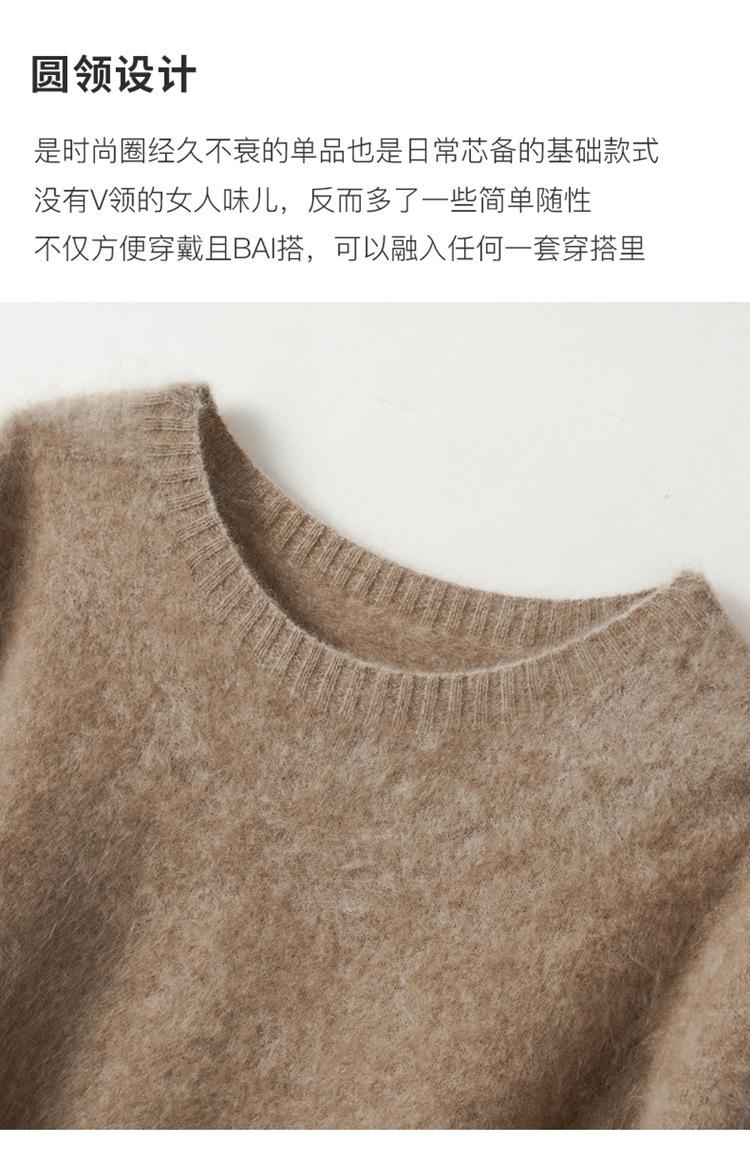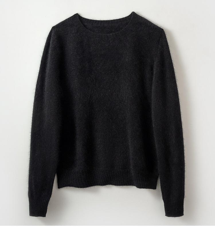 CHAO suave Nuo cepillado 100% cachemira pura para mujer suéter de cuello redondo color sólido otoño e invierno Nuevo top de fondo de punto
