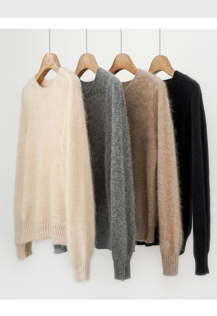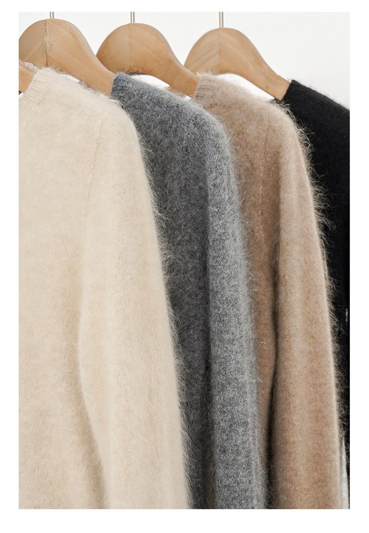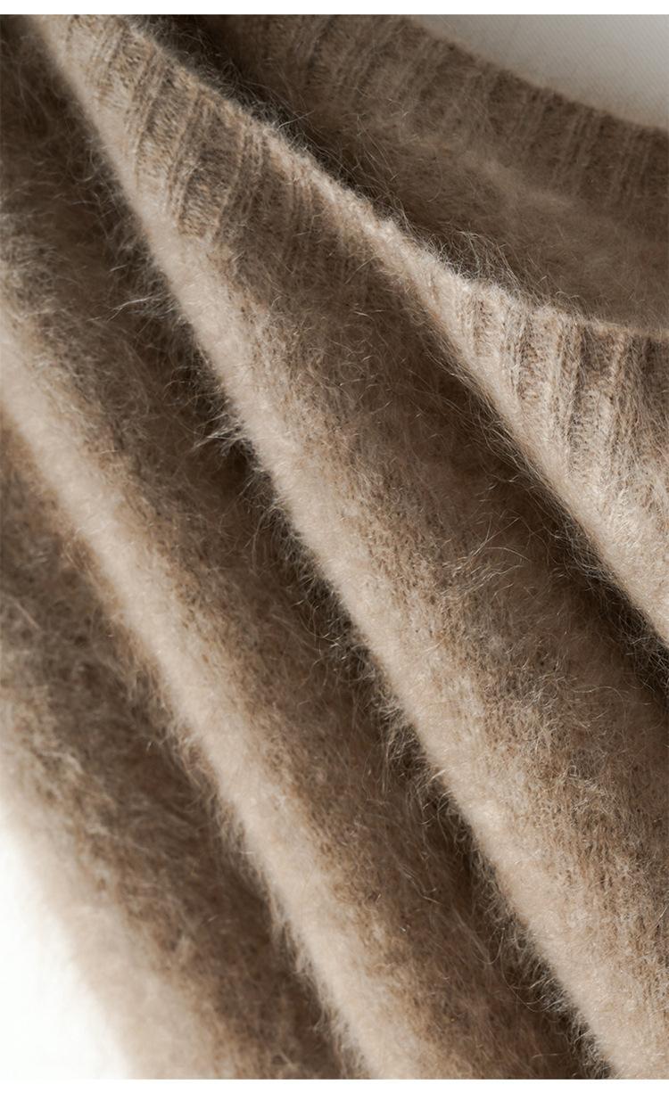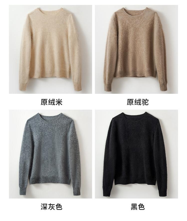 CHAO suave Nuo cepillado 100% cachemira pura para mujer suéter de cuello redondo color sólido otoño e invierno Nuevo top de fondo de punto