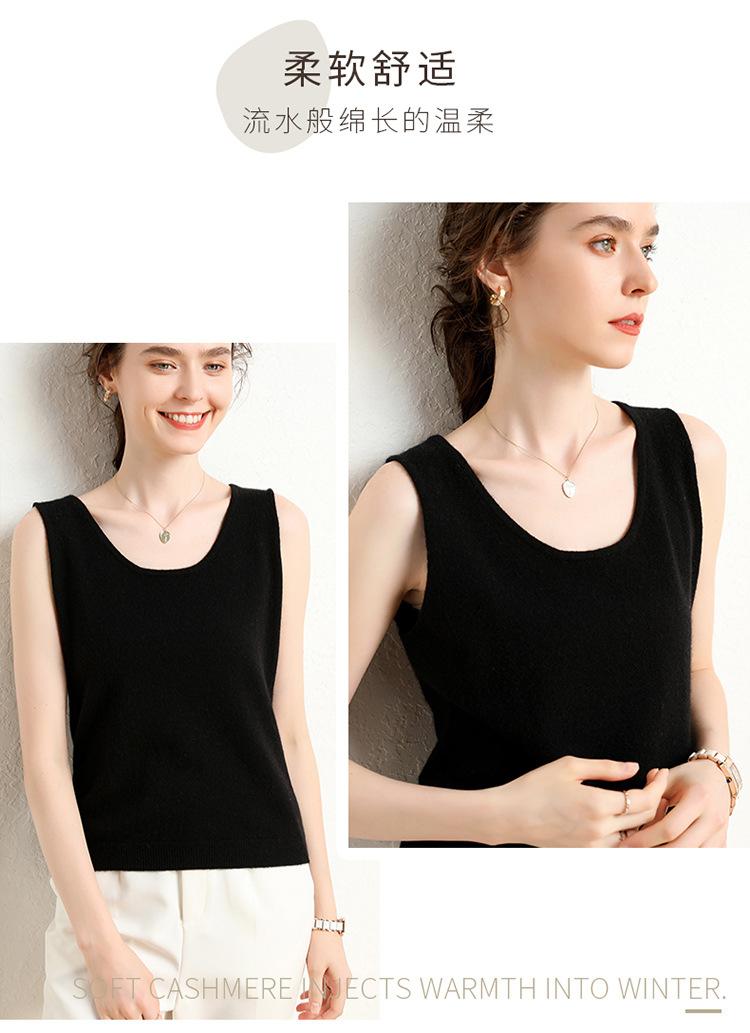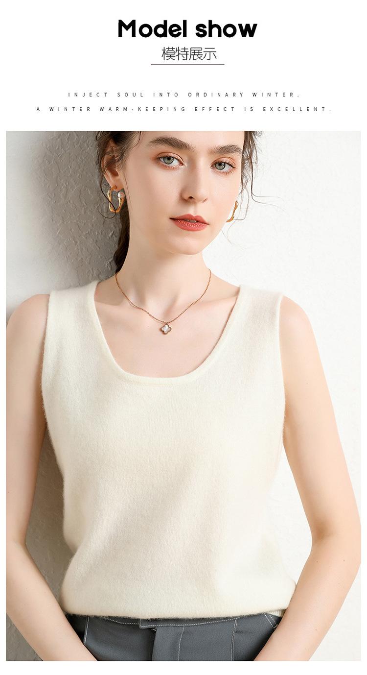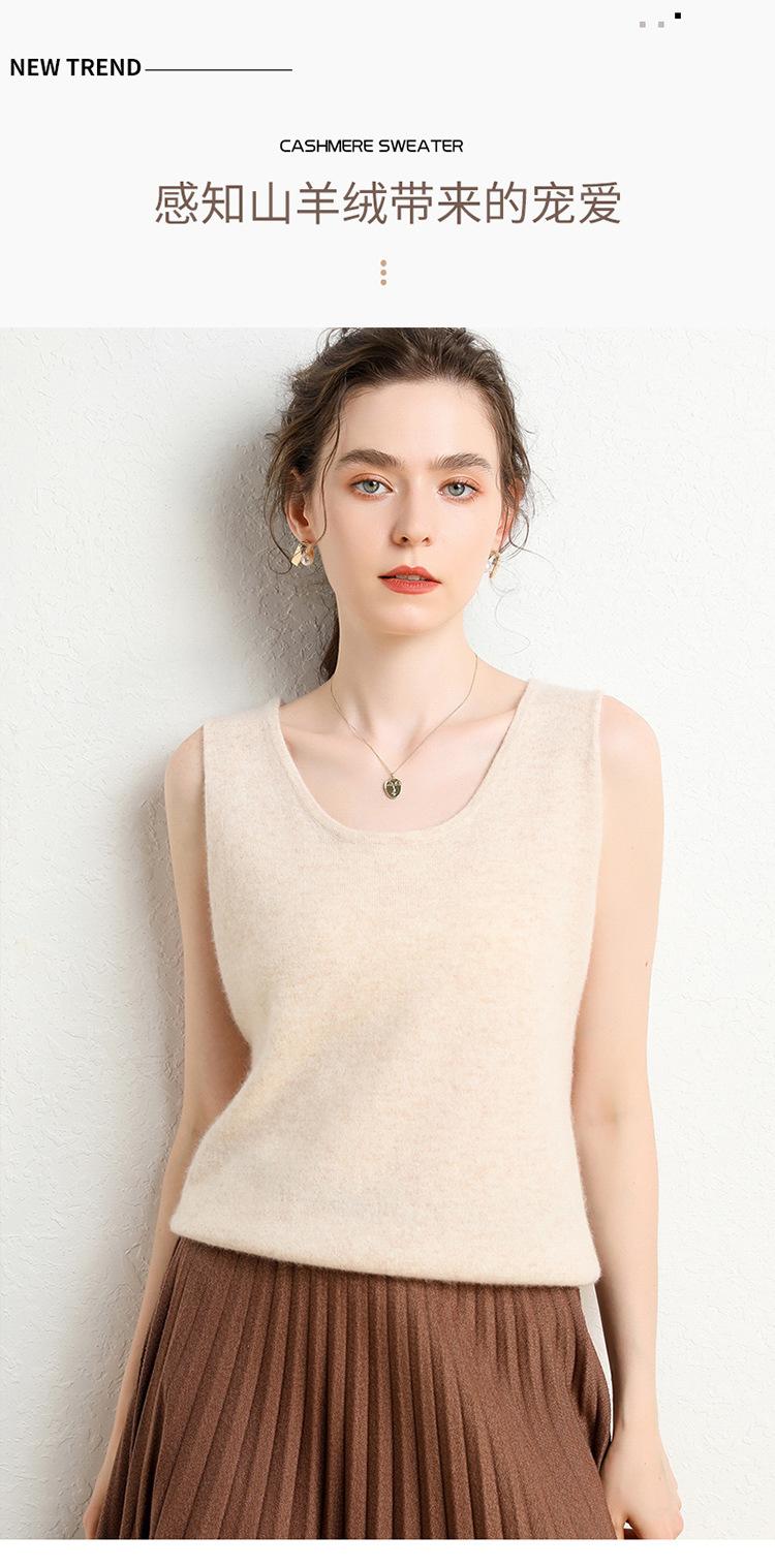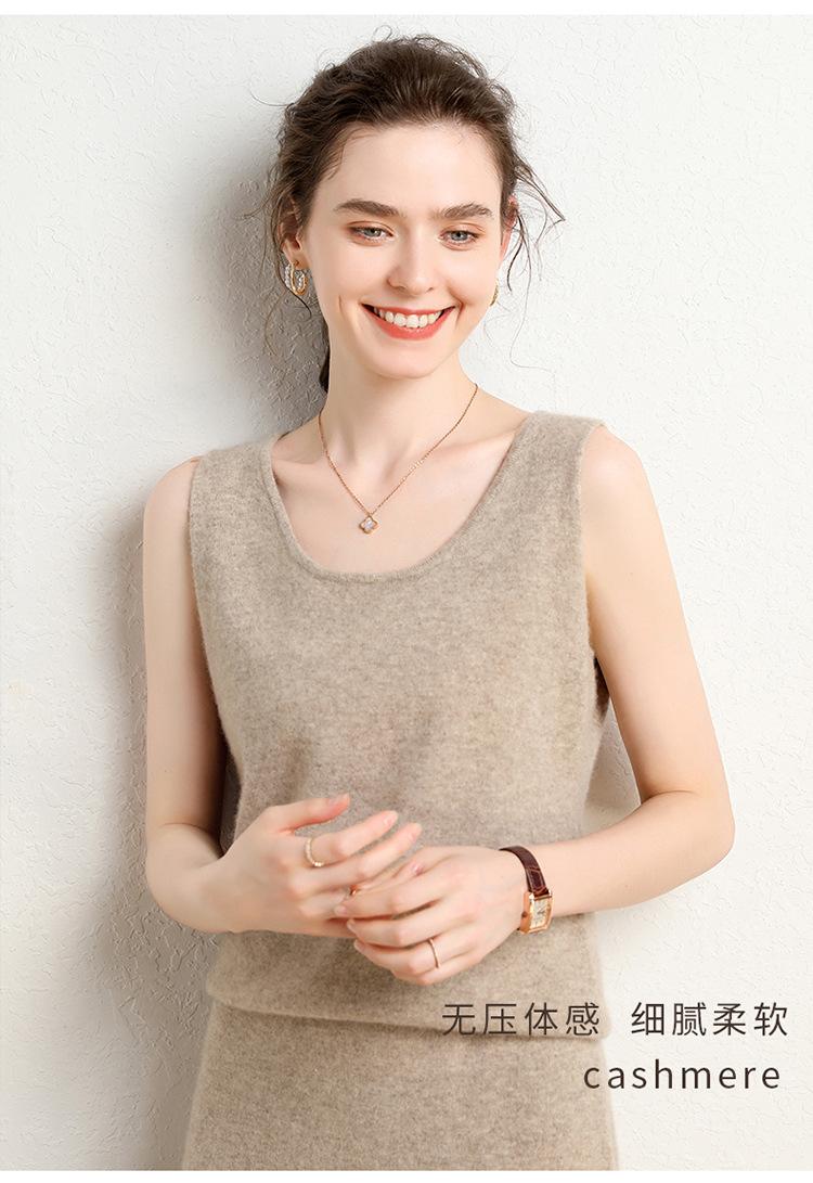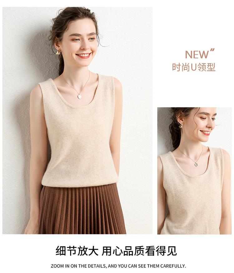 Otoño e invierno 2023 Nuevo suéter de cachemira para mujer color sólido cuello en U chaleco de punto de cachemira con tirantes base delgada y cálida