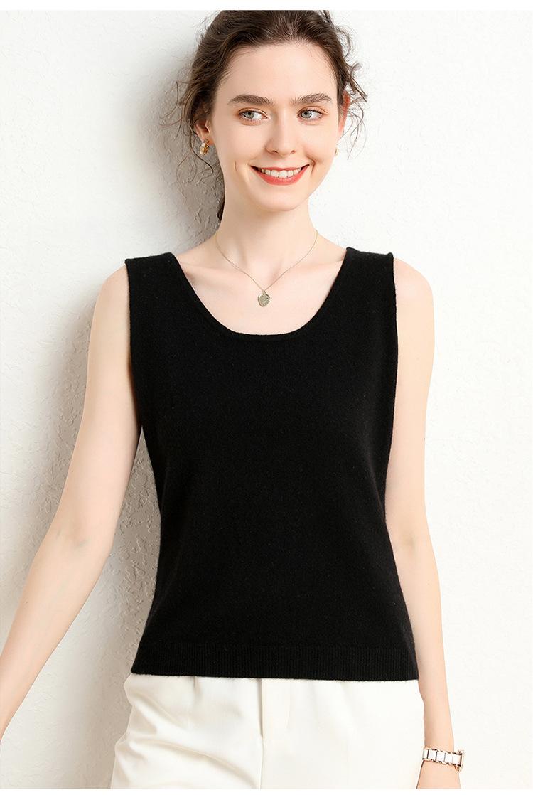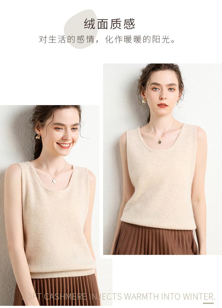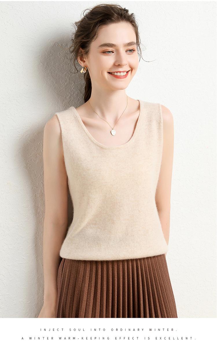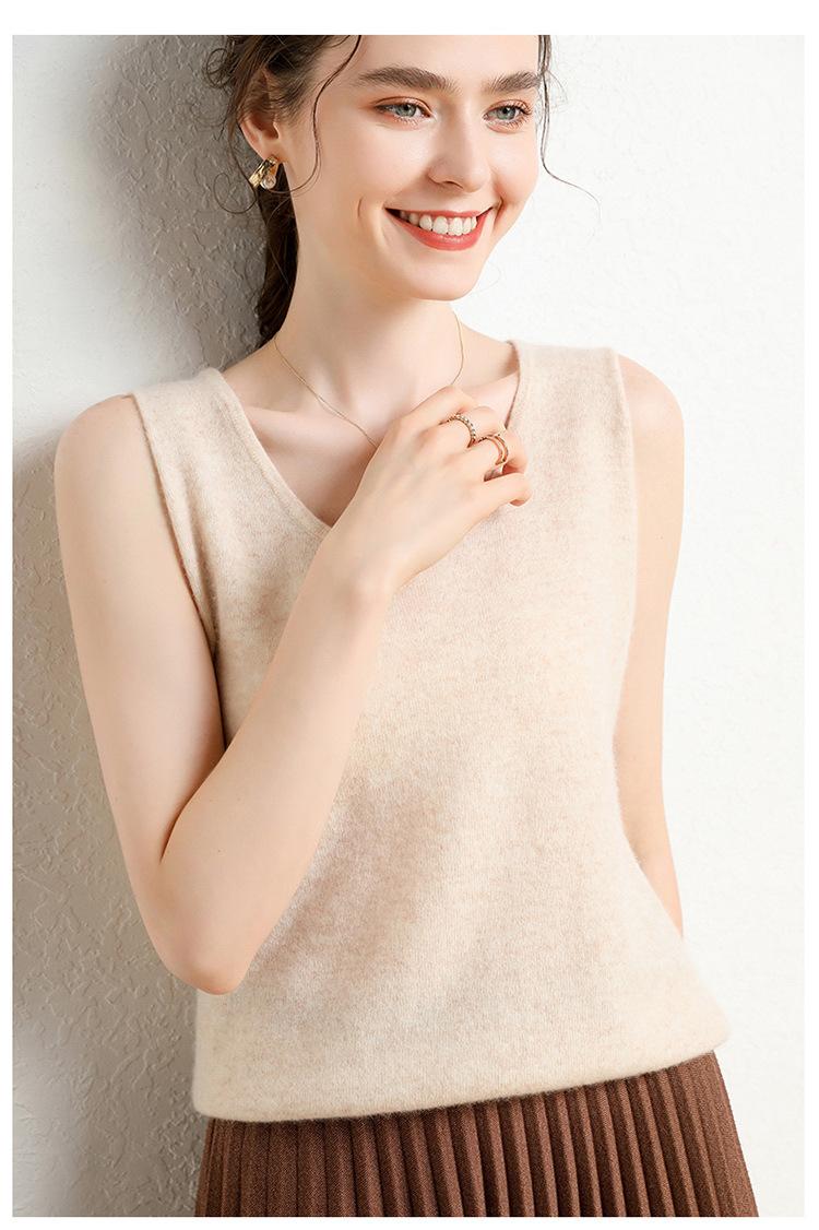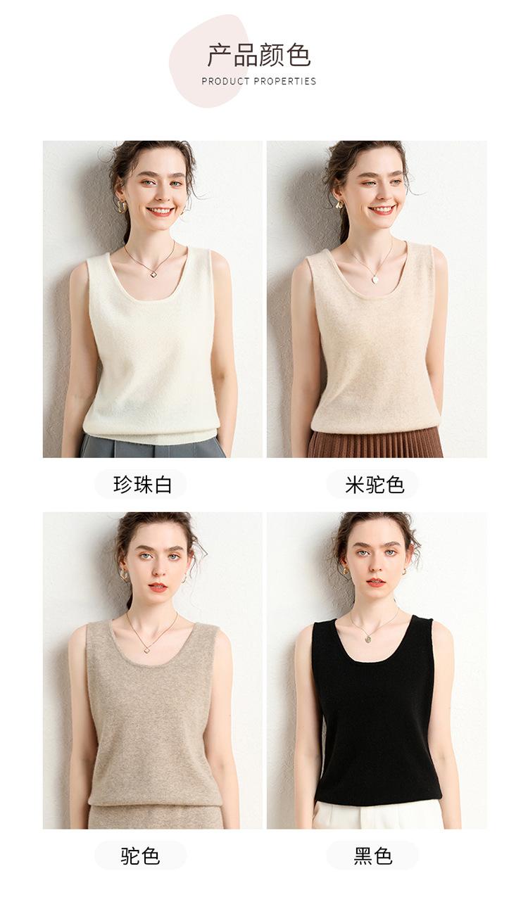 Otoño e invierno 2023 Nuevo suéter de cachemira para mujer color sólido cuello en U chaleco de punto de cachemira con tirantes base delgada y cálida