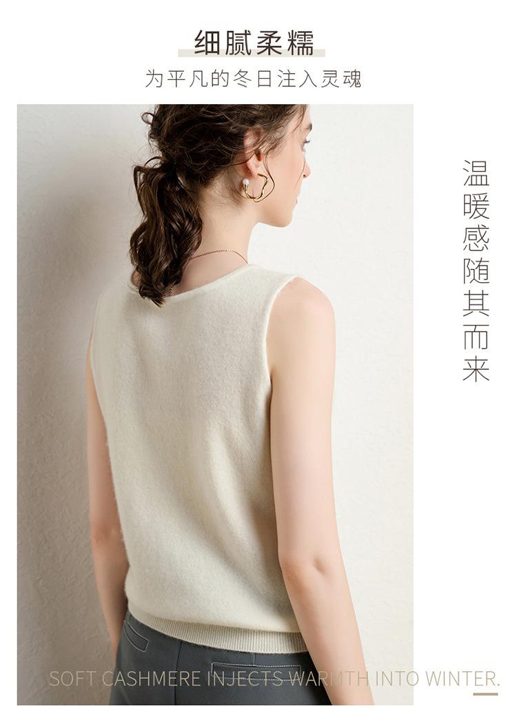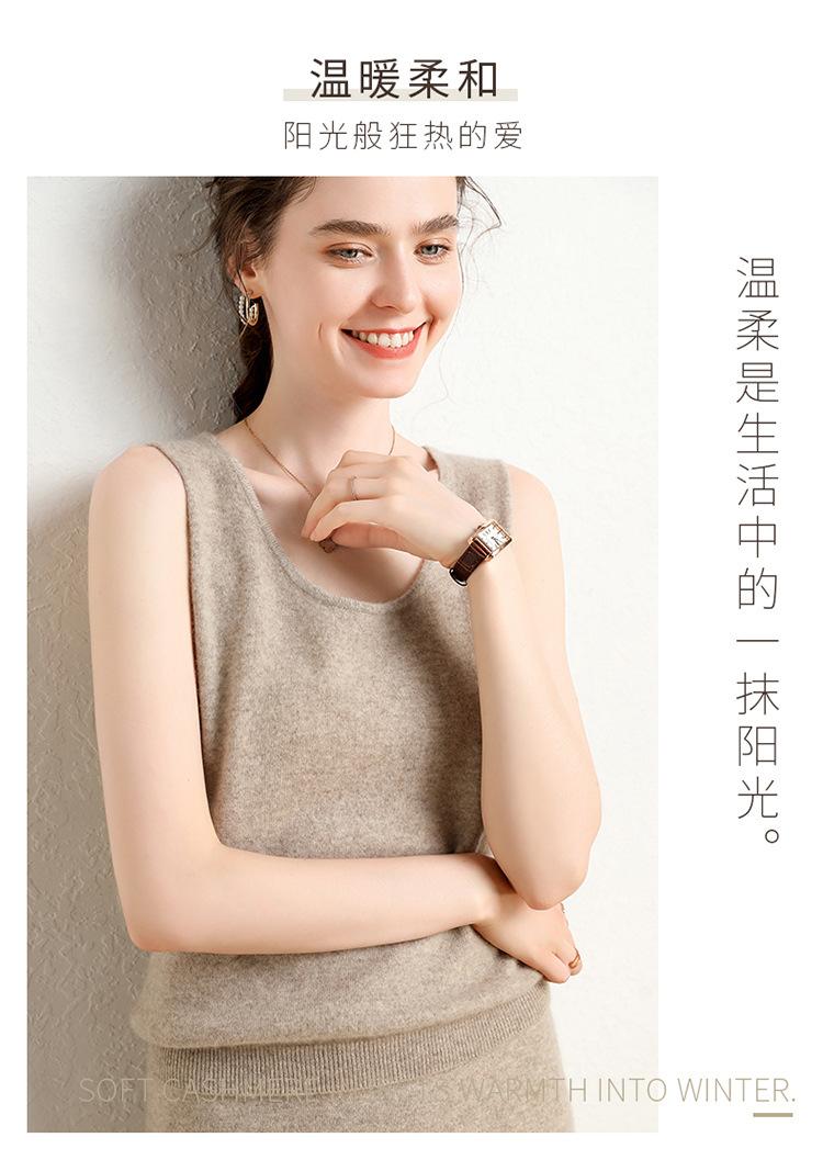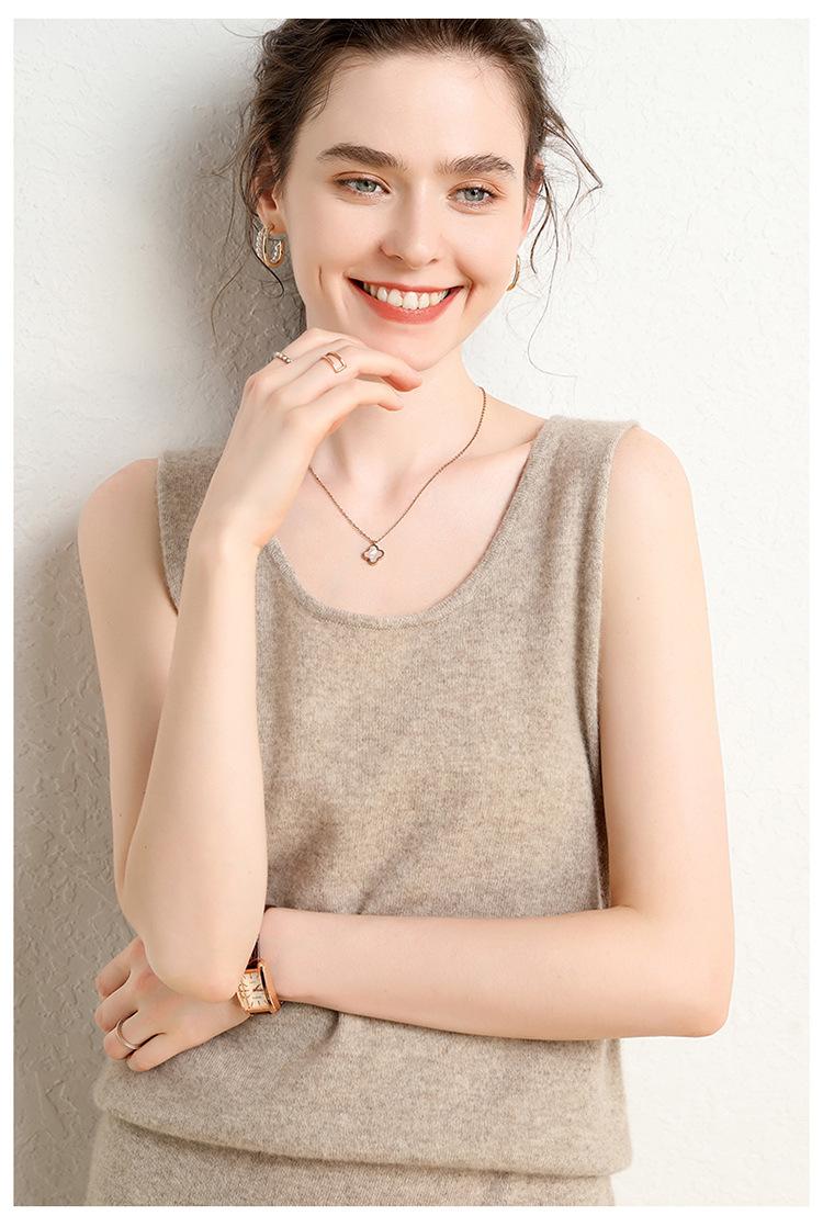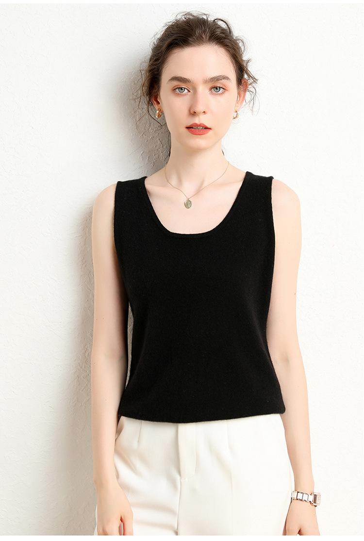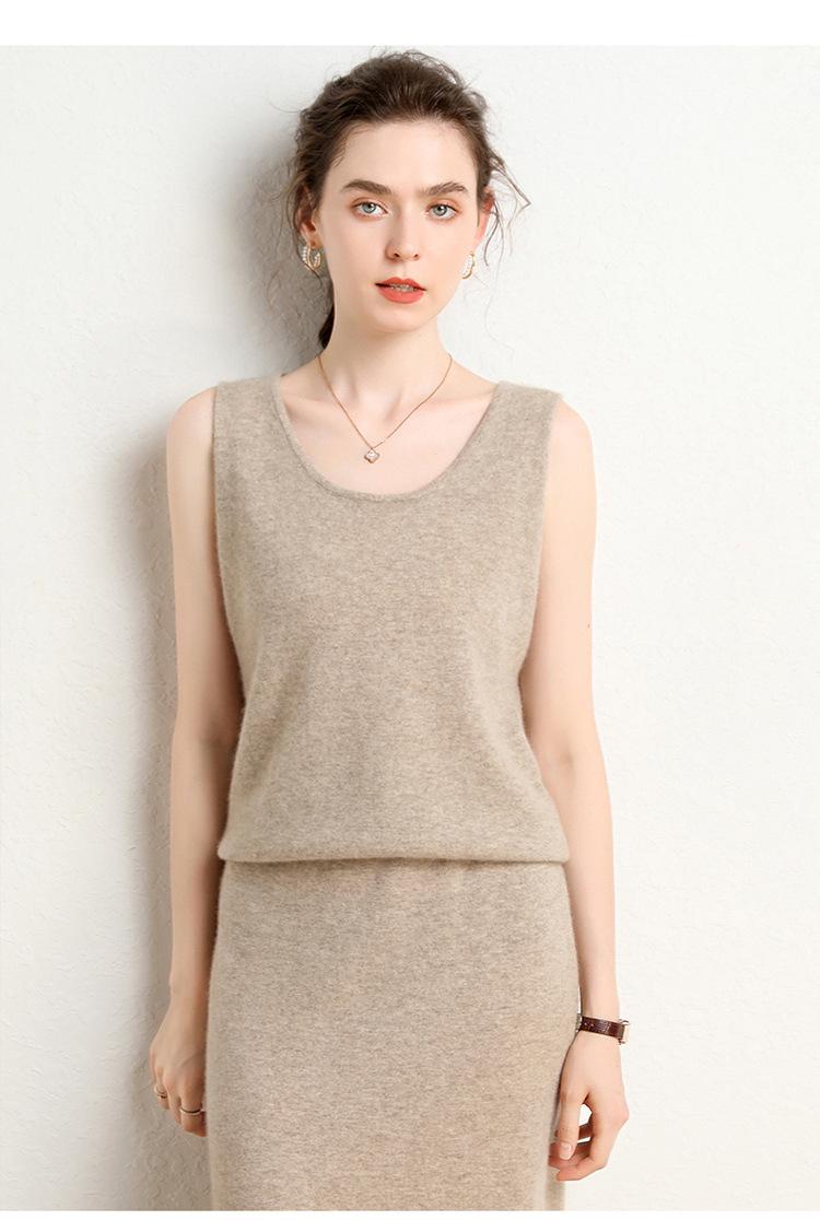 Otoño e invierno 2023 Nuevo suéter de cachemira para mujer color sólido cuello en U chaleco de punto de cachemira con tirantes base delgada y cálida