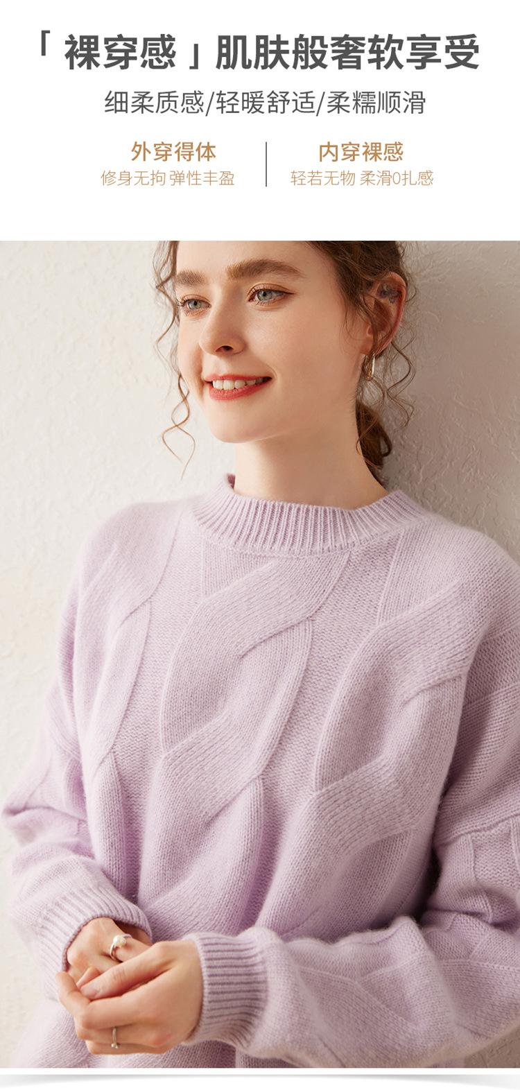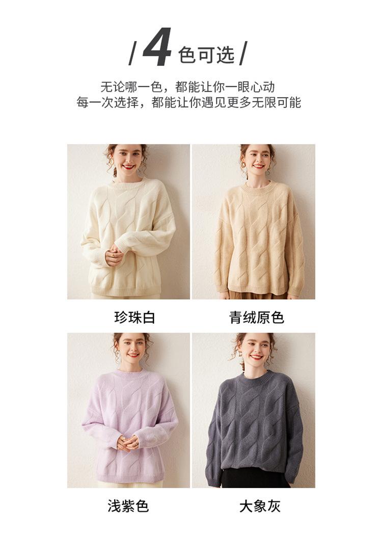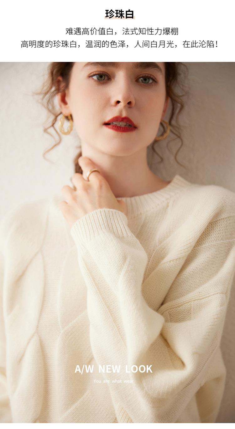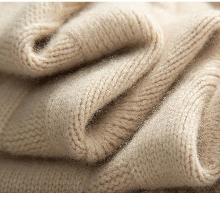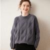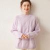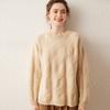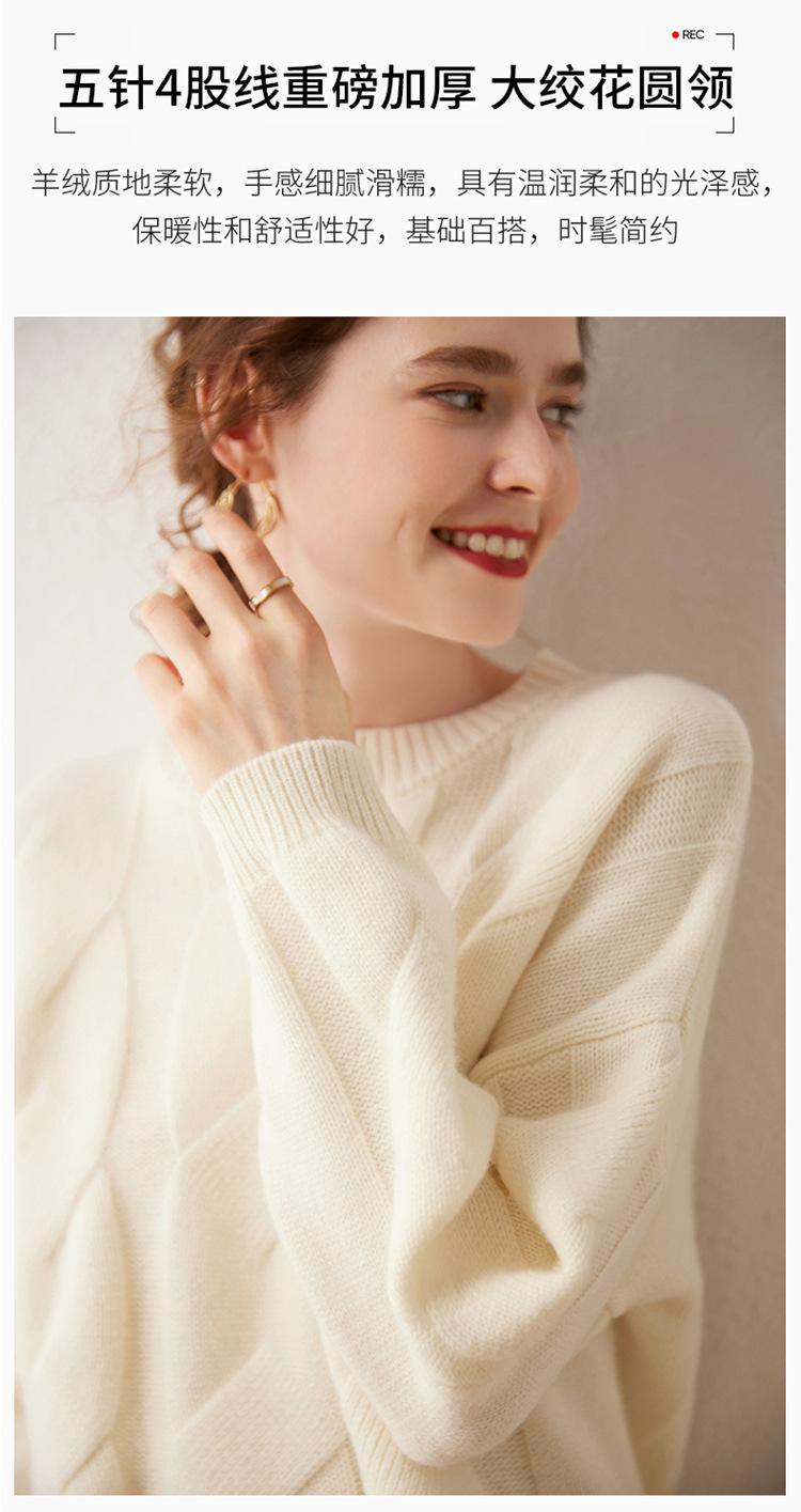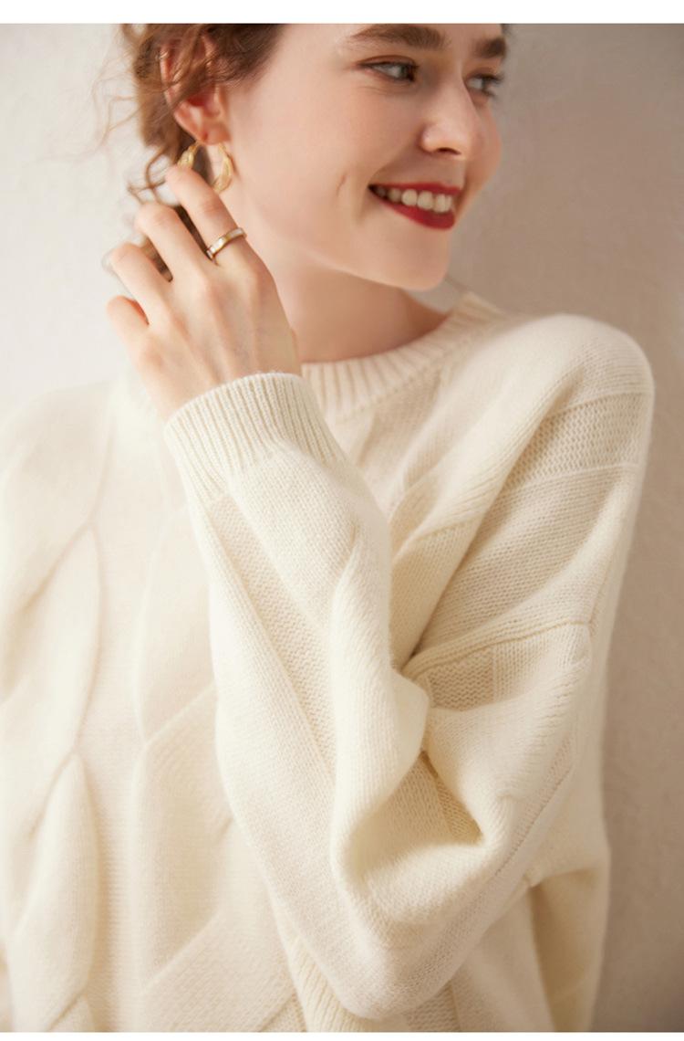 Suéter de cachemira de color puro para otoño e invierno de 2023 para mujer, cuello redondo, largo medio, tejido grueso trenzado grande, holgado casual para exterior