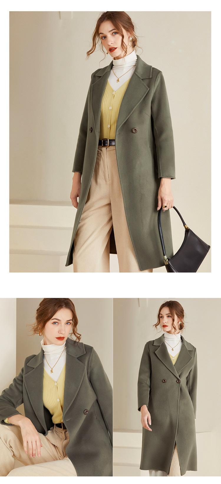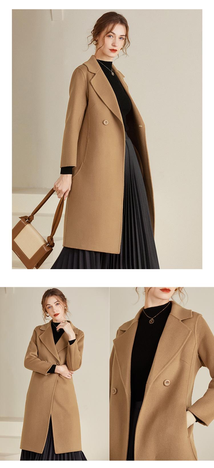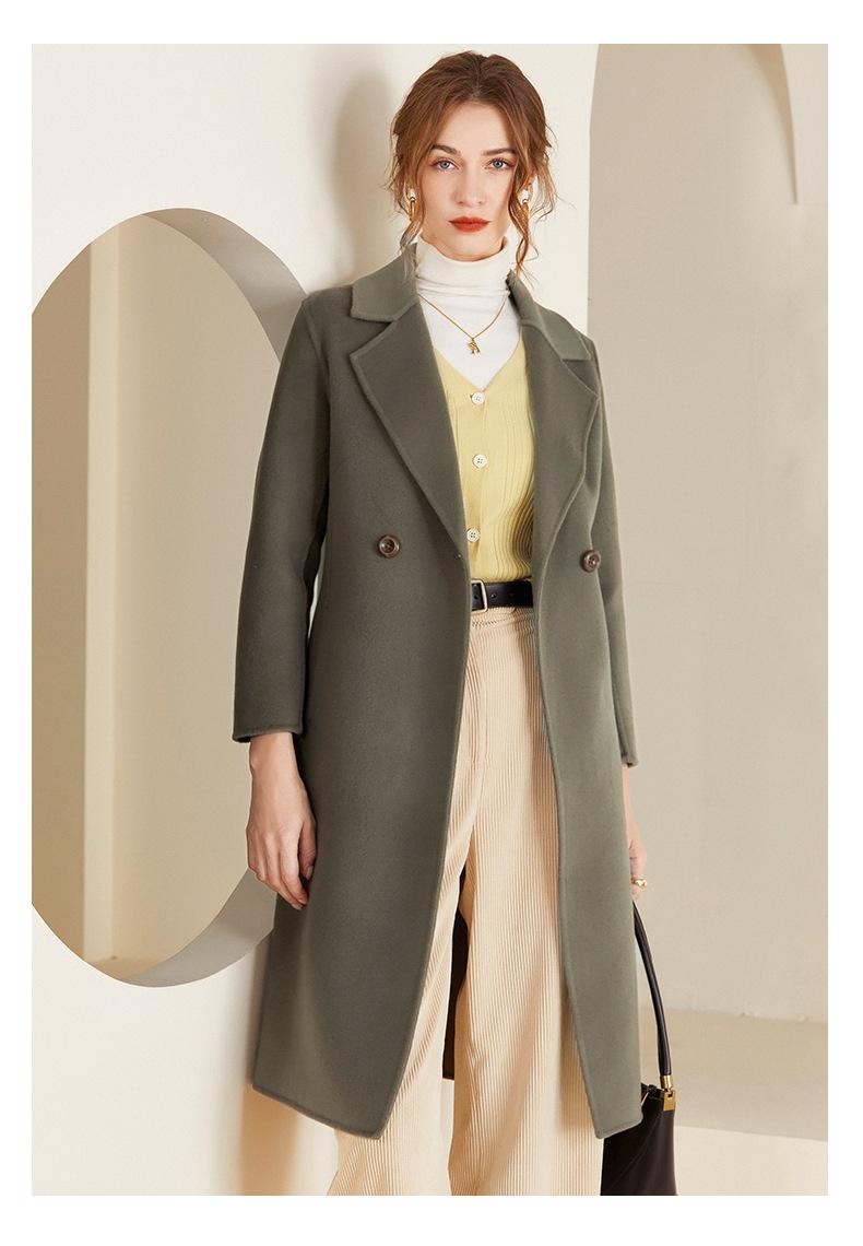 Abrigo de lana de doble vista estilo coreano nuevo de Otoño e Invierno para Mujer, de largo medio y corte slim hasta la rodilla