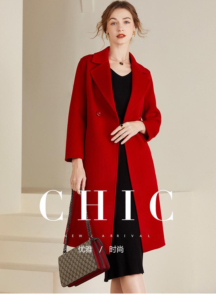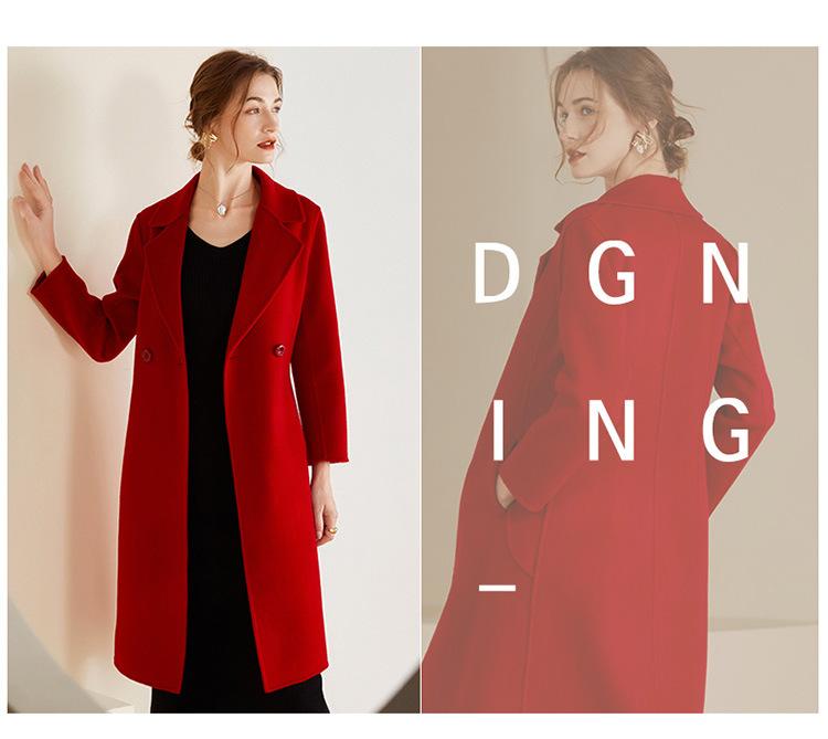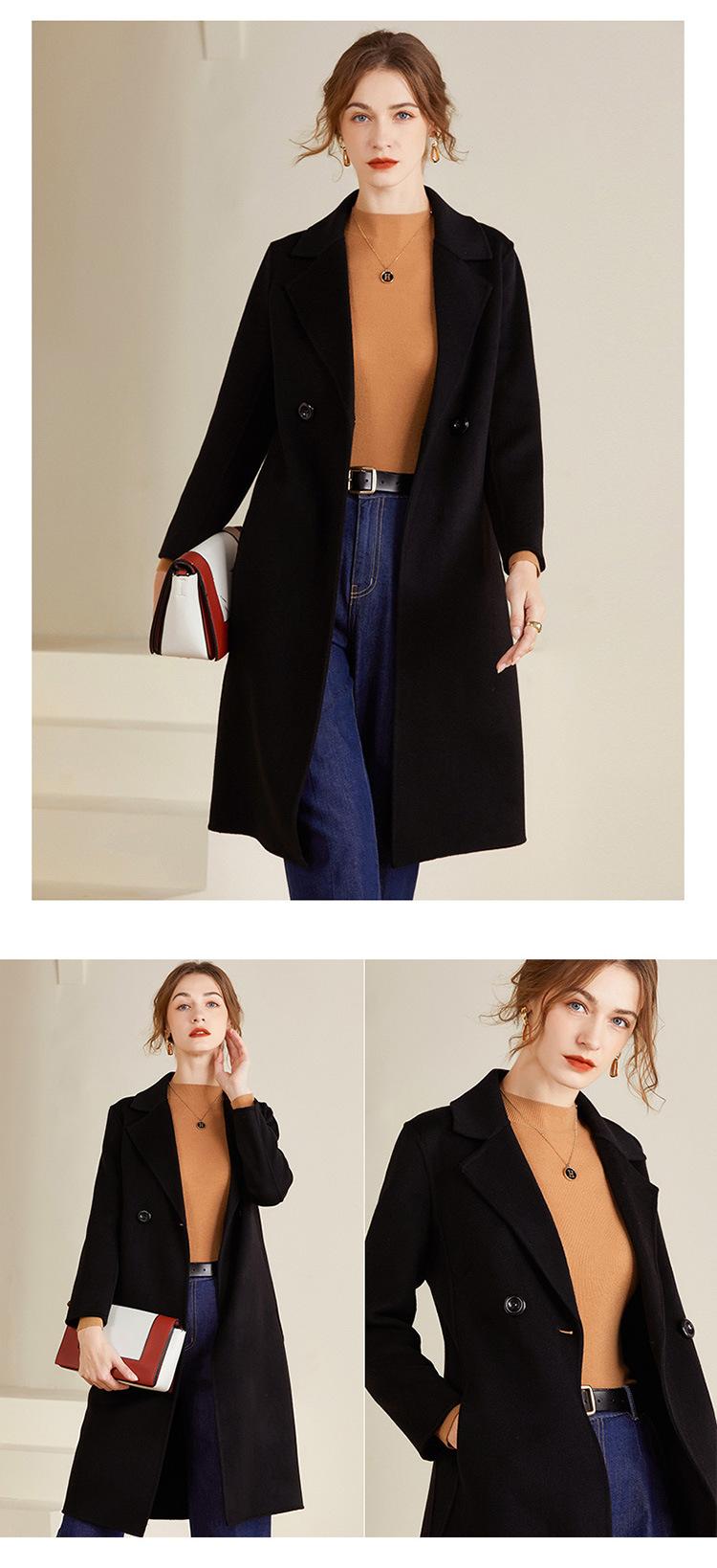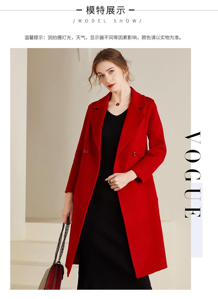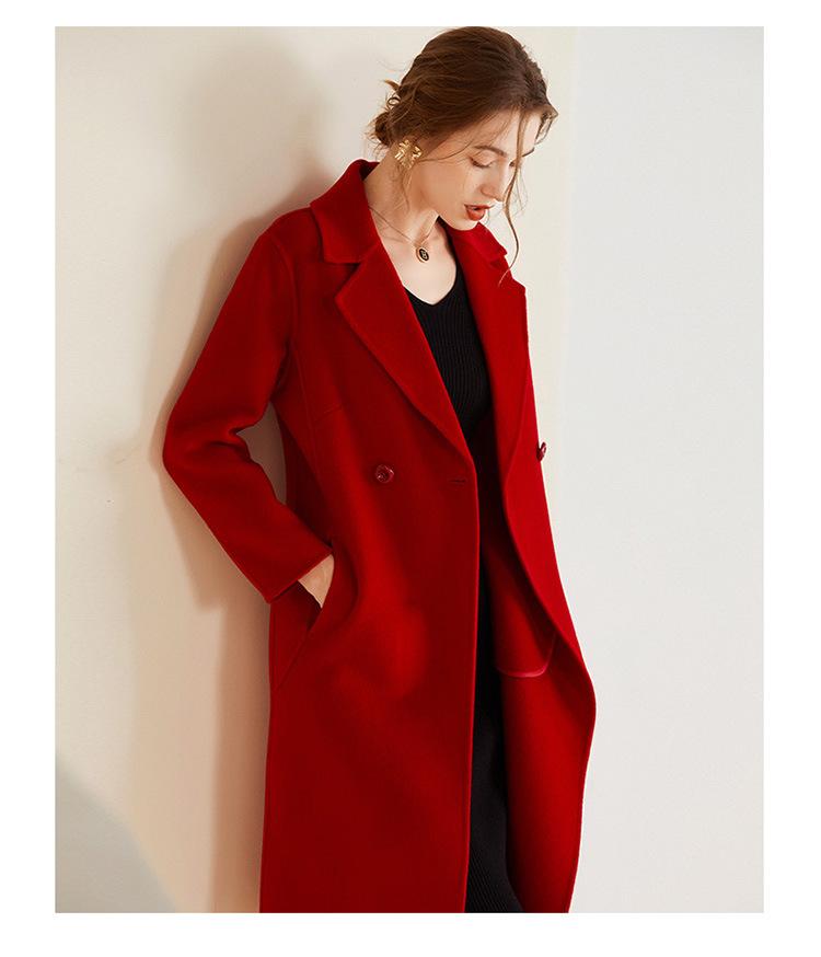 Abrigo de lana de doble vista estilo coreano nuevo de Otoño e Invierno para Mujer, de largo medio y corte slim hasta la rodilla