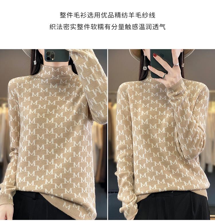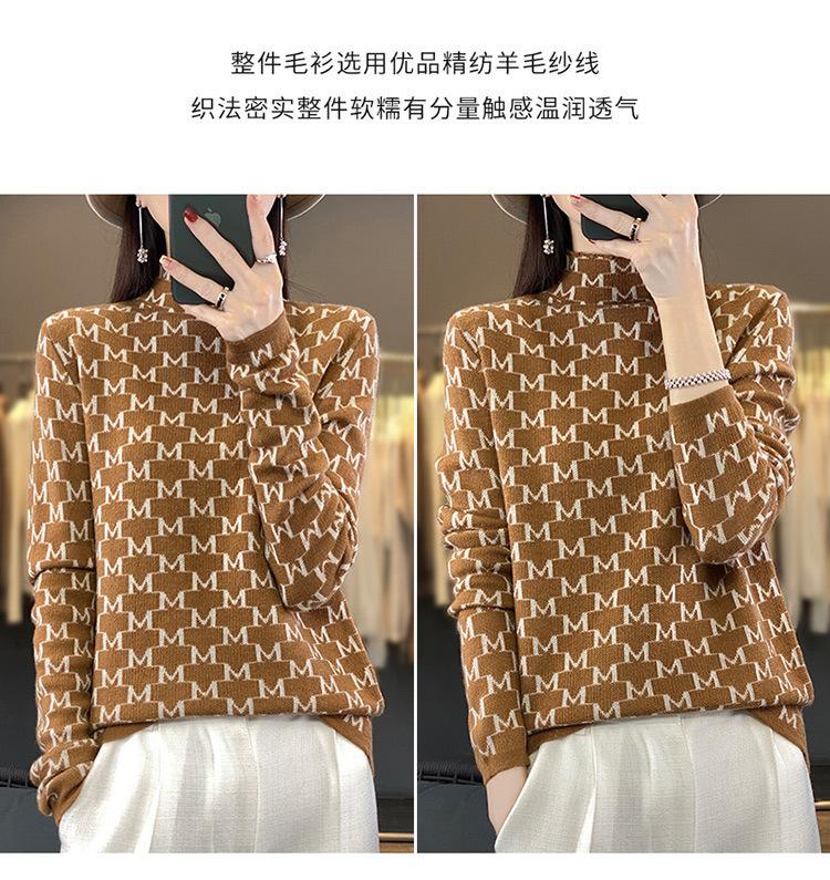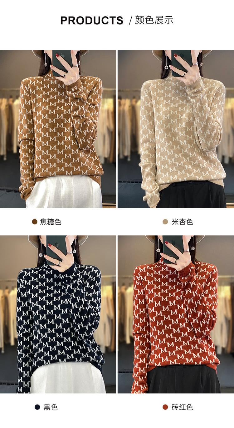 Camiseta básica de cuello alto medio para mujer, elegante ropa interior de otoño e invierno, nuevo suéter de lana de manga larga, suéter ajustado que estiliza la figura