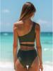 Traje de baño bikini sexy separado de un hombro, color sólido, con faja estampada, cintura alta para mujer