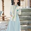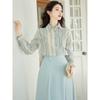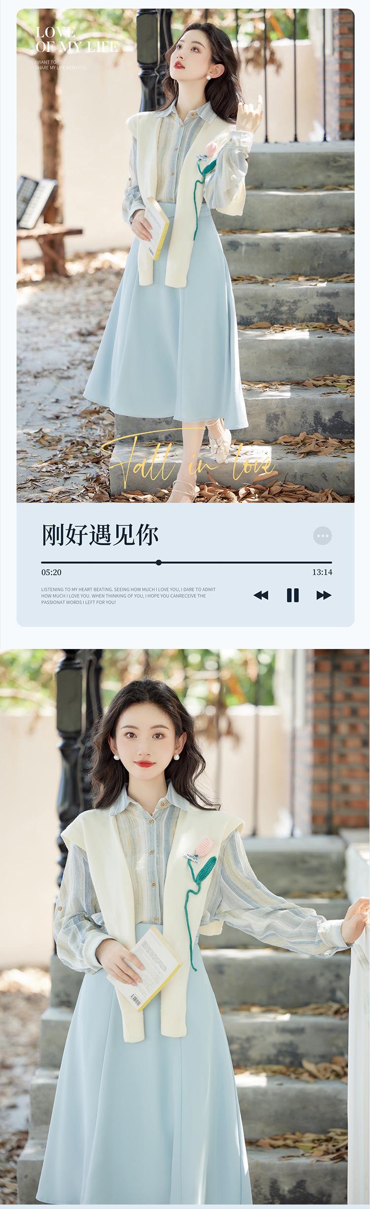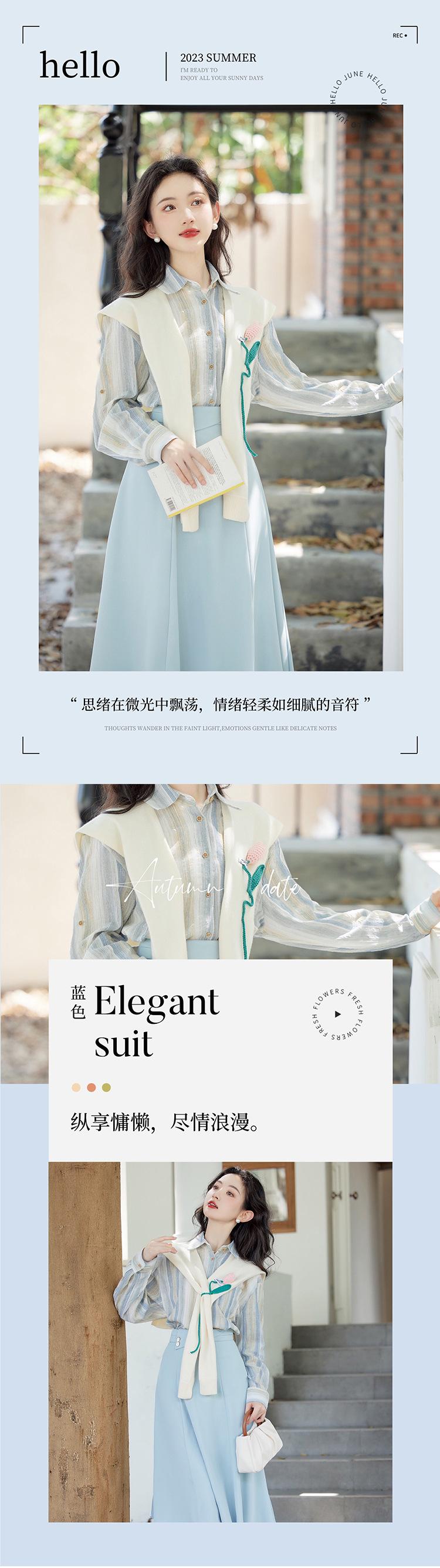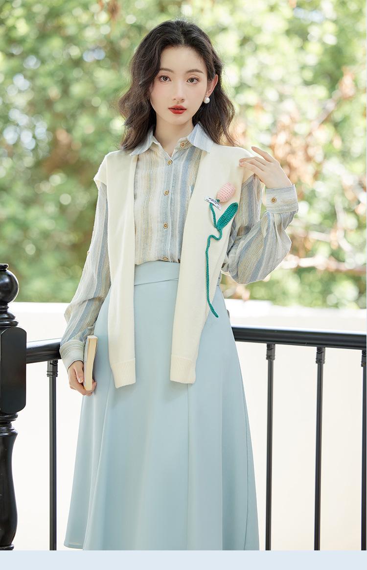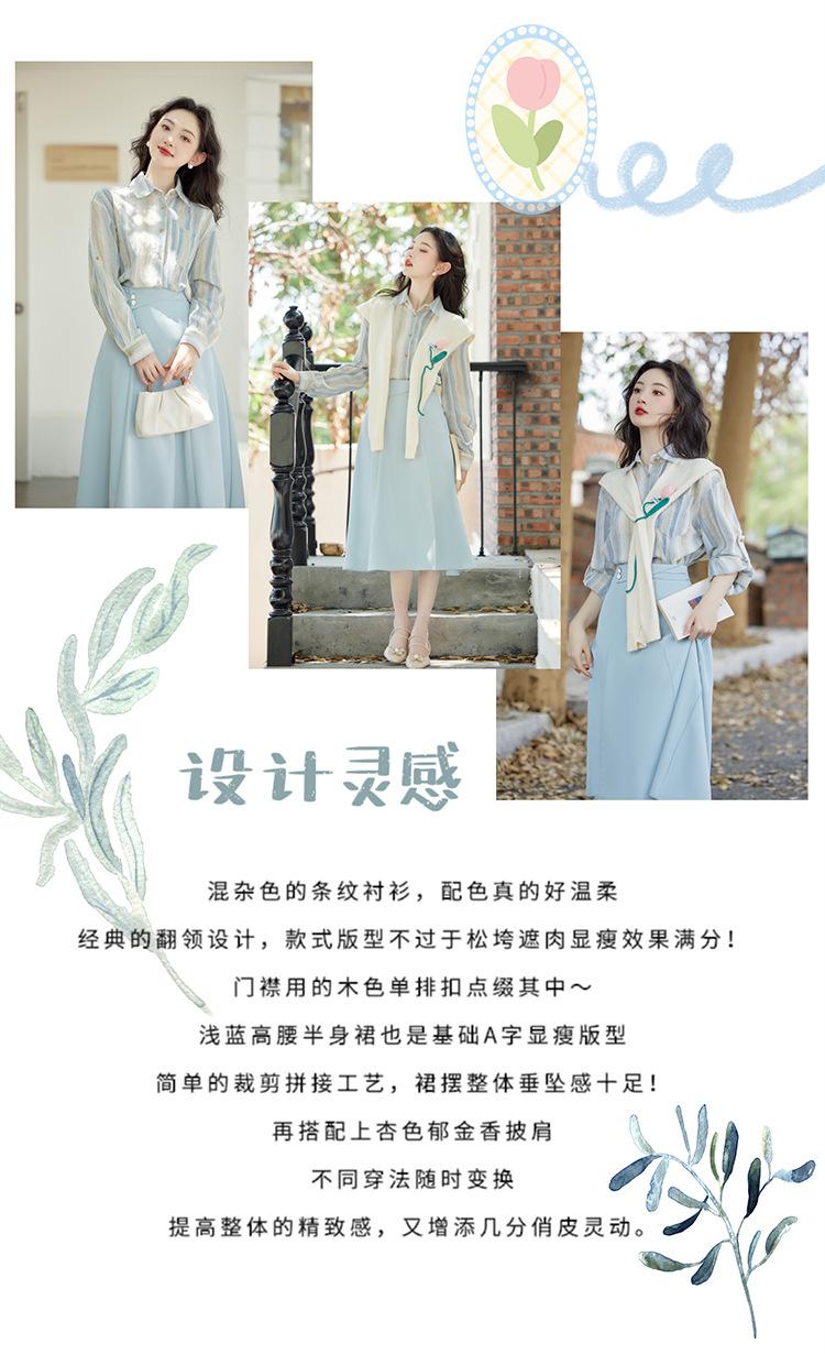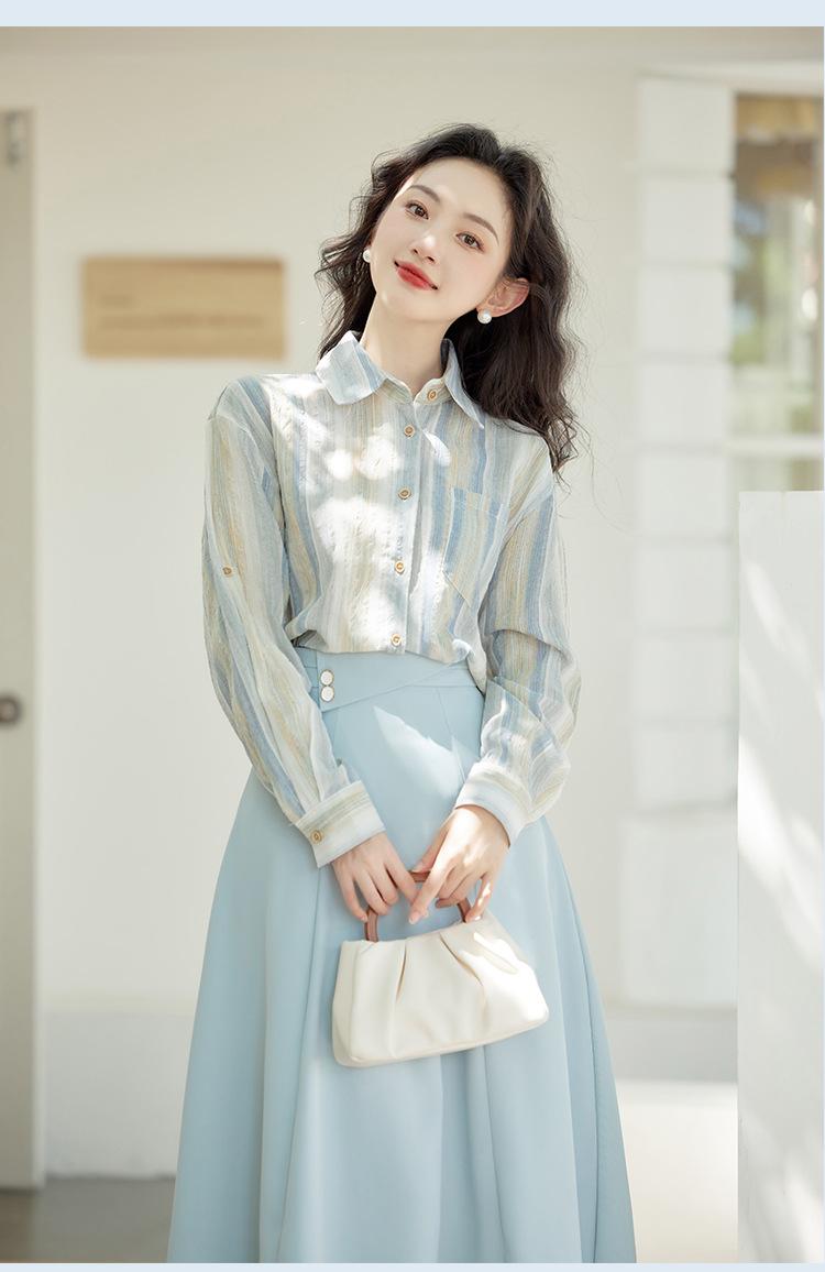 Foto real en stock Otoño nuevo commuter casual ladylike camisa falda midi conjunto de dos piezas