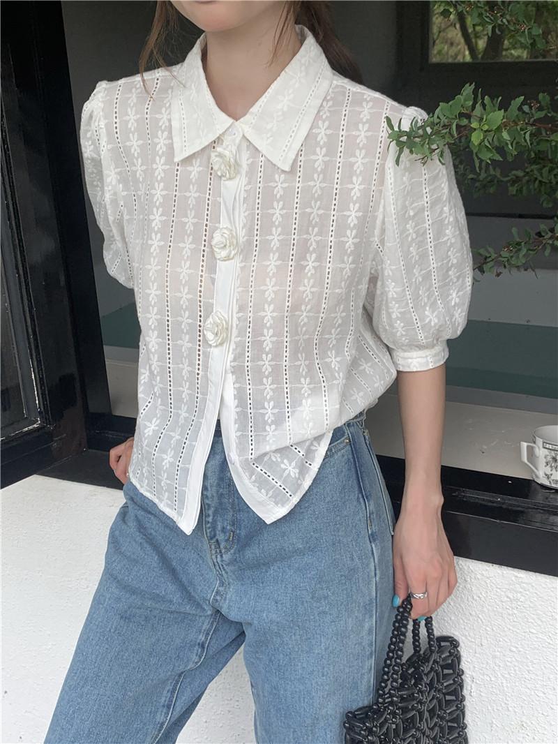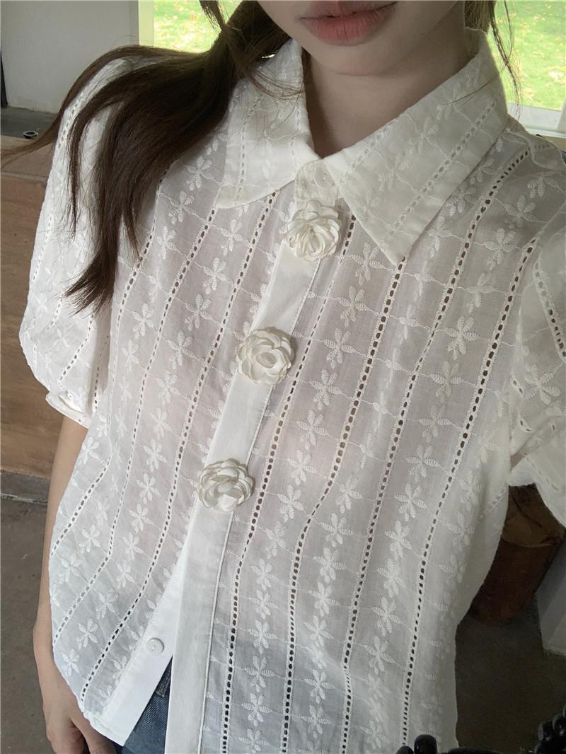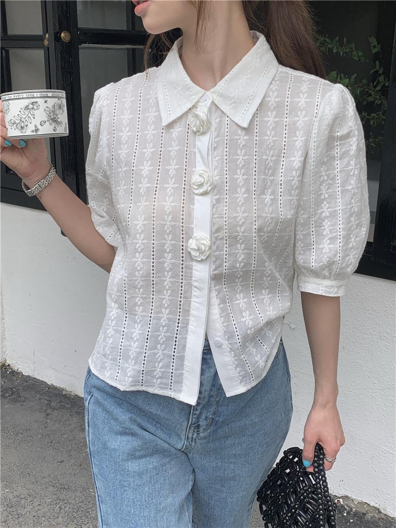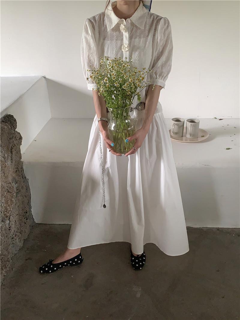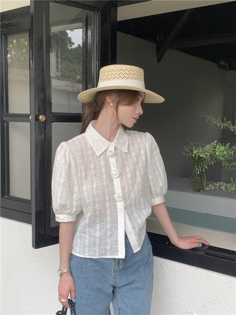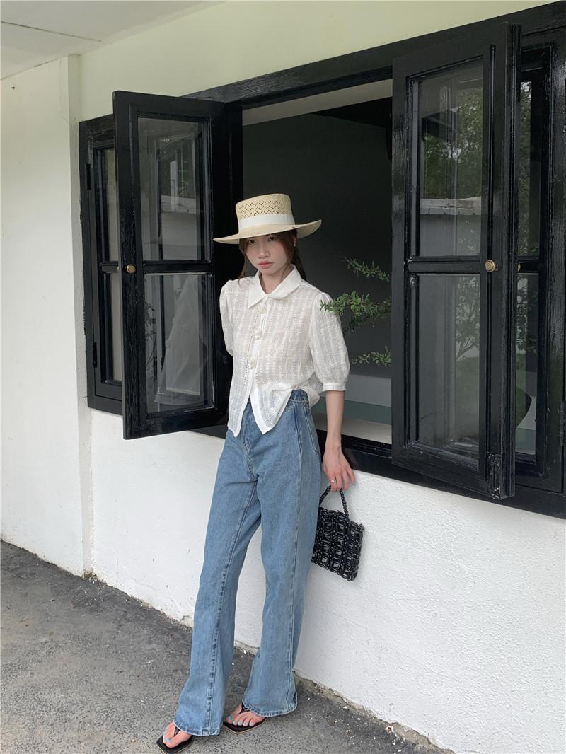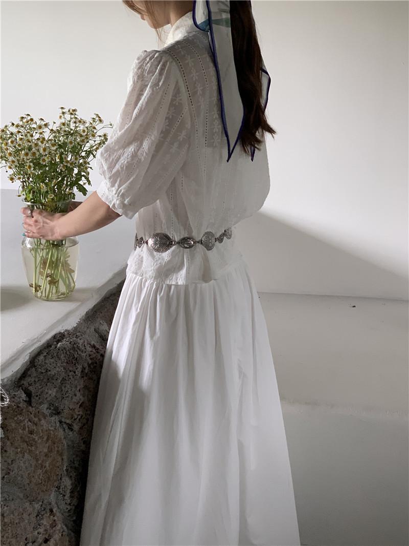 La decoración de botón de flor blanca está quemada con láser. El borde puede volverse amarillo. Por favor, tenga cuidado si le molesta.