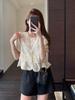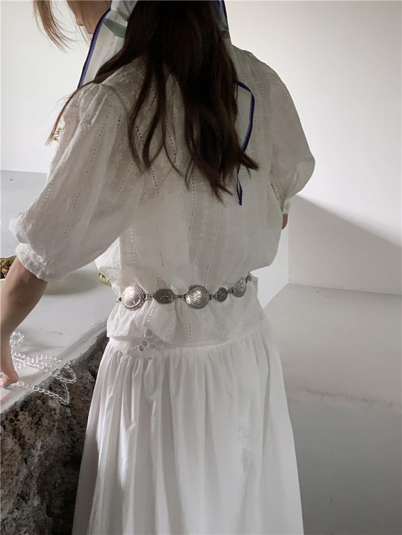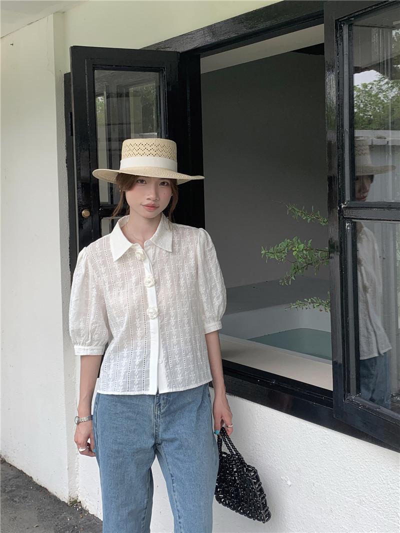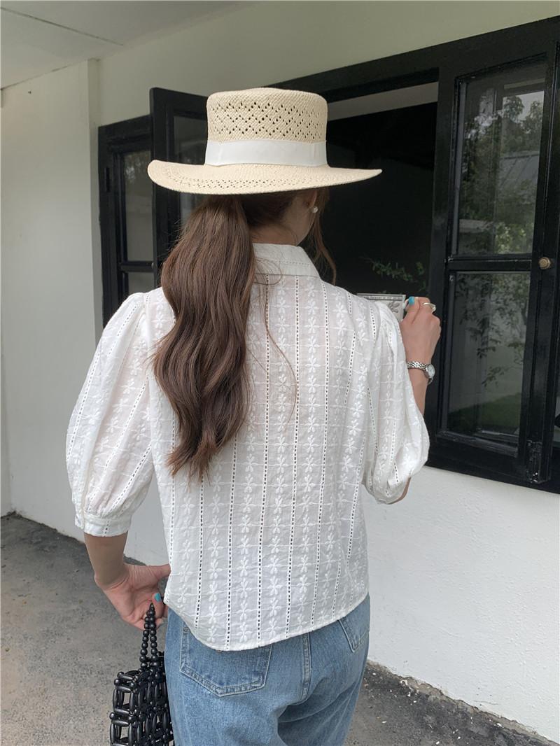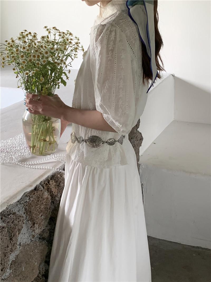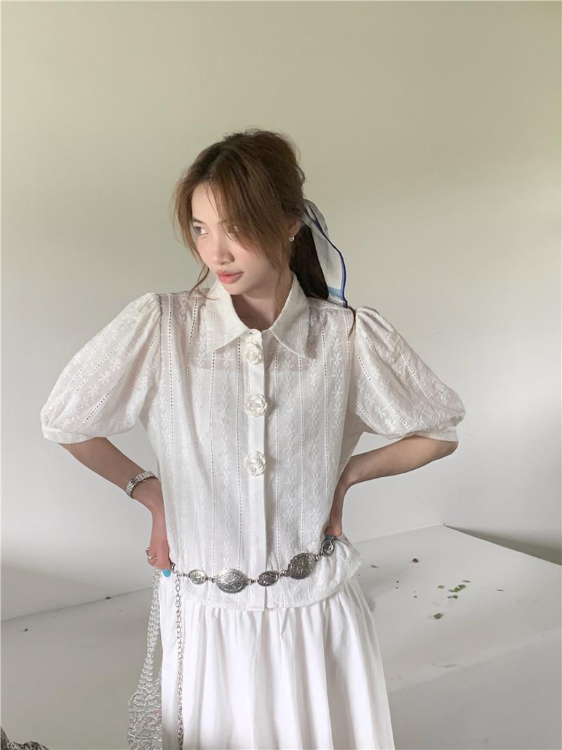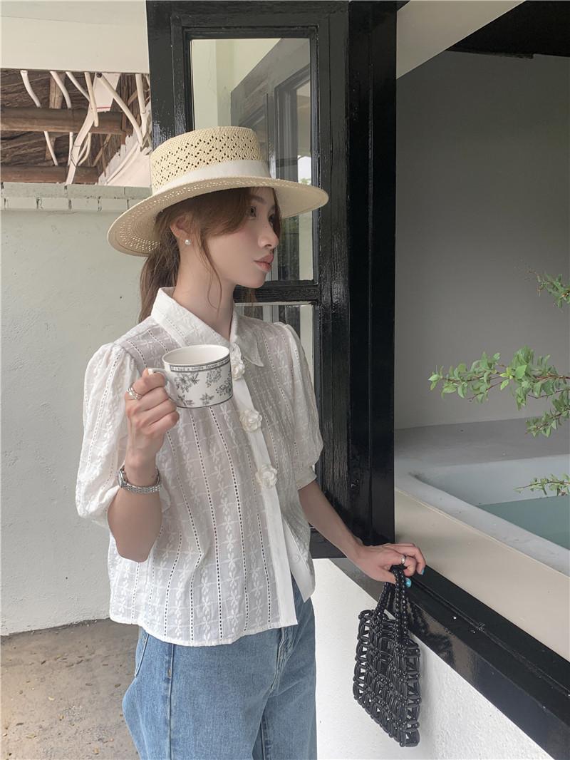 La decoración de botón de flor blanca está quemada con láser. El borde puede volverse amarillo. Por favor, tenga cuidado si le molesta.