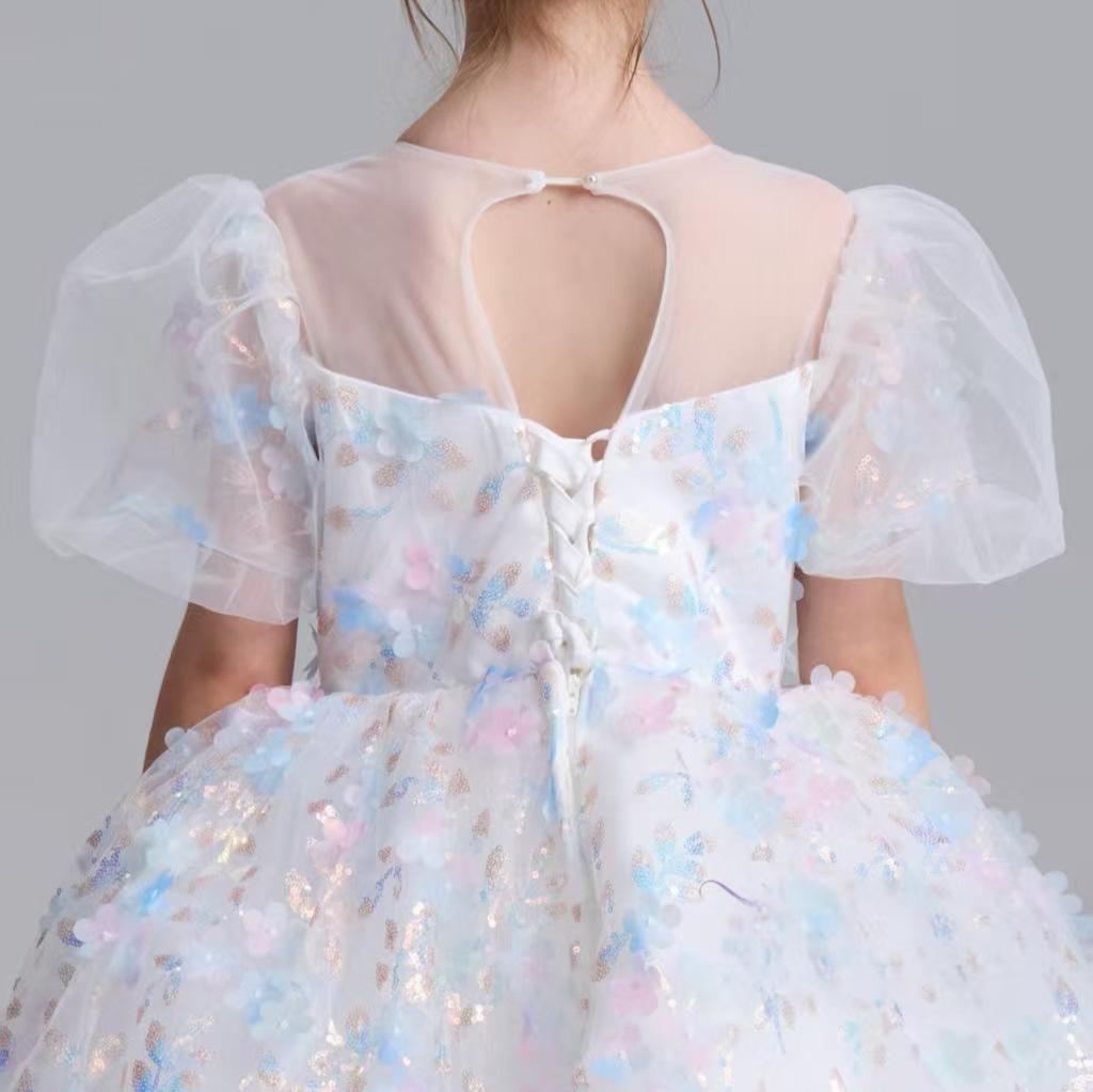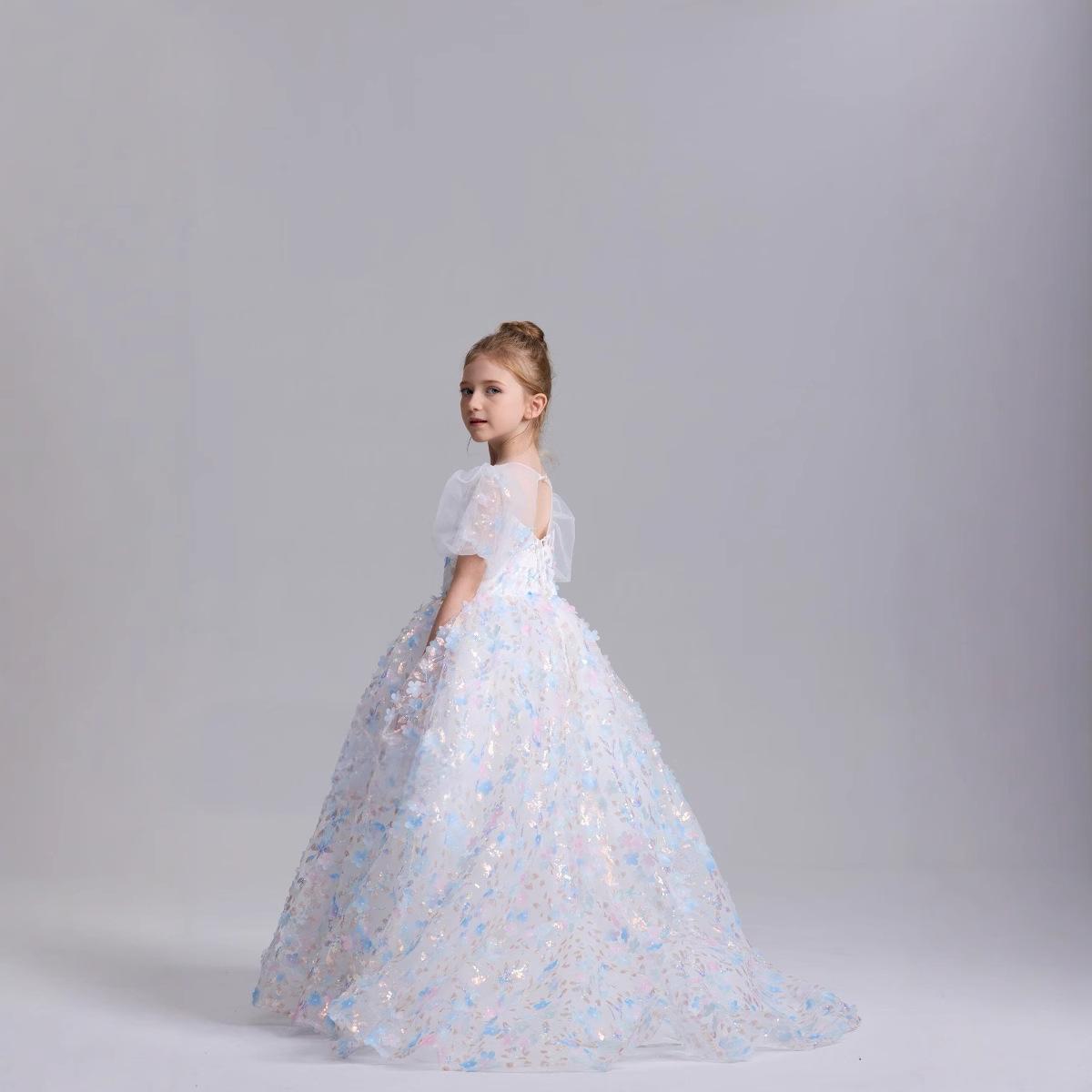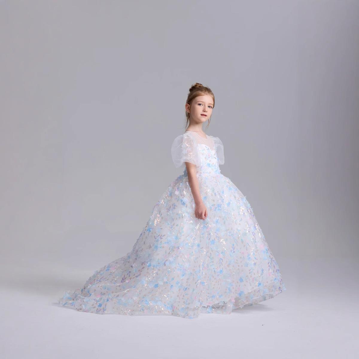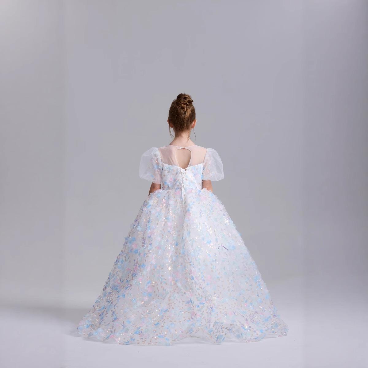 Vestido Infantil 2025 Otoño Nuevo Estilo de Cuento de Hadas Pequeña Cola Fiesta de Cumpleaños para Niñas Anfitrión Pasarela Vestido de Actuación para Piano