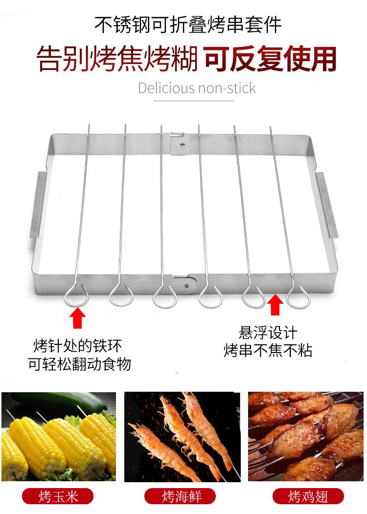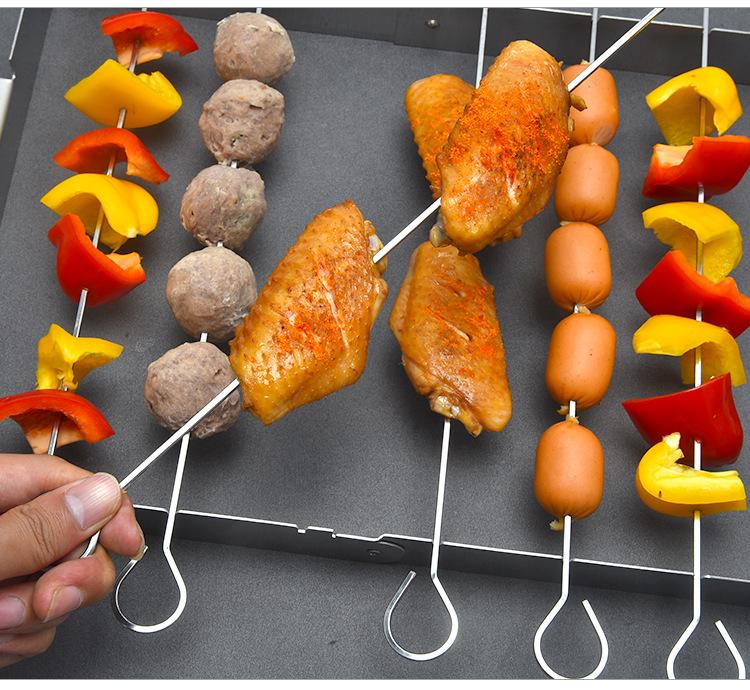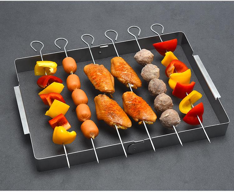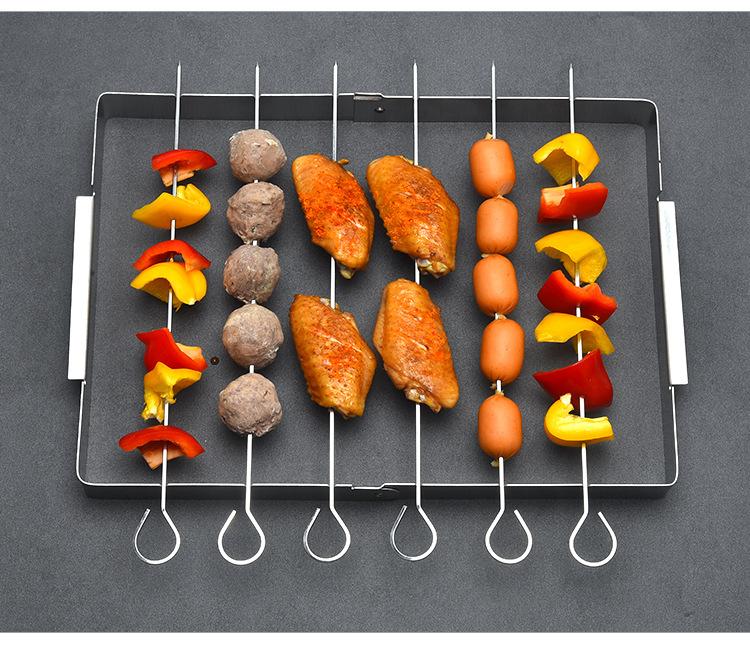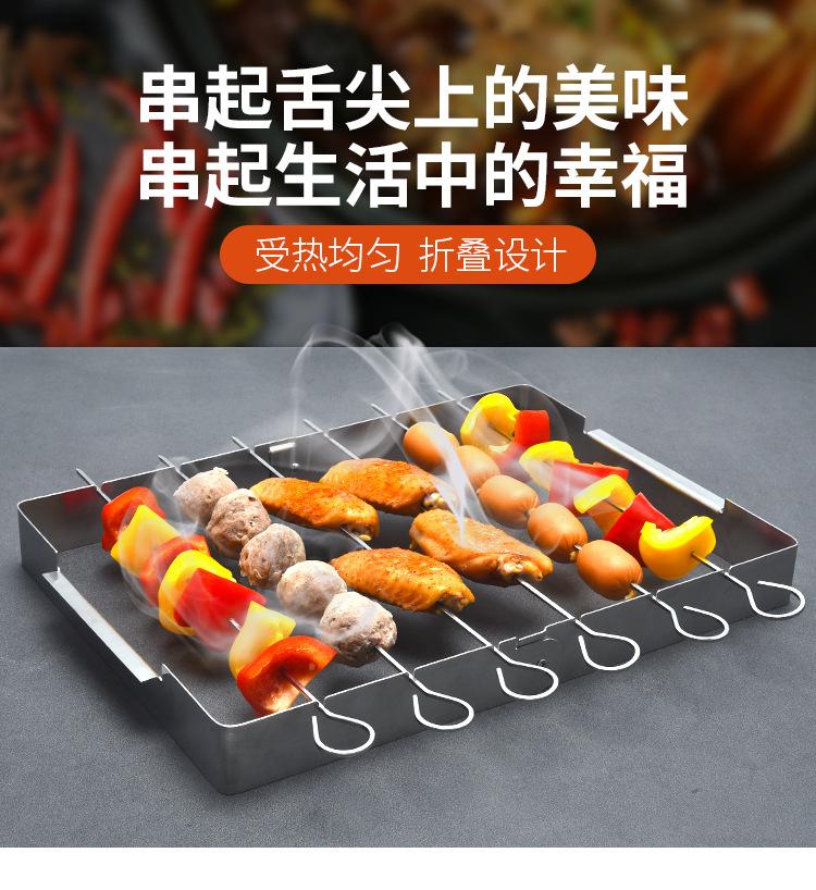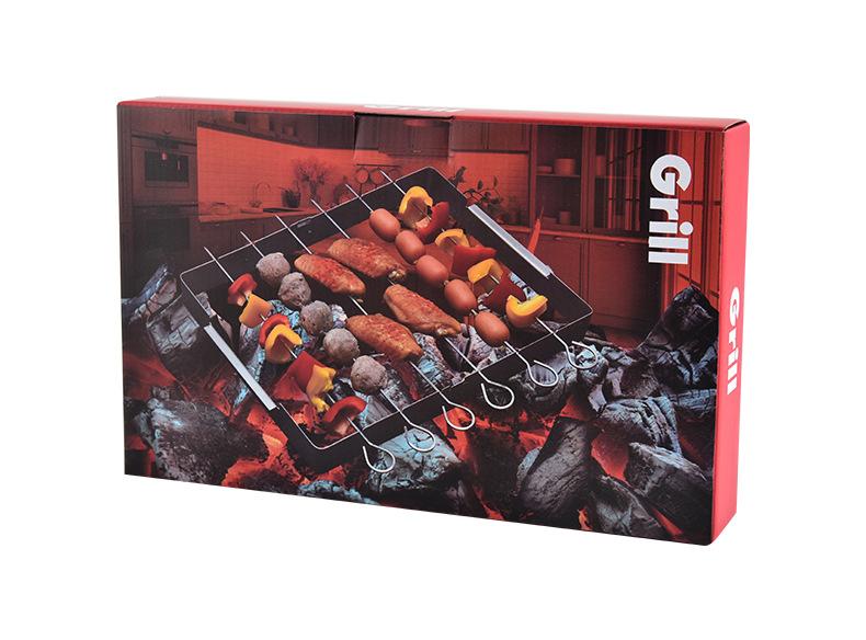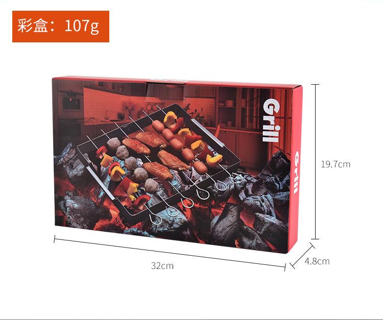 Kit de brochetas plegables de acero inoxidable con caja de color, parrilla de barbacoa sencilla, parrilla de barbacoa para exteriores con brochetas